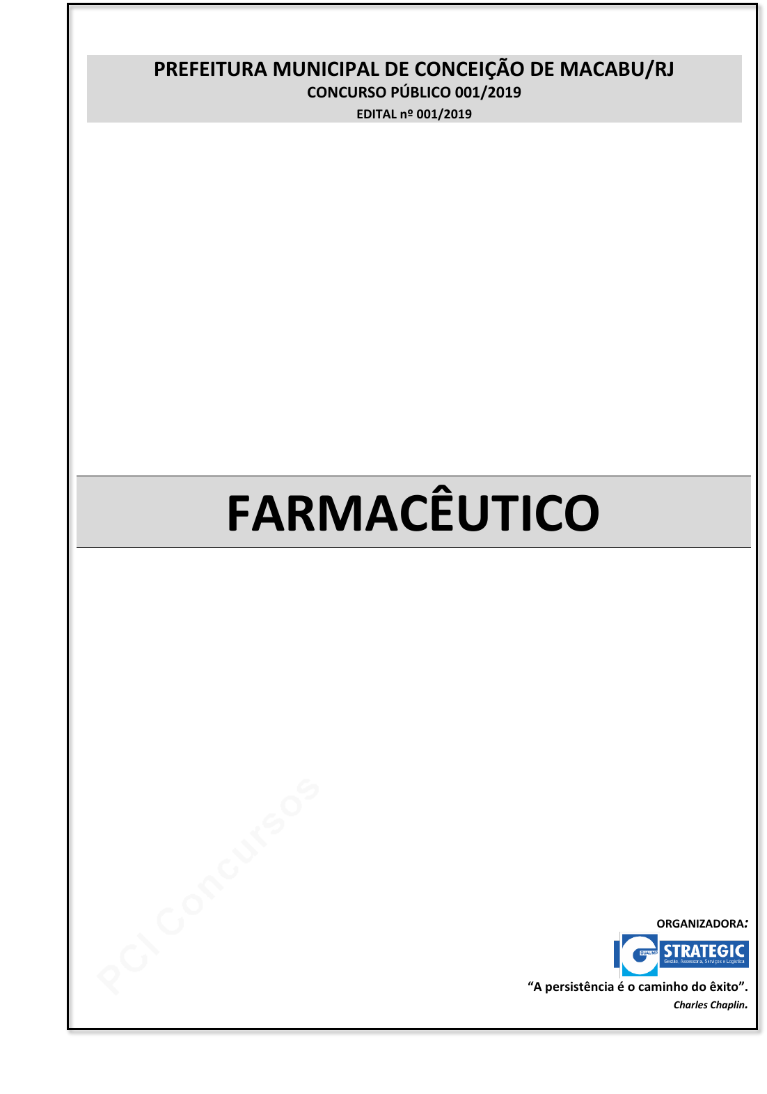 pcimarkpci MDAwMDowMDAwOjAwMDA6MDAwMDowMDAwOmZmZmY6MzZlOTpjMjU5:VGh1LCAxNiBTZXAgMjAyMSAwMDo1ODozNiAtMDMwMA== PREFEITURA MUNICIPAL DE CONCEIÇÃO DE MACABU/RJ CONCURSO PÚBLICO 001/2019 EDITAL nº 001/2019 FARMACÊUTICO ORGANIZADORA: “A persistência é o caminho do êxito”. Charles Chaplin. pcimarkpci MDAwMDowMDAwOjAwMDA6MDAwMDowMDAwOmZmZmY6MzZlOTpjMjU5:VGh1LCAxNiBTZXAgMjAyMSAwMDo1ODozNiAtMDMwMA== Concurso Público 001/2019 Pág. 2 de 13 pcimarkpci MDAwMDowMDAwOjAwMDA6MDAwMDowMDAwOmZmZmY6MzZlOTpjMjU5:VGh1LCAxNiBTZXAgMjAyMSAwMDo1ODozNiAtMDMwMA== Concurso Público 001/2019 Pág. 3 de 13 CADERNO DE PROVAS Caro(a) Candidato(a): Antes de iniciar a prova leia atentamente as instruções a seguir: 1. Este caderno contém 40 (quarenta) questões objetivas com 04 (quatro) opções (A, B, C, D). A prova terá duração máxima de 03(três) horas. A prova terá seu horário de início em sala, a contar após a distribuição dos cadernos de prova e autorização do aplicador(a). 2. Confira em seu caderno de provas a sequência de questões. Você tem até 10 (dez) minutos do início das provas para solicitar a troca do caderno de provas que apresentar algum problema de impressão ou qualquer outro que inviabilize a realização da mesma, pois não serão aceitas reclamações posteriores nesse sentido. 3. A interpretação das questões, bem como das instruções, faz parte da prova. Portanto, ao aplicador(a) de sala e fiscais não há autorização para fornecer esclarecimentos sobre o conteúdo das provas, sendo esta atribuição de única e exclusiva responsabilidade do(a) candidato(a). 4. Você receberá do aplicador o cartão de respostas 30 (trinta) minutos após o início da prova, o cartão de respostas deverá obrigatoriamente ser assinado pelo(a) candidato(a) no local em que há a indicação: “ASSINATURA”, utilizando sempre caneta esferográfica de tinta preta ou azul. 5. Caso realmente precise, utilize como rascunho os espaços em branco nas folhas do caderno de prova. Sugerimos que você assinale, inicialmente, no próprio caderno de provas, todas as respostas que julgar correta. Depois, passe-as para o cartão de respostas. 6. Questões com mais de uma alternativa assinalada, rasurada ou em branco serão ANULADAS. Portanto, ao preencher o cartão de respostas faça-o cuidadosamente. Evite erros, pois em hipótese alguma haverá substituição do cartão de respostas por erro do(a) candidato(a). 7. Ao terminar a prova ou findo o horário limite para sua realização, o candidato deverá OBRIGATORIAMENTE entregar seu cartão de respostas “ASSINADO”, ao aplicador(a) de sala. O(a) candidato(a) que não devolver seu cartão de respostas será automaticamente eliminado(a) e não terá classificação alguma no concurso público. 8. Atenção! Preencha o cartão-resposta na mesma sequência numérica das questões do caderno de provas. 9. Somente será permitido levar o caderno de questões (prova), depois de decorrido o período de 120 (cento e vinte) minutos do início das provas. 10. Não serão permitidas consultas a quaisquer materiais, uso de telefone celular ou outros aparelhos eletrônicos, assim como os demais procedimentos constantes no subitem 10.9 e no subitem 10.11 do Edital 001/2019. 11. Após o término da prova, o(a) candidato(a) deverá deixar imediatamente o recinto da mesma, sendo terminantemente proibido fazer contato com os(as) candidatos(as) que ainda não terminaram a prova sob pena de ser excluído do Concurso Público. 12. O desrespeito às normas que regem o presente concurso, bem como, a desobediência às exigências registradas no edital, além de sanções legais cabíveis implica na desclassificação do candidato. 13. Aguarde a ordem do aplicador para iniciar a prova. 14. Os dois últimos candidatos ao terminarem as provas deverão retirar-se da sala simultaneamente, após testemunharem o fechamento (lacre) do envelope de provas, assinando a Ata Relatório. 15. O candidato, após a divulgação dos gabaritos oficiais preliminares da Prova Objetiva, que será feita a partir das 20 horas do dia 01 de março de 2020, no site www.gualimp.com.br, poderá peticionar RECURSO à banca examinadora, quando julgar que ocorreu erro na formulação das questões e divulgação do gabarito preliminar, nos dias 02 e 03 de março de 2020. NÃO ESQUEÇA! Ao sair, entregue o cartão de respostas devidamente assinado. BOA PROVA!!! pcimarkpci MDAwMDowMDAwOjAwMDA6MDAwMDowMDAwOmZmZmY6MzZlOTpjMjU5:VGh1LCAxNiBTZXAgMjAyMSAwMDo1ODozNiAtMDMwMA== Concurso Público 001/2019 Pág. 4 de 13 QUESTÕES DE LÍNGUA PORTUGUESA Leia o texto a seguir para responder às questões de 1 a 7. TERREMOTO Rubem Braga – Chile - 1955 Houve pânico em algumas cidades do Norte. A terra tremeu com força e em vários pontos o mar arremeteu contra ela, avançando duzentos, trezentos metros, espatifando barcos contra o cais e bramindo com estrondo. O povo saiu para as praças e passou a noite ao relento; algumas construções desabaram, mas o único homem que morreu foi de susto. Lamentamos esse morto e também os pobres pescadores que perderam seus barcos, mas qualquer enchente carioca dá mais prejuízo e vítimas. Mas louvemos o maremoto e o terremoto pelo que eles têm de fundamentalmente pânico, pela sua cega, dramática, purificadora intervenção na vida cotidiana, pela sua lição de humanidade e de fatalidade. Talvez seja bom que os homens não se sintam muito seguros sobre a terra, e que o proprietário de imóvel possa desconfiar de que ela não é tão imóvel assim; que há diabos loucos no fundo do chão e que eles podem promover terríveis anarquias. A natureza tem outros meios de advertência, como o raio e a tromba d’água, mas são demônios do céu que nos atacam. E o homem é fundamentalmente um bicho da terra, é na terra que ele se abriga e confia; apenas se move no céu e na água, na terra é que está seu porto e seu pouso. Ele pisa a terra com uma soberba inconsciente, 