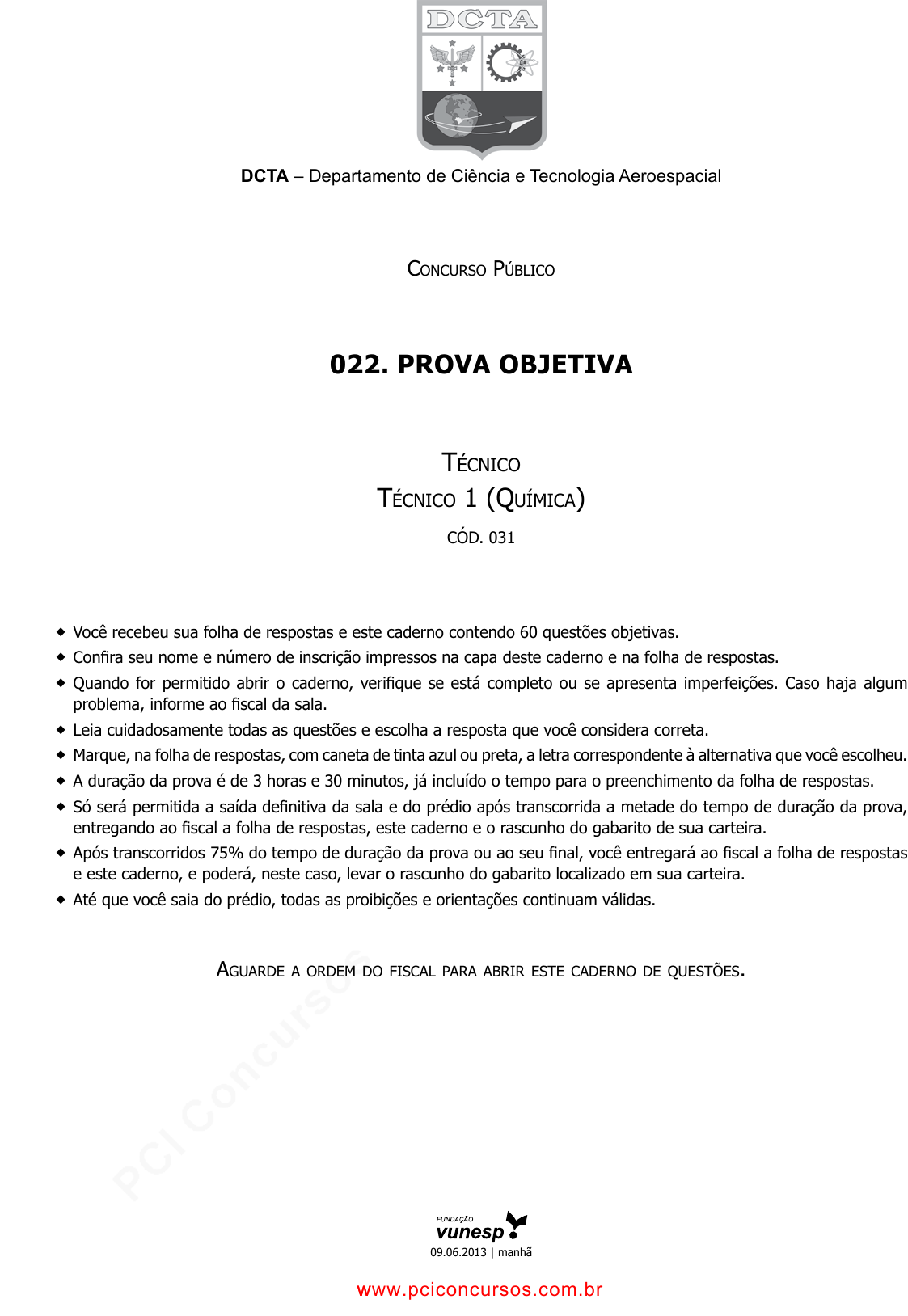 pcimarkpci MDAwMDowMDAwOjAwMDA6MDAwMDowMDAwOmZmZmY6MzZlOTpjMjU5:U2F0LCAxMSBTZXAgMjAyMSAwMDo1MjoxMyAtMDMwMA== DCTA – Departamento de Ciência e Tecnologia Aeroespacial ConCurso PúbliCo 022. Prova objetiva TéCniCo TéCniCo 1 (QuímiCa) CÓD. 031 � Você recebeu sua folha de respostas e este caderno contendo 60 questões objetivas. � Confira seu nome e número de inscrição impressos na capa deste caderno e na folha de respostas. � Quando for permitido abrir o caderno, verifique se está completo ou se apresenta imperfeições. Caso haja algum problema, informe ao fiscal da sala. � Leia cuidadosamente todas as questões e escolha a resposta que você considera correta. � Marque, na folha de respostas, com caneta de tinta azul ou preta, a letra correspondente à alternativa que você escolheu. � A duração da prova é de 3 horas e 30 minutos, já incluído o tempo para o preenchimento da folha de respostas. � Só será permitida a saída definitiva da sala e do prédio após transcorrida a metade do tempo de duração da prova, entregando ao fiscal a folha de respostas, este caderno e o rascunho do gabarito de sua carteira. � Após transcorridos 75% do tempo de duração da prova ou ao seu final, você entregará ao fiscal a folha de respostas e este caderno, e poderá, neste caso, levar o rascunho do gabarito localizado em sua carteira. � Até que você saia do prédio, todas as proibições e orientações continuam válidas. aguarDe a orDem Do fisCal Para abrir esTe CaDerno De QuesTões. 09.06.2013 | manhã www.pciconcursos.com.br www.pciconcursos.com.br pcimarkpci MDAwMDowMDAwOjAwMDA6MDAwMDowMDAwOmZmZmY6MzZlOTpjMjU5:U2F0LCAxMSBTZXAgMjAyMSAwMDo1MjoxMyAtMDMwMA== www.pciconcursos.com.br www.pciconcursos.com.br pcimarkpci MDAwMDowMDAwOjAwMDA6MDAwMDowMDAwOmZmZmY6MzZlOTpjMjU5:U2F0LCAxMSBTZXAgMjAyMSAwMDo1MjoxMyAtMDMwMA== 3 CTAE1201/022-Téc-Téc1-Química LÍNGUa PortUGUeSa Leia o texto para responder às questões de números 01 a 06. Celular vira ‘fura-trânsito’ em São Paulo Em uma cidade com tantos problemas no trânsito como São Paulo, a indústria de apps – os aplicativos para celulares e tablets – encontrou terreno fértil para se desenvolver. Aplicativos lançados recentemente ajudam o motorista a es- capar de alagamentos, a desviar de congestionamentos e até a saber onde há vagas para estacionar. Um dos mais famosos é o Waze. Criado em Israel, é uma mistura de rede social com GPS, em que motoristas comparti- lham as condições do trânsito e pontos críticos de congestiona- mento. Uri Levine, fundador e presidente do Waze, diz que a ideia surgiu em suas férias de 2007, ao viajar com amigos. Ele foi o último a sair, ligou para saber como estava o trânsito e evitou engarrafamentos. Situação semelhante ocorreu em São Paulo, na temporada de chuvas de 2010. Noel Rocha trabalhava no centro e precisava passar pelo túnel do Anhangabaú – famoso pelos alagamentos. Preso no trânsito, ele queria saber se o túnel estava fechado. “Tentei, pelo celular, o site do CGE (Centro de Gerenciamento de Emergências), mas achei muito complicado.” Foi aí que teve a ideia de criar o Alaga SP, aplicativo que mostra os alagamentos ativos em São Paulo a partir de informações da prefeitura. Além do Waze e do Alaga SP, destacam-se o Moovit – que oferece informações sobre o transporte público (ônibus, trens etc.) –, o Maplink – que mostra rotas, condições de trânsito e exi- be imagens dos principais corredores através de um sistema de coleta de informações próprio – e o Apontador Rodoviário, que traça rotas e mostra a localização de pedágios com seus preços. (André Monteiro, Folha de S.Paulo, 10.03.2013. Adaptado) 01. Os aplicativos mencionados no texto têm, em comum, a fi- nalidade de (A) oferecer aos usuários opções para contornarem os pro- blemas no trânsito. (B) substituir os órgãos públicos na fiscalização do tráfego de veículos. (C) auxiliar os pedestres e acabar com os atropelamentos nas grandes cidades. (D) orientar os motoristas que desconhecem as principais leis de trânsito. (E) reduzir o número de carros por habitante na cidade de São Paulo. 02. Uri Levine e Noel Rocha idealizaram os aplicativos Waze e Alaga SP, respectivamente, a partir (A) da conversa com amigos que reclamavam do trânsito. (B) de suas experiências concretas como motoristas. (C) de situações em que se viram presos em engarrafamentos. (D) da impossibilidade de viajar devido a alagamentos. (E) da cópia de aplicativos idênticos que faziam sucesso no mercado. 03. “Quando paro com meu carro no semáforo, já olho se o ca- minho que vou fazer está congestionado. Se estiver, pego uma alternativa e, se também estiver travada, uso o aplicati- vo para avisar os outros motoristas.” Considerando as descrições dos aplicativos apresentadas no texto, pode-se concluir que esse comentário se refere ao uso do (A) Waze. (B) Alaga SP. (C) Moovit. (D) Maplink. (E) Apontador Rodoviário. 04. Leia o primeiro parágrafo: Em uma cidade com tantos problemas no trânsito como São Paulo, a indústria de apps – os aplicativos para celulares e tablets – encontrou terreno fértil para se desenvolver. A expressão terreno fértil pode ser substituída, sem altera- ção da mensagem, por (A) necessidade restrita. (B) cenário conturbado. (C) condições propícias. (D) ferramentas exóticas. (E) momento contraditório. 05. Observe a passagem do terceiro parágrafo: Criado em Israel, é uma mistura de rede social com GPS, em que motoristas compartilham as condições do trânsito e pontos críticos de congestionamento. O termo críticos, em destaque, é empregado com o sentido de (A) distintos. (B) provisórios. (C) sugestivos. (D) problemáticos. (E) analíticos. 06. A frase do quarto parágrafo – Ele foi o último a sair, ligou para saber como estava o trânsito e evitou engarrafamentos. – está reescrita, sem alteração de sentido, em: Ele foi o