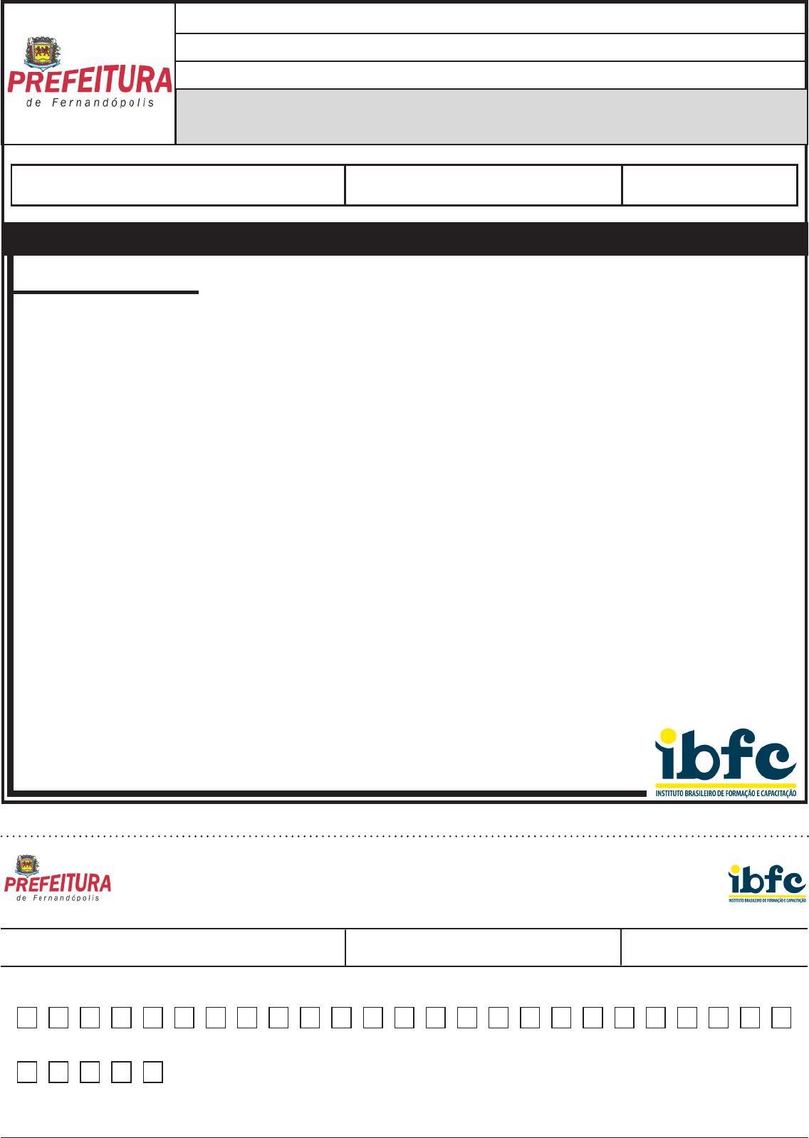 IBFC_03 NOME DO CANDIDATO ASSINATURA DO CANDIDATO RG DO CANDIDA TO PREFEITURA MUNICIPAL DE FERNANDÓPOLIS EDITAL Nº 01/2015 - GERAL NÍVEL MÉDIO BORRACHEIRO, CARPINTEIRO, ELETRICISTA DE AUTO, MOTORISTA, OPERADOR DE MÁQUINA/TRATOR, TORNEIRO MECÂNICO DESTAQUE AQUI GABARITO DO CANDIDATO - RASCUNHO III. . , pager ou similares. LEIA COM ATENÇÃO AS INSTRUÇÕES ABAIXO INSTRUÇÕES GERAIS Nesta prova, você encontrará 04 (quatro) páginas numerad correspondentes às seguintes disciplinas: Língua Portuguesa questões), História de Fernandópolis (05 questões) e Lei or que se seu nome e n de respostas. Se houver erro, notifique o fiscal. Assine e pre om caneta azul ou preta. das questões estão corretas. Caso observe qualquer erro, notifique prova. Reserve os 20 (vinte) minutos finais para marcar o cartão de O candidato a após seu início. O caderno de questões será publicado no site do ibfc, no prazo o espaço correspondente à letra a ser assinalada, conforme o exemplo leitora óptica de nitidez e/ou marcação de mais de uma alternativa. rasurado ou manchado. Exceto sua assinatura, nada deve ser escrito ou reg de respostas e este caderno. As observações ou marcações registradas , pager ou similares Boa Prova! I. as sequencialmente, contendo 30 (trinta) questões (10 questões), Raciocínio Lógico e Matemático (10 gânica do Município de Fernandópolis (05 questões). II. Verifi úmero de inscrição estão corretos no cartão III. encha o cartão de respostas nos locais indicados, c IV. Verifique se a impressão, a paginação e a numeração o fiscal. V. Você dispõe de 04 (quatro) horas para fazer esta respostas. VI. só poderá retirar-se do setor de prova 01 (uma) hor VII. O candidato não poderá levar o caderno de questões. recursal contra gabarito. VIII. Marque o cartão de respostas cobrindo fortemente no próprio cartão de respostas. IX. A não registrará as respostas em que houver falta X. O cartão de respostas não pode ser dobrado, amassado, istrado fora dos locais destinados às respostas. XI. Ao terminar a prova, entregue ao fiscal o cartão no caderno não serão levadas em consideração. XII. É terminantemente proibido o uso de telefone celular . Nome: Assinatura do Candidato: Inscrição: 1 2 3 4 5 6 7 8 9 10 11 12 13 14 15 16 17 18 19 20 21 22 23 24 25 26 27 28 29 30 www.pciconcursos.com.br RASCUNHO www.pciconcursos.com.br IBFC_03 1 LÍNGUA PORTUGUESA Texto I Resíduo (Carlos Drummond de Andrade) De tudo ficou um pouco Do meu medo. Do teu asco. Dos gritos gagos. Da rosa ficou um pouco. Ficou um pouco de luz captada no chapéu. Nos olhos do rufião de ternura ficou um pouco (muito pouco). Pouco ficou deste pó de que teu branco sapato se cobriu. Ficaram poucas roupas, poucos véus rotos, pouco, pouco, muito pouco. Mas de tudo fica um pouco. Da ponte bombardeada, De duas folhas de grama, do maço - vazio – de cigarros, ficou um pouco. Pois de tudo fica um pouco. Fica um pouco de teu queixo no queixo de tua filha. De teu áspero silêncio um pouco ficou, um pouco nos muros zangados, nas folhas, mudas, que sobem. [...] Vocabulário: rufião – indivíduo que se mete em brigas com frequência 1) Em linguagem poética, o texto trata de “resíduos”. Sobre eles é correto afirmar que correspondem: a) às boas lembranças que são frutos das experiências de quem recorda. b) aos objetos concretos com os quais já se teve contato. c) às diversas vivências que, invariavelmente, marcam os indivíduos. d) aos sentimentos que não são plenamente vivenciados. 2) Ao longo do poema, ocorrem combinações inusitadas de substantivos e adjetivos. Assinale a opção cuja combinação ilustre essa afirmação provocando estranheza no leitor em função da caracterização retratada. a) “branco sapato” – 3ª estrofe b) “véus rotos” – 3ª estrofe c) “ponte bombardeada” – 4ª estrofe d) “muros zangados” – 5ª estrofe 3) Nos versos “Fica um pouco de teu queixo/ no queixo de tua filha.” (5ª estrofe), os pronomes possessivos fazem referência: a) ao emissor b) ao leitor c) aos queixos em geral d) ao interlocutor 4) Atentando para os processos de formação de palavras, assinale a opção em que se indica um vocábulo, retirado do texto, que NÃO seja primitivo. a) “chapéu” (2ª estrofe) b) “ternura” (2ª estrofe) c) “ponte” (4ª estrofe) d) “filha.” (5ª estrofe) Texto II Se for a Marte, não beba (Filipe Vilicic, Jennifer Ann Thomas e Raquel Beer) O anúncio publicado na conta do Twitter da NASA na segunda-feira passada, 28, alertava para “o maior mistério já revelado sobre Marte”. Com pompa e retumbância, associadas a fotos, anunciava-se que “Marte não é o planeta seco que pensávamos”, pois, “em certas circunstâncias”, existe água em estado líquido por lá. A própria história de mais de quarenta anos da busca da agência espacial americana por algo que se aproxime de vida no planeta vermelho tratou de, por assim dizer, pôr água na fervura do anúncio. O episódio lembrou uma conhecida fábula de Esopo (do século VI a.C.). Nela, um pastor vivia gritando “É o lobo, é o lobo”, só para rir dos que acreditavam na mentira e vinham em seu socorro. Um dia, o animal apareceu de fato, ele se desesperou, mas ninguém lhe deu ouvidos. Nos últimos tempos, a NASA se acostumou a alardear “É a água, é a água”, e quando sua existência no território marciano pôde, enfim, ser verificada, a novidade soou como algo velho. Não é que o mundo tenha reagido com indiferença à notícia, ou que ela seja falsa. Ao contrário. Mas é preciso que se analise com cautela, sem euforia, todo o fuzuê. Jum Green, diretor de ciência planetária da NASA, deu a pista para isso. Foi ele quem usou a expressão “em certas circunstâncias”, citada anteriormente, na hora de se referir à presença de água no solo árido.[...] por ora, basta sublinhar que a existência de H2O em Marte é sazonal (uma dádiv