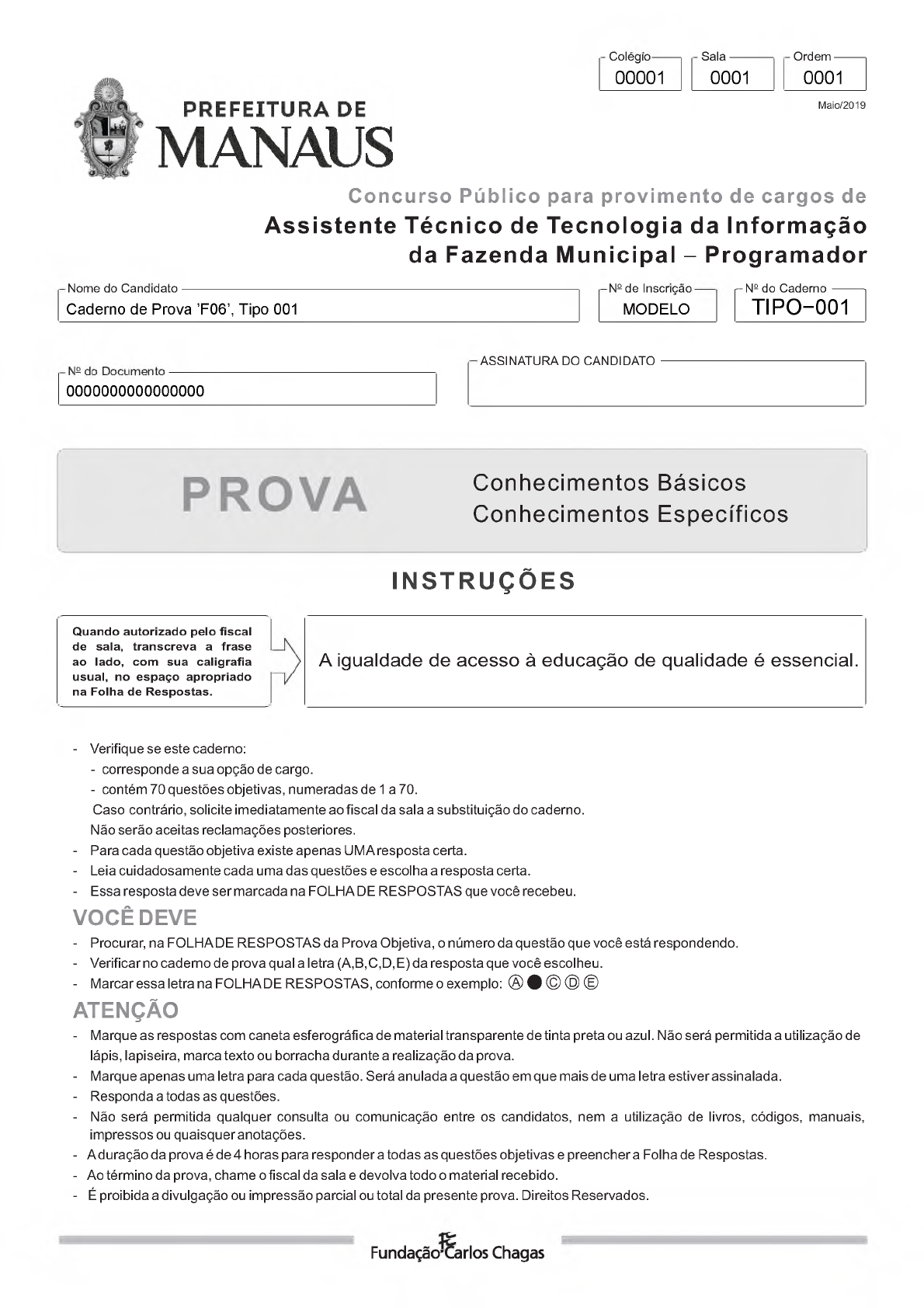 Caderno de Prova ’F06’, Tipo 001 MODELO TIPO-001