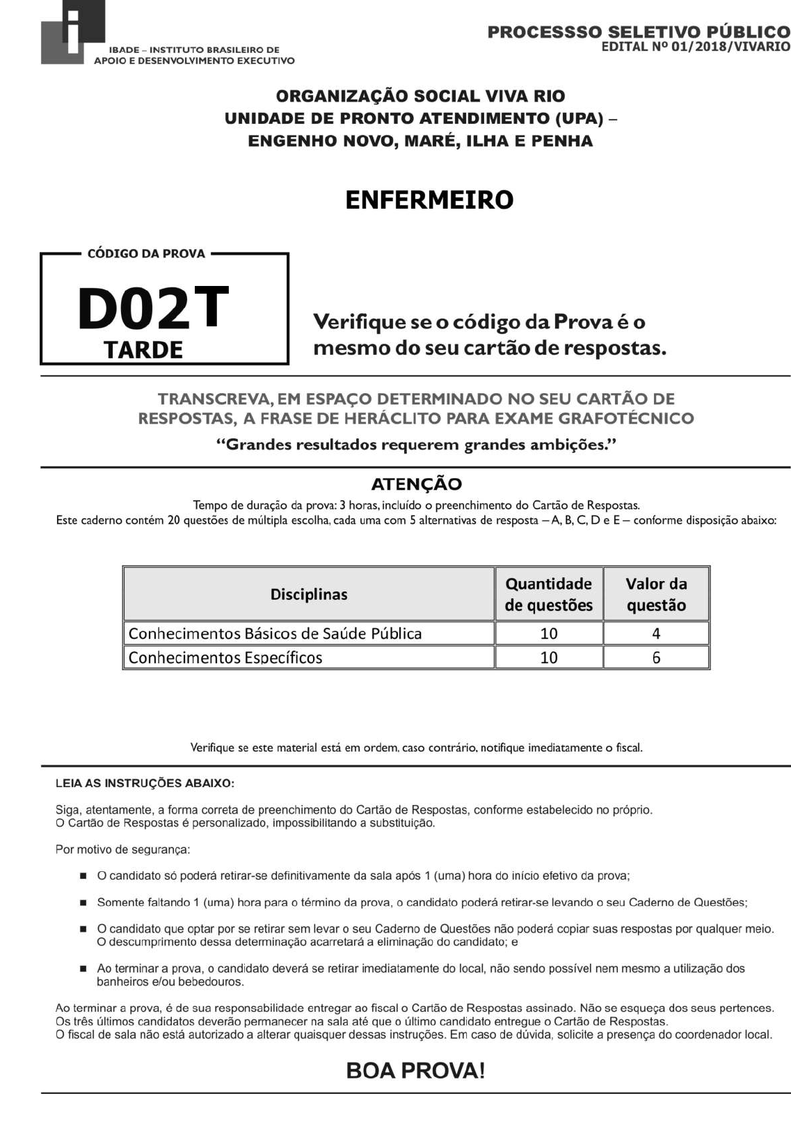 pcimarkpci MDAwMDowMDAwOjAwMDA6MDAwMDowMDAwOmZmZmY6MzZlOTpjMjU5:V2VkLCAxNSBTZXAgMjAyMSAxMTowMDo1MSAtMDMwMA== T pcimarkpci MDAwMDowMDAwOjAwMDA6MDAwMDowMDAwOmZmZmY6MzZlOTpjMjU5:V2VkLCAxNSBTZXAgMjAyMSAxMTowMDo1MSAtMDMwMA== 02 CONHECIMENTOS BÁSICOS DE SAÚDE PÚBLICA Questão 01 A) B) C) D) E) Questão 02 A) B) C) D) E) Questão 03 A) B) C) D) E) Questão 04 A) B) C) D) E) Questão 05 A) B) C) D) E) pcimarkpci MDAwMDowMDAwOjAwMDA6MDAwMDowMDAwOmZmZmY6MzZlOTpjMjU5:V2VkLCAxNSBTZXAgMjAyMSAxMTowMDo1MSAtMDMwMA== 03 Questão 06 A) B) C) D) E) Questão 07 A) B) C) D) E) Questão 08 A) B) C) D) E) Questão 09 A) B) C) D) E) pcimarkpci MDAwMDowMDAwOjAwMDA6MDAwMDowMDAwOmZmZmY6MzZlOTpjMjU5:V2VkLCAxNSBTZXAgMjAyMSAxMTowMDo1MSAtMDMwMA== 04 Questão 10 A) B) C) D) E) CONHECIMENTOS ESPECÍFICOS Questão 11 A) B) C) D) E) Questão 12 A) B) C) D) E) Questão 13 A) B) C) D) E) Questão 14 A) B) C) D) E) pcimarkpci MDAwMDowMDAwOjAwMDA6MDAwMDowMDAwOmZmZmY6MzZlOTpjMjU5:V2VkLCAxNSBTZXAgMjAyMSAxMTowMDo1MSAtMDMwMA== 05 Questão 15 A) B) C) D) E) Questão 16 A) B) C) D) E) Questão 17 A) B) C) D) E) Questão 18 A) B) C) D) E) Questão 19 A) B) C) D) E) pcimarkpci MDAwMDowMDAwOjAwMDA6MDAwMDowMDAwOmZmZmY6MzZlOTpjMjU5:V2VkLCAxNSBTZXAgMjAyMSAxMTowMDo1MSAtMDMwMA== 06 Questão 20 A) B) C) D) E) pcimarkpci MDAwMDowMDAwOjAwMDA6MDAwMDowMDAwOmZmZmY6MzZlOTpjMjU5:V2VkLCAxNSBTZXAgMjAyMSAxMTowMDo0NyAtMDMwMA== Cargo: A01 - COPEIRO Prova: T (Data da Prova: 8/4/2018) Língua Portuguesa 1 2 3 4 5 6 7 C A C A E C C Conhecimentos Básicos de Saúde Pública 8 9 10 11 12 13 C C A D C E Conhecimentos Específicos 14 15 16 17 18 19 20 A C D B A A E Cargo: A01 - COPEIRO Prova: V (Data da Prova: 8/4/2018) Língua Portuguesa 1 2 3 4 5 6 7 A A B C E A D Conhecimentos Básicos de Saúde Pública 8 9 10 11 12 13 E E E A B D Conhecimentos Específicos 14 15 16 17 18 19 20 B D D C A D A Cargo: A01 - COPEIRO Prova: W (Data da Prova: 8/4/2018) Língua Portuguesa 1 2 3 4 5 6 7 C E C E E B D Conhecimentos Básicos de Saúde Pública 8 9 10 11 12 13 D B D E A B Conhecimentos Específicos 14 15 16 17 18 19 20 E E A C B B C Legenda: Questão Anulada - Questão Alterada PSP VIVA RIO – UPA'S ENGENHO NOVO, ILHA, MARÉ E PENHA Gabarito Final da Prova Objetiva Página 1 de 7 pcimarkpci MDAwMDowMDAwOjAwMDA6MDAwMDowMDAwOmZmZmY6MzZlOTpjMjU5:V2VkLCAxNSBTZXAgMjAyMSAxMTowMDo0NyAtMDMwMA== Cargo: A02 - MAQUEIRO Prova: T (Data da Prova: 8/4/2018) Língua Portuguesa 1 2 3 4 5 6 7 C D A D D B E Conhecimentos Básicos de Saúde Pública 8 9 10 11 12 13 A E B C B A Conhecimentos Específicos 14 15 16 17 18 19 20 A E C D D B * Cargo: A02 - MAQUEIRO Prova: V (Data da Prova: 8/4/2018) Língua Portuguesa 1 2 3 4 5 6 7 A C D C D C C Conhecimentos Básicos de Saúde Pública 8 9 10 11 12 13 B A B B A C Conhecimentos Específicos 14 15 16 17 18 19 20 B E D E B E * Cargo: A02 - MAQUEIRO Prova: W (Data da Prova: 8/4/2018) Língua Portuguesa 1 2 3 4 5 6 7 C D B D E D E Conhecimentos Básicos de Saúde Pública 8 9 10 11 12 13 B A E C B B Conhecimentos Específicos 14 15 16 17 18 19 20 C E A A D C * Cargo: B01 - TÉCNICO DE ENFERMAGEM Prova: T (Data da Prova: 8/4/2018) Conhecimentos Básicos de Saúde Pública 1 2 3 4 5 6 7 8 9 10 E C B C E A D C A D CONHECIMENTOS ESPECÍFICOS 11 12 13 14 15 16 17 18 19 20 E E E A B B E A C E Legenda: Questão Anulada - Questão Alterada PSP VIVA RIO – UPA'S ENGENHO NOVO, ILHA, MARÉ E PENHA Gabarito Final da Prova Objetiva Página 2 de 7 pcimarkpci MDAwMDowMDAwOjAwMDA6MDAwMDowMDAwOmZmZmY6MzZlOTpjMjU5:V2VkLCAxNSBTZXAgMjAyMSAxMTowMDo0NyAtMDMwMA== Cargo: B01 - TÉCNICO DE ENFERMAGEM Prova: V (Data da Prova: 8/4/2018) Conhecimentos Básicos de Saúde Pública 1 2 3 4 5 6 7 8 9 10 C E C A C E D D B A CONHECIMENTOS ESPECÍFICOS 11 12 13 14 15 16 17 18 19 20 E B A C C B C E B E Cargo: B01 - TÉCNICO DE ENFERMAGEM Prova: W (Data da Prova: 8/4/2018) Conhecimentos Básicos de Saúde Pública 1 2 3 4 5 6 7 8 9 10 E D C E A D E E C D CONHECIMENTOS ESPECÍFICOS 11 12 13 14 15 16 17 18 19 20 A C A C D D A C D A Cargo: B02 - TÉCNICO DE LABORATÓRIO Prova: T (Data da Prova: 8/4/2018) Conhecimentos Básicos de Saúde Pública 1 2 3 4 5 6 7 8 9 10 A C B E D A B C E D CONHECIMENTOS ESPECÍFICOS 11 12 13 14 15 16 17 18 19 20 E D C A D E A E C B Cargo: B03 - TÉCNICO EM RADIOLOGIA Prova: T (Data da Prova: 8/4/2018) Conhecimentos Básicos de Saúde Pública 1 2 3 4 5 6 7 8 9 10 A A C D A E C E A B CONHECIMENTOS ESPECÍFICOS 11 12 13 14 15 16 17 18 19 20 B A B C E E C C C B Cargo: B03 - TÉCNICO EM RADIOLOGIA Prova: V (Data da Prova: 8/4/2018) Conhecimentos Básicos de Saúde Pública 1 2 3 4 5 6 7 8 9 10 E D A D D A C B A D CONHECIMENTOS ESPECÍFICOS 11 12 13 14 15 16 17 18 19 20 B C D B C C A C C C Legenda: Questão Anulada - Questão Alterada PSP VIVA RIO – UPA'S ENGENHO NOVO, ILHA, MARÉ E PENHA Gabarito Final da Prova Objetiva Página 3 de 7 pcimarkpci MDAwMDowMDAwOjAwMDA6MDAwMDowMDAwOmZmZmY6MzZlOTpjMjU5:V2VkLCAxNSBTZXAgMjAyMSAxMTowMDo0NyAtMDMwMA== Cargo: B03 - TÉCNICO EM RADIOLOGIA Prova: W (Data da Prova: 8/4/2018) Conhecimentos Básicos de Saúde Pública 1 2 3 4 5 6 7 8 9 10 B A B E A B B A B C CONHECIMENTOS ESPECÍFICOS 11 12 13 14 15 16 17 18 19 20 A D B A E D D B C A Cargo: C01 - AUXILIAR ADMINISTRATIVO Prova: T (Data da Prova: 8/4/2018) Língua Portuguesa 1 2 3 4 5 C A E E A Informática Básica 6 7 8 9 10 C E C A B Conhecimentos Básicos de Saúde Pública 11 12 13 14 15 A B D A E Conhecimentos Específicos 16 17 18 19 20 E A B E C Cargo: C01 - AUXILIAR ADMINISTRATIVO Prova: V (Data da Prova: 8/4/2018) Língua Portuguesa 1 2 3 4 5 D B B B C Informática Básica 6 7 8 9 10 D A B D E Conhecimentos Básicos de Saúde Pública 11 12 13 14 15 E E E E A Conhecimentos Específicos 16 17 18 19 20 B A E C B Legenda: Questão Anulada - Questão Alterada PSP VIVA RIO – UPA'S ENGENHO NOVO, ILHA, MARÉ E PENHA Gabarito Final da Prova Objetiva Página 4 de 7 pcimarkpci MDAwMDowMDAwOjAwMDA6MDAwMDowMDAwOmZmZmY6MzZlOTpjMjU5:V2VkLCAxNSBTZXAgMjAyMSAxMTowMDo0NyAtMDMw