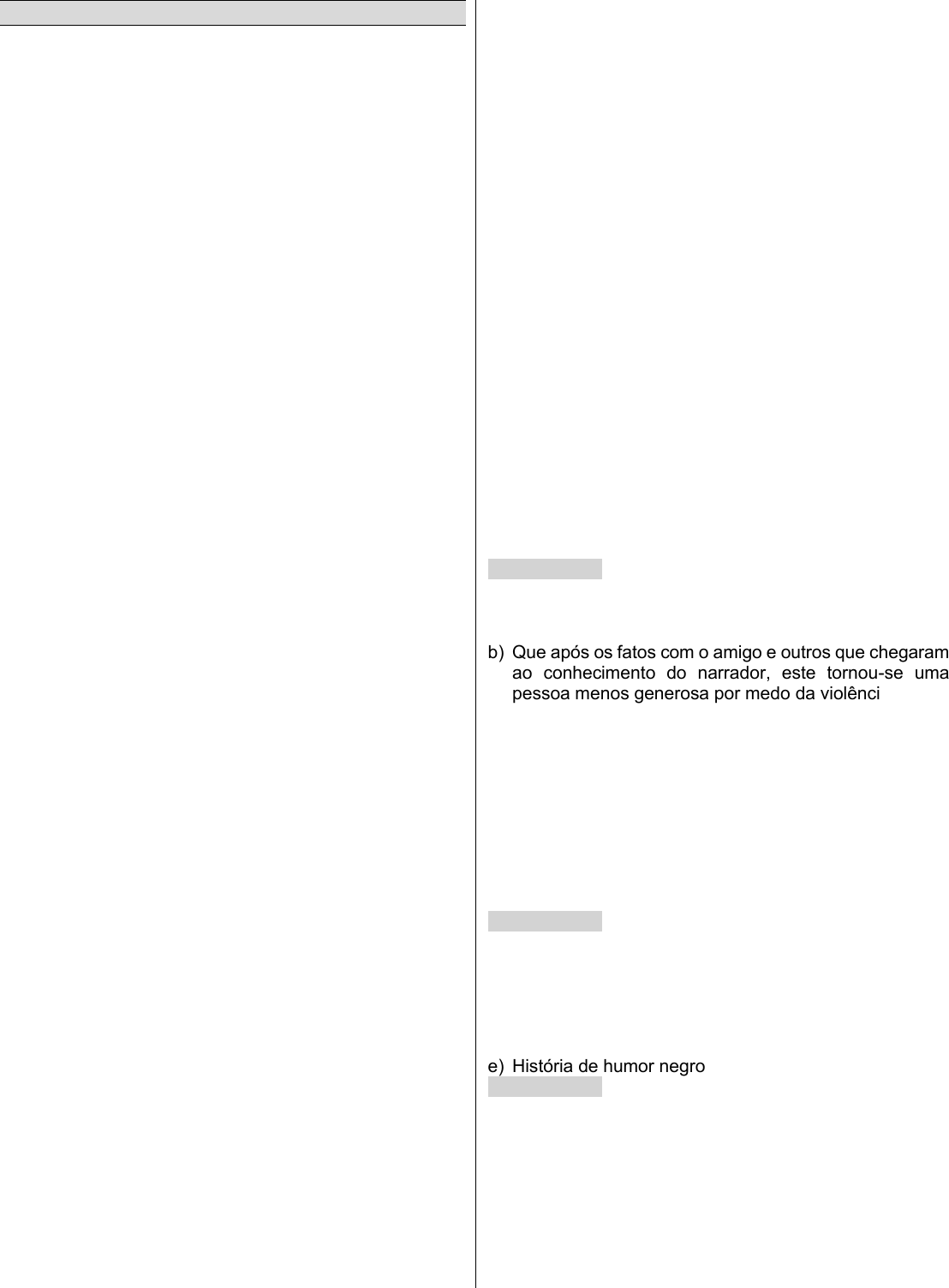 FIEC – FUNDAÇÃO INDAIATUBANA DE EDUCAÇÃO E CULTURA/SP – CONCURSO PÚBLICO DE PROVAS E TÍTULOS – EDITAL Nº 01/2019 PROVA OBJETIVA: 3.02 – PROCURADOR JURÍDICO Página 1 LÍNGUA PORTUGUESA Leia o texto a seguir e responda às questões de 01 a 05: Eu tenho medo Walcyr Carrasco Parece história de humor negro. Não é. Aconteceu de verdade, é realmente um horror. Um amigo, médico dermatologista, foi fechado por um caminhão num dos acessos à Avenida 23 de Maio, em São Paulo. O carro saiu da pista, despencou pela ribanceira e colidiu com arbustos, pedras, desníveis de terreno. Meu amigo bateu a cabeça, ensanguentou-se. Primeiro horror: o caminhão fugiu. Sei que isso não surpreende ninguém. Nunca ouvi a história de um caminhão que parasse após provocar um acidente. Um funcionário meu recentemente foi fechado por um, em plena Via Dutra. Ele se machucou, o carro amassou em toda a lateral. O caminhoneiro acelerou, para se ver livre da responsabilidade. A história começa com esse horror com que me acostumei: caminhões não param nem para ver se a gente está vivo. Ainda dentro do carro, sangrando, meu amigo médico pegou o celular para pedir socorro. Estava sem bateria. Um Gol parou. Dois rapazes desceram e ofereceram ajuda. Auxiliaram-no a subir a rampa até uma empresa, cujo segurança, finalmente, chamou a polícia. O acidentado voltou para o carro. As duas “almas bondosas” haviam roubado tudo o que ele tinha. Sim, os rapazes do Gol levaram celular, carteira, cartões de crédito, bolsa. Tudo. E fugiram. É um segundo horror, que superdimensiona o outro. O pior é a conclusão do médico: – Ainda bem que eu estava sem bateria e não fiquei no carro. E que não cheguei quando roubavam. Aí, teriam acabado comigo. Verdade absoluta. Teria sido fácil, para roubar, acabar com o médico ensanguentado. Nem deixariam pistas, tudo seria debitado ao acidente. Esse acontecimento me provoca um pavor profundo. Estou ficando velho. Sou de um tempo em que mesmo adolescente, às vezes, quando saía, amanhecia no ponto de ônibus esperando o primeiro da minha linha. Quantas vezes amigos e eu passamos o final da madrugada no banco de uma praça, batendo papo até o ônibus chegar? Também sou de um tempo em que, para viajar, ia para a estrada e pegava carona. Era fácil, sempre havia um carro que parava. De carona em carona, eu chegava ao meu destino. Nem sabia o que era pegar ônibus para viajar. Avião, menos ainda. Hoje, eu mesmo não paro quando alguém me pede carona. Tenho medo. Mesmo porque são inúmeros os casos em que a generosidade é recompensada com assaltos e agressões. Até assassinatos. Assaltos sempre aconteceram. Psicopatas existem. O que me apavora é essa sensação disseminada de vale-tudo na nossa sociedade. Comecei a contar a história do médico a três outros amigos. Todos, antes de eu terminar, disseram: – Aposto que os caras do Gol tinham roubado tudo. A completa falta de ética já é esperada, tida como normal. É intrínseca à sociedade nacional. Não posso falar por todos os países do mundo. Costumo viajar, andar à noite pelas ruas, eventualmente ser ajudado por desconhecidos. Esse descaso com o outro, só vejo mesmo por aqui. Um ator conhecido certa vez viu uma mulher atropelada na rua, abandonada pelo autor do acidente. Botou no seu próprio carro e levou ao hospital. Não deu outra: mais tarde a dita-cuja o acusou de ser responsável pelo atropelamento. Exigiu indenização. Em vez de agradecer, deu um golpe. Soube também de donos de automóveis que instalam câmeras em seus veículos, porque há gente que se atira na frente, para mais tarde processar. A gravação serve para provar a má intenção da “vítima”. Resultado: se atropelar alguém, óbvio, socorrerei. Mas terei medo de pôr no meu carro alguém que encontre ferido, atropelado, precisando de ajuda, porque tudo pode se voltar contra mim. Aí meu medo aumenta. Já não é mais relacionado a ser assaltado, sofrer alguma violência. É o que o medo do medo faz comigo, interiormente. Me sinto uma pessoa muito menos disposta a ser generosa. Sempre estranhei as recomendações do seguro: no caso de problema com o carro, chamar o socorro e ficar distante do veículo, até sua chegada. Depois do episódio com o médico, entendo. O ferido está mais exposto. Nem falo das mulheres assassinadas só por esboçar um gesto de defesa quando querem roubar suas bolsas. Só isso daria um livro. O amor ao próximo, o sentimento pelo outro, foi eliminado de nossas relações sociais. Resta o medo, o mesmo que sinto dentro de mim. Não só do que me assusta. Mas que me transforma em alguém pior do que eu queria ser. (Revista Época, n. 856, 27 out. 2014, p. 106) QUESTÃO 01 De acordo com o texto é possível afirmar: a) Que após o assalto do amigo, o narrador tornou-se uma pessoa má. b) Que após os fatos com o amigo e outros que chegaram ao conhecimento do narrador, este tornou-se uma pessoa menos generosa por medo da violência. c) Que após o amigo ser fechado por um caminhão, o narrador ficou menos generoso com caminhoneiros que trafegam pela Via Dutra. d) Que antes do amigo ser assaltado, o narrador já evitava amanhecer em bancos na companhia de outros amigos, pois todos se tornaram menos generosos diante a assaltos e acidentes. e) Que o narrador e os amigos sempre presenciaram assaltos, mas mesmo assim gostavam de amanhecer em bancos a espera do ônibus. QUESTÃO 02 A construção sintática da frase “O amor ao próximo”, no último parágrafo do texto é a mesma observada em: a) O ferido está mais exposto. b) Resta o medo. c) A completa falta de ética. d) Aconteceu de verdade. e) História de humor negro. QUESTÃO 03 A norma culta, na modalidade escrita, observa uma inadequação em: a) “Não só do que me assusta”, pois o pronome oblíquo deveria estar obrigatoriamente após o verbo. b) “É o que o medo do medo faz comigo”, pois a repetição de termos deixa a or