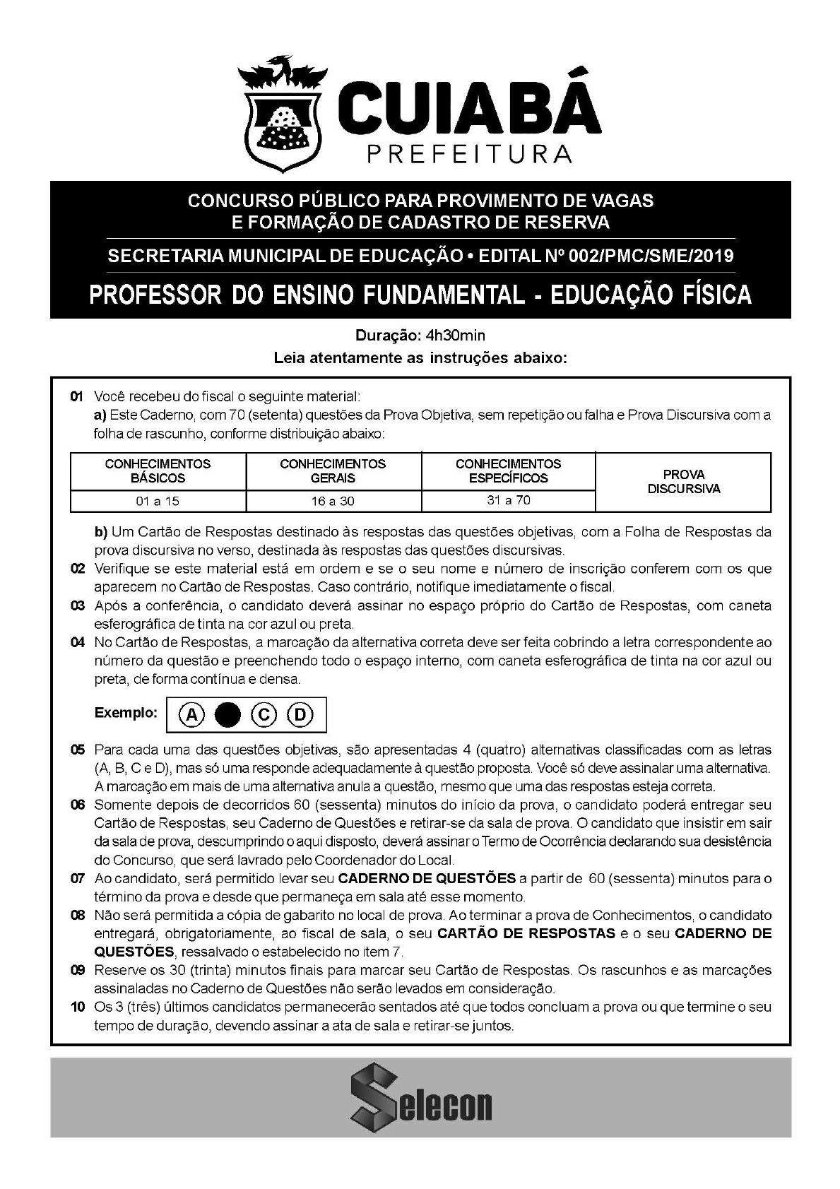 xCUIABÁ PREFEITURA CONCURSO PÚBLICO PARA PROVIMENTO DE VAGAS E FORMAÇÃO DE CADASTRO DE RESERVA SECRETARIA MUNICIPAL DE EDUCAÇÃO * EDITALNº 002/PMCISME/2019 PROFESSOR DO ENSINO FUNDAMENTAL - EDUCAÇÃOFÍSICA Duração: 4h30min Leia atentamente as instruções abaixo: 0 Você recebeu dofiscal o seguinte material: a) Este Caderno, com 70 (setenta) questões da Prova Objetiva, sem repetição ou falha e Prova Discursiva com a folha de rascunho, conforme distribuição abaixo: CONHECIMENTOS CONHECIMENTOS CONHECIMENTOS BÁSICOS GERAIS ESPECÍFICOS PROVA DISCURSIVA 01a 15 16a 30 31 a 70 10 b) Um Cartão de Respostas destinado às respostas das questões objetivas, com a Folha de Respostas da prova discursiva no verso, destinada às respostas das questões discursivas. Verifique se este material está em ordem e se o seu nome e número de inscrição conferem com os que aparecem no Cartão de Respostas. Caso contrário, notifique imediatamente o fiscal. Após a conferência, o candidato deverá assinar no espaço próprio do Cartão de Respostas, com caneta esferográfica de tinta na cor azul ou preta. No Cartão de Respostas, a marcação da alternativa correta deve ser feita cobrindo a letra correspondente ao número da questão e preenchendo todo o espaçointerno, com caneta esferográfica de tinta na cor azul ou preta, de forma contínua e densa. Exemplo: (A) O (c) (D) Para cada uma das questões objetivas, são apresentadas 4 (quatro) alternativas classificadas com as letras (A, B, Ce D), mas só uma responde adequadamente à questão proposta. Você só deve assinalar uma alternativa. A marcação em mais de uma alternativa anula a questão, mesmo que uma das respostas esteja correta. Somente depois de decorridos 60 (sessenta) minutos do início da prova, o candidato poderá entregar seu Cartão de Respostas, seu Caderno de Questõese retirar-se da sala de prova. O candidato queinsistir em sair da sala de prova, descumprindo o aqui disposto, deverá assinar o Termo de Ocorrência declarando sua desistência do Concurso, que será lavrado pelo Coordenador do Local. Ao candidato, será permitido levar seu CADERNO DE QUESTÕES partir de 60 (sessenta) minutos para o término da prova e desde que permaneça em sala até esse momento. Não será permitida a cópia de gabarito no local de prova. Ao terminar a prova de Conhecimentos, o candidato entregará, obrigatoriamente, ao fiscal de sala, o seu CARTÃO DE RESPOSTAS e o seu CADERNO DE QUESTÕES, ressalvado o estabelecido no item 7. Reserve os 30 (trinta) minutos finais para marcar seu Cartão de Respostas. Os rascunhos e as marcações assinaladas no Caderno de Questões não serão levados em consideração. Os 3 (três) últimos candidatos permanecerão sentados até que todos concluam a prova ou que termine o seu tempo de duração, devendo assinar a ata de sala e retirar-se juntos. Soleem VACINAS, PARA QUE AS QUERO? Em um momento em que os menos avisados suspeitam das vacinas, as autoridades em saúde pública e imunologia apresentam dados mostrando que, na realidade, as vacinas precisam, sim, ser inoculadas com mais frequência. Esse é o teor do artigo 'Quanto tempo duram as vacinas”, assinado por Jon Cohen publicado na prestigiosa revista Scienceem abril de 2019. Nele, Cohen indaga, entre outros assuntos, por que o efeito protetor das vacinas contra a gripe dura tão pouco (em média, depois de 90 dias, a proteção começa a cair) e em outras, como as da varíola e da febre amarela, a ação é bem mais prolongada. Alguns especialistas argumentam que certos vírus sofrem altas taxas de mutação e geram novos clones, que, por serem ligeiramente diferentes dosoriginais, não seriam reconhecidos pelas células do sistema imune. Mas, a coisa não é tão simples assim. Ao estudar a caxumba (que ainda afeta os humanos), por exemplo, os epidemiologistas descobriram que a recorrência da doença acontece com mais frequência em uma determinada faixa etária (entre 18 e 29 anos de idade). Sea reinfecção dependesse apenas de mutações, todas as idades deveriam ser igualmente afetadas. Assim, o enigma perdura. No entanto, o consenso entre os imunologistas especializados em vacinas é que, de fato, precisamos de mais exposição aos agentes infecciosos ou às próprias vacinas. Em outras palavras, no caso da gripe, teríamos que tomar doses seguidas da vacina a fim de aumentar seu efeito protetor. Em razão desses achados, os pesquisadoreschegaram até a criticara decisão da Organização Mundial da Saúde (OMS) de recomendar que a vacina contra a febre amarela devesse ser inoculada apenas uma vez, isto é, seria uma vacina vitalícia. A necessidade da exposição constante aos agentes infecciosos vai de encontro à hipótese do biólogo norte- americano Jared Diamond que, em seu livro Armas, germes e aço, defende a ideia de que, ao longo da história, o sucesso dos conquistadores se deveu, em parte, ao fato de eles serem originalmente cosmopolitas e, dessa maneira, terem adquirido resistência imunológica aos agentes infecciosos da época. Mesmoresistentes, seriam portadores desses agentes, o que manteria a memória imunológica. Já os conquistados, grupo formado por populações menores, sucumbiriam ao confronto por não serem capazesde se defendertanto dos invasores humanos quanto daqueles microscópicos. Emborao avanço nessa área seja promissor, o mecanismo que torna uma vacina mais duradoura ou não ainda segue sem resposta. Como afirma Cohen em seu artigo, “essa é uma pergunta de um milhão de dólares!” (aproximadamente, o valor do prêmio Nobel). A despeito disso, ninguém deveria duvidar do poder das vacinas. Muito pelo contrário. A tendência atual no tratamento de doenças crônicas, como o câncere a artrite reumatoide, é a imunoterapia. Um dia, quem sabe, teremosvacinas contra todos esses males. Franklin Rumjanek (Disponível em: http:/cienciahoje.org.br/artigo/vacinas- ara-que-as-quero/) 1 « O título ant