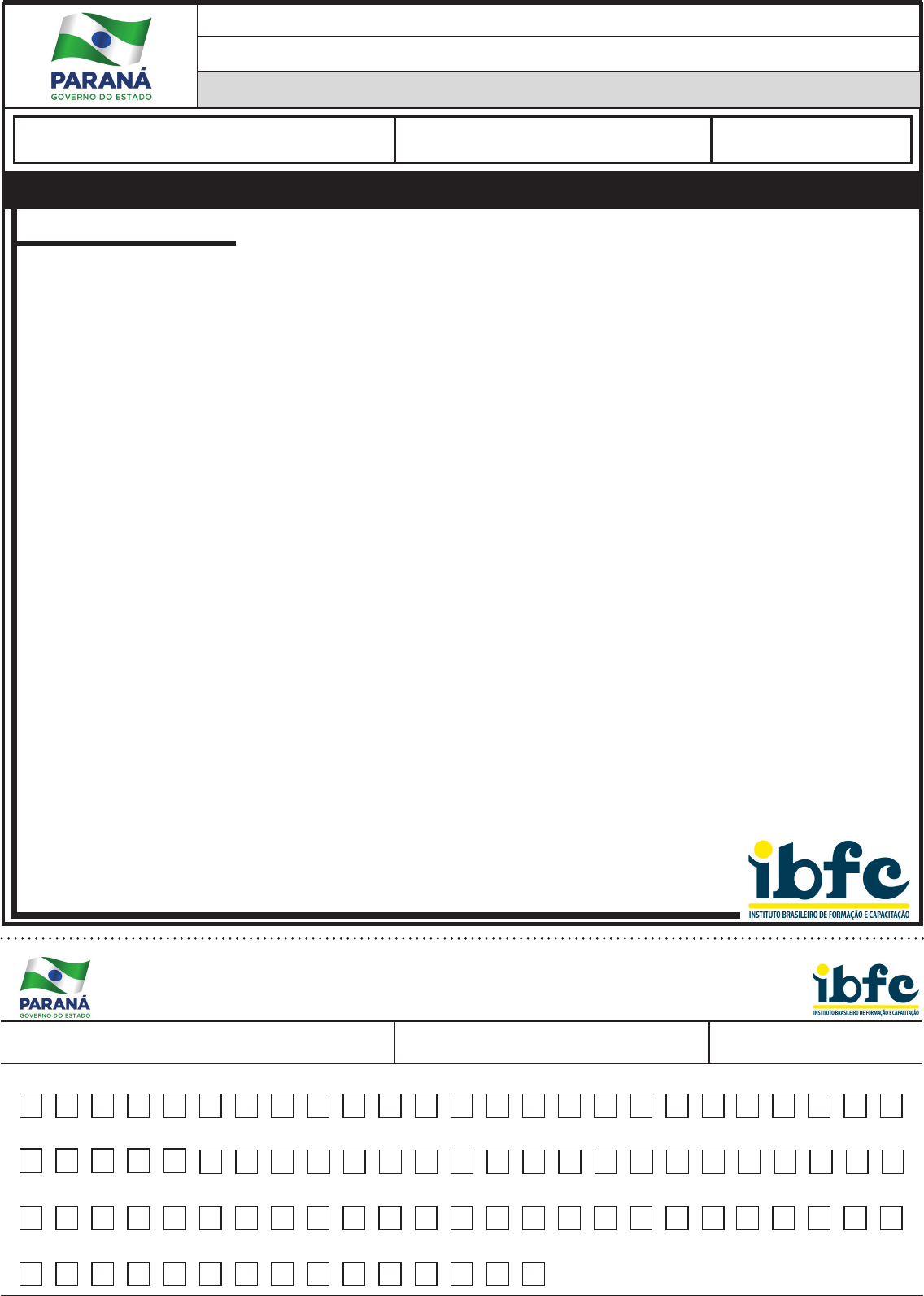 IBFC_05 DESTAQUE AQUI GABARITO DO CANDIDATO - RASCUNHO Nome: Assinatura do Candidato: Inscrição: POLÍCIA CIENTÍFICA DO ESTADO DO PARANÁ CONCURSO PÚBLICO - EDITAL 01/2017 - NÍVEL SUPERIOR QUÍMICO LEGAL NOME DO CANDIDATO ASSINATURA DO CANDIDATO RG DO CANDIDATO INSTRUÇÕES GERAIS I. Nesta prova, você encontrará 15 (quinze) páginas numeradas sequencialmente, contendo 90 (noventa) questões objetivas correspondentes às seguintes disciplinas: Língua Portuguesa (10 questões), Noções básicas de Direito Penal e Processual Penal (08 questões), Noções básicas de Direito Administrativo (08 questões), Legislação (09 questões), Conhecimentos Específicos (55 questões) e uma prova discursiva. II. Verifique se seu nome e número de inscrição estão corretos no cartão de respostas. Se houver erro, notifique o fiscal. III. Verifique se o caderno de provas se refere ao cargo para o qual você se inscreveu. Caso o cargo esteja divergente, solicite ao fiscal de sala para que tome as providências cabíveis, pois não serão aceitas reclamações posteriores nesse sentido. IV. Assine e preencha o cartão de respostas nos locais indicados, com caneta azul ou preta. V. Verifique se a impressão, a paginação e a numeração das questões estão corretas. Caso observe qualquer erro, notifique o fiscal. VI. As respostas da Prova Discursiva deverão conter no mínimo 25 (vinte e cinco) e no máximo 40 (quarenta) linhas. Transcreva-as, com caneta azul ou preta, para a Folha de Respostas, no espaço da questão correspondente. VII. Marque o cartão de respostas cobrindo fortemente o espaço correspondente à letra a ser assinalada, conforme o exemplo no próprio cartão de respostas. VIII. A leitora óptica não registrará as respostas em que houver falta de nitidez e/ou marcação de mais de uma alternativa. IX. O cartão de respostas não pode ser dobrado, amassado, rasurado ou manchado. Exceto sua assinatura, nada deve ser escrito ou registrado fora dos locais destinados às respostas. X. Ao terminar a prova, entregue ao fiscal o cartão de respostas e este caderno. As observações ou marcações registradas no caderno não serão levadas em consideração. XI. Você dispõe de 05 (cinco) horas para fazer esta prova. Reserve os 20 (vinte) minutos finais para marcar o cartão de respostas. XII. O candidato só poderá retirar-se do setor de prova 02 (duas) horas após seu início. XIII. O candidato não poderá levar o caderno de questões. O caderno de questões será publicado no site do IBFC, no prazo recursal contra gabarito. XIV. É terminantemente proibido o uso de telefone celular, pager ou similares. Boa Prova! LEIA COM ATENÇÃO AS INSTRUÇÕES ABAIXO 31 26 32 27 33 28 34 29 35 30 36 37 38 39 40 41 42 43 44 45 46 47 48 49 50 1 2 3 4 5 6 7 8 9 10 11 12 13 14 15 16 2117 2218 2319 2420 25 76 77 78 79 80 81 82 83 84 85 86 87 88 89 90 51 52 53 54 55 56 57 58 59 60 61 62 63 64 65 66 7167 7268 7369 7470 75 RASCUNHO 1IBFC_05 LÍNGUA PORTUGUESA Texto I O médico que ousou afirmar que os médicos erram – inclusive os bons Em um mesmo dia, o neurocirurgião Henry Marsh fez duas cirurgias. Operou o cérebro de uma mulher de 28 anos, grávida de 37 semanas, para retirar um tumor benigno que comprimia o nervo óptico a ponto de ser improvável que ela pudesse enxergar seu bebê quando nascesse. Em seguida, dissecou um tumor do cérebro de uma mulher já na casa dos 50 anos. A cirurgia era mais simples, mas a malignidade do tumor não dava esperanças de que ela vivesse mais do que alguns meses. Ao final do dia, Marsh constatou que a jovem mãe acordara da cirurgia e vira o rostinho do bebê, que nascera em uma cesárea planejada em sequência à operação cerebral. O pai do bebê gritara pelo corredor que Marsh fizera um milagre. A seguir, em outro quarto do mesmo hospital, Marsh descobria que a paciente com o tumor maligno nunca mais acordaria. Provavelmente, ele escavara o cérebro mais do que seria recomendável – e apressara a morte da paciente, que teve uma hemorragia cerebral. O marido e a filha da mulher o acusaram de ter roubado os últimos momentos juntos que restavam à família. É esse jogo entre vida e morte, angústia e alívio, comum à vida dos médicos, que Marsh narra em seu livro Sem causar mal – Histórias de vida, morte e neurocirurgia (...), lançado nesta semana no Brasil. Para suportar essa tensão, Marsh afirma que uma boa dose de autoconfiança é um pré-requisito necessário a médicos que fazem cirurgias consideradas por ele mais desafiadoras do que outras. Não sem um pouco de vaidade, Marsh inclui nesse rol as operações cerebrais, nas quais seus instrumentos cirúrgicos deslizam por “pensamentos, emoções, memórias, sonhos e reflexões”, todos da consistência de gelatina. [...] (Disponível em: http://epoca.globo.com/vida/noticia/2016/06/o- medico-que-ousou-afirmar-que-os-medicos-erram-inclusive-os-bons. html. Acesso em 01/01/17) 1) O texto acima apresenta um caráter mais objetivo e sugere ter como finalidade central: a) desvalorizar o trabalho dos médicos diante dos pacientes. b) explicar que existem cirurgias mais simples do que outras. c) apresentar aos leitores o livro escrito pelo neurocirurgião. d) descrever a rotina diária de um médico em seu trabalho. e) mostrar como os pacientes podem ser ingratos. 2) Em adequação à ideia apresentada no título, nota- se que o primeiro parágrafo do texto apresenta duas histórias que são contrastadas, sobretudo, em função: a) das idades das mulheres serem tão diferentes. b) dos históricos de vida das duas pacientes. c) de o neurocirurgião ser um profissional experiente. d) da reação das famílias com o resultado das cirurgias. e) do nível de complexidade de cada cirurgia. 3) Embora o texto seja marcado pela impessoalidade, percebe-se a presença de uma avaliação, um juízo de valor, por parte do enunciador do texto, na seguinte passagem: a) “Em um mesmo dia, o neurocirurgião 