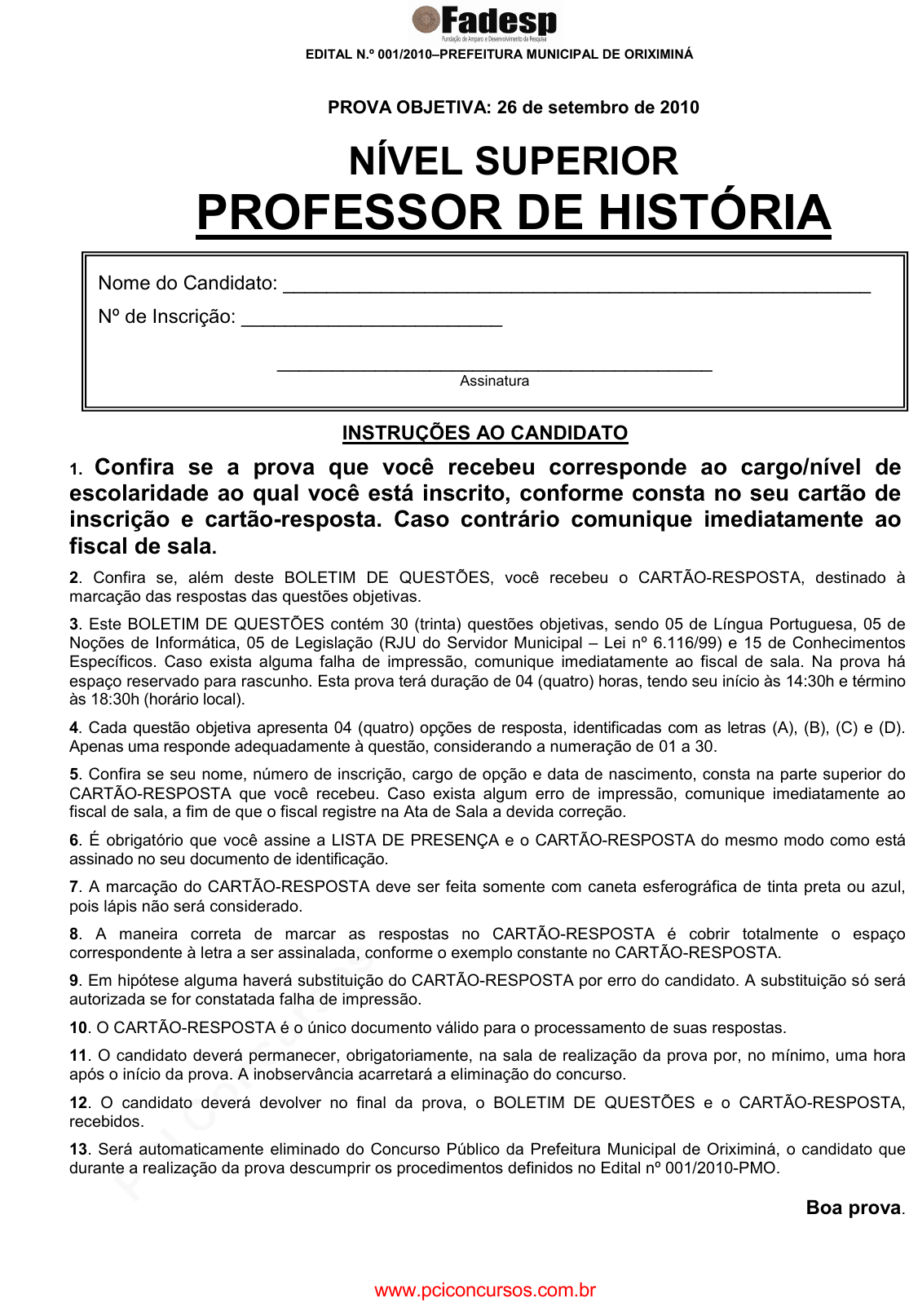inscrição e cartão-resposta. Caso contrário comunique imediatamente ao
