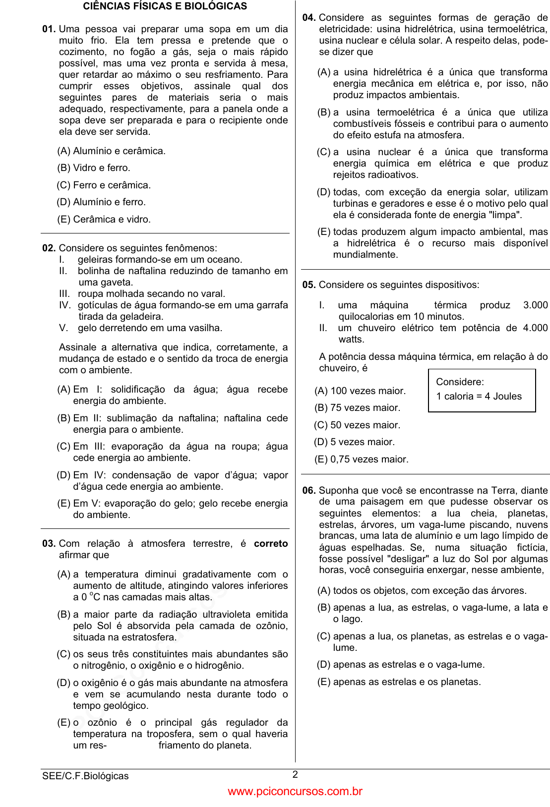 CIÊNCIAS FÍSICAS E BIOLÓGICAS