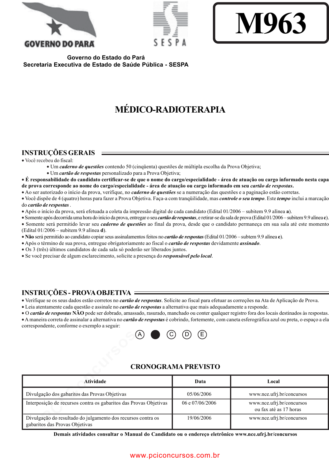 pcimarkpci MDAwMDowMDAwOjAwMDA6MDAwMDowMDAwOmZmZmY6MzZlOTpjMjU5:VHVlLCAxNCBTZXAgMjAyMSAwNTowNzoxNCAtMDMwMA== M963 MÉDICO-RADIOTERAPIA CRONOGRAMA PREVISTO Atividade Data Local Divulgação dos gabaritos das Provas Objetivas 05/06/2006 www.nce.ufrj.br/concursos Interposição de recursos contra os gabaritos das Provas Objetivas 06 e 07/06/2006 www.nce.ufrj.br/concursos ou fax até as 17 horas Divulgação do resultado do julgamento dos recursos contra os 19/06/2006 www.nce.ufrj.br/concursos gabaritos das Provas Objetivas Demais atividades consultar o Manual do Candidato ou o endereço eletrônico www.nce.ufrj.br/concursos INSTRUÇÕES GERAIS • Você recebeu do fiscal: • Um caderno de questões contendo 50 (cinqüenta) questões de múltipla escolha da Prova Objetiva; • Um cartão de respostas personalizado para a Prova Objetiva; • É responsabilidade do candidato certificar-se de que o nome do cargo/especialidade - área de atuação ou cargo informado nesta capa de prova corresponde ao nome do cargo/especialidade - área de atuação ou cargo informado em seu cartão de respostas. • Ao ser autorizado o início da prova, verifique, no caderno de questões se a numeração das questões e a paginação estão corretas. • Você dispõe de 4 (quatro) horas para fazer a Prova Objetiva. Faça-a com tranqüilidade, mas controle o seu tempo. Este tempo inclui a marcação do cartão de respostas . • Após o início da prova, será efetuada a coleta da impressão digital de cada candidato (Edital 01/2006 – subitem 9.9 alínea a). • Somente após decorrida uma hora do início da prova, entregar o seu cartão de respostas, e retirar-se da sala de prova (Edital 01/2006 – subitem 9.9 alínea c). • Somente será permitido levar seu caderno de questões ao final da prova, desde que o candidato permaneça em sua sala até este momento (Edital 01/2006 – subitem 9.9 alínea d). • Não será permitido ao candidato copiar seus assinalamentos feitos no cartão de respostas (Edital 01/2006 – subtem 9.9 alínea e). • Após o término de sua prova, entregue obrigatoriamente ao fiscal o cartão de respostas devidamente assinado. • Os 3 (três) últimos candidatos de cada sala só poderão ser liberados juntos. • Se você precisar de algum esclarecimento, solicite a presença do responsável pelo local. INSTRUÇÕES - PROVA OBJETIVA • Verifique se os seus dados estão corretos no cartão de respostas. Solicite ao fiscal para efetuar as correções na Ata de Aplicação de Prova. • Leia atentamente cada questão e assinale no cartão de respostas a alternativa que mais adequadamente a responde. • O cartão de respostas NÃO pode ser dobrado, amassado, rasurado, manchado ou conter qualquer registro fora dos locais destinados às respostas. • A maneira correta de assinalar a alternativa no cartão de respostas é cobrindo, fortemente, com caneta esferográfica azul ou preta, o espaço a ela correspondente, conforme o exemplo a seguir: A C D E Governo do Estado do Pará Secretaria Executiva de Estado de Saúde Pública - SESPA www.pciconcursos.com.br pcimarkpci MDAwMDowMDAwOjAwMDA6MDAwMDowMDAwOmZmZmY6MzZlOTpjMjU5:VHVlLCAxNCBTZXAgMjAyMSAwNTowNzoxNCAtMDMwMA== 2 Concurso Público - 2006GOVERMO DO PARÁ LÍNGUA PORTUGUESA Por que o Budismo encanta o Ocidente? Frei Betto O budismo faz tanto sucesso no Ocidente porque possui características que correspondem às tendências da pós- modernidade neoliberal. Num mundo em que muitas religiões se sustentam em estruturas autoritárias e apresentam desvios fundamentalistas, o budismo apresenta-se como uma não- religião, uma filosofia de vida que não possui hierarquias, estruturas nem códigos canônicos. No budismo não há a idéia de Deus, nem de pecado. Centrado no indivíduo e baseado na prática da yoga e da meditação, o budismo não exige compromissos sociais de seus adeptos, nem submissão a uma comunidade ou crença em verdades reveladas. Há, contudo, muitos budistas engajados em lutas sociais e políticas. Nessa cultura do elixir da eterna juventude, em que o envelhecimento e morte são encarados, não como destinos, mas como fatalidades, o budismo oferece a crença na reencarnação. Acreditar que será possível viver outras vidas além dessa é sempre consolo e esperança para quem se deixa seduzir pela idéia da imortalidade e não se sente plenamente realizado nessa existência. Outro aspecto do budismo que o torna tão palatável no Ocidente é a sua adequação a qualquer tendência religiosa. Pode-se ser católico ou protestante e abraçar o budismo como disciplina mental e espiritual, sem conflitos. Mesclar diferentes tradições religiosas é uma tendência crescente para quem respira a ideologia pós-moderna do individualismo exacerbado, segundo a qual cada um de nós pode ser seu próprio papa ou pastor, sem necessidade de referências objetivas. Como método espiritual, o budismo é de grande riqueza, pois nos ensina a lidar, sem angústia, com o sofrimento; a limpar a mente de inquietações; a adotar atitudes éticas; a esvaziar o coração de vaidades e ambições desmedidas; a ir ao encontro do mais íntimo de nós mesmos, lá onde habita aquele Outro que funda a nossa verdadeira identidade. 01 - Considerando a pergunta presente no título do texto – Por que o Budismo encanta o Ocidente? – pode-se dizer que o texto: (A) evita respondê-la de forma direta; (B) indica várias razões que a respondem; (C) não a responde por tratar-se de tema polêmico; (D) mostra somente probabilidades de respostas; (E) em lugar de respondê-la, propõe outras perguntas. 02 - A alternativa abaixo que mostra, segundo o texto, uma oposição INADEQUADA entre o budismo e outras religiões é: (A) centrado no indivíduo X não exige compromissos sociais; (B) estruturas autoritárias X não possui hierarquias; (C) crença em verdades reveladas X não-religião; (D) morte encarada como destino X a crença na reencarnação; (