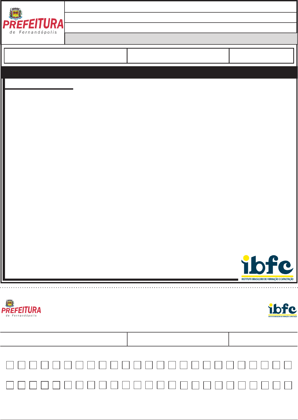 IBFC_22 NOME DO CANDIDATO ASSINATURA DO CANDIDATO RG DO CANDIDATO PREFEITURA MUNICIPAL DE FERNANDÓPOLIS EDITAL Nº 01/2015 - GERAL NÍVEL SUPERIOR ENGENHEIRO ELETRICISTA DESTAQUE AQUI GABARITO DO CANDIDATO - RASCUNHO . , pager ou similares. INSTRUÇÕES GERAIS LEIA COM ATENÇÃO AS INSTRUÇÕES ABAIXO numeradas sequencialmente, contendo 50 (cinquenta) questões correspondentes às seguintes disciplinas: Língua Portuguesa Lei orgânica do Município de Fernandópolis (05 questões) e que se seu nome e n de respostas. Se houver erro, notifique o fiscal. Assine e preencha o cartão de respos das questões estão corretas. Caso observe qualquer erro, notifique prova. Reserve os 20 (vinte) minutos finais para marcar o cartão de O candidato só poderá retirar-s O caderno de questões será publicado no site do ibfc, no prazo o espaço correspondente à letra a ser assinalada, conforme o exemplo que houver falta de nitidez e/ou marcação de mais de uma alternativa. rasurado ou manchado. Exceto sua assinatura, nada deve ser escrito ou reg de respostas e este caderno. As observações ou marcações registradas , pager ou similares Boa Prova! I. Nesta prova, você encontrará 06 (seis) páginas (10 questões), Raciocínio Lógico e Matemático (10 questões), História de Fernandópolis (05 questões), Conhecimentos específicos (20 questões). II. Verifi úmero de inscrição estão corretos no cartão III. tas nos locais indicados, com caneta azul ou preta. IV. Verifique se a impressão, a paginação e a numeração o fiscal. V. Você dispõe de 04 (quatro) horas para fazer esta respostas. VI. e do setor de prova 01 (uma) hora após seu início. VII. O candidato não poderá levar o caderno de questões. recursal contra gabarito. VIII. Marque o cartão de respostas cobrindo fortemente no próprio cartão de respostas. IX. A leitora óptica não registrará as respostas em X. O cartão de respostas não pode ser dobrado, amassado, istrado fora dos locais destinados às respostas. XI. Ao terminar a prova, entregue ao fiscal o cartão no caderno não serão levadas em consideração. XII. É terminantemente proibido o uso de telefone celular . Nome: Assinatura do Candidato: Inscrição: 1 2 3 4 5 6 31 7 32 8 33 9 34 10 35 11 36 12 12 37 13 38 14 39 15 40 16 41 17 42 18 43 19 44 20 45 21 21 46 47 22 23 48 49 24 24 50 25 25 26 2727 2828 2929 30 www.pciconcursos.com.br RASCUNHO www.pciconcursos.com.br 1IBFC_22 LÍNGUA PORTUGUESA Texto Sobre a Escrita... (Clarice Lispector) Meu Deus do céu, não tenho nada a dizer. O som de minha máquina é macio. Que é que eu posso escrever? Como recomeçar a anotar frases? A palavra é o meu meio de comunicação. Eu só poderia amá-la. Eu jogo com elas como se lançam dados: acaso e fatalidade. A palavra é tão forte que atravessa a barreira do som. Cada palavra é uma ideia. Cada palavra materializa o espírito. Quanto mais palavras eu conheço, mais sou capaz de pensar o meu sentimento. Devemos modelar nossas palavras até se tornarem o mais fino invólucro dos nossos pensamentos. Sempre achei que o traço de um escultor é identificável por uma extrema simplicidade de linhas. Todas as palavras que digo - é por esconderem outras palavras. Qual é mesmo a palav ra secreta? Não sei é porque a ouso? Não sei porque não ouso dizê-la? Sinto que existe uma palavra, talvez unicamente uma, que não pode e não deve ser pronunciada. Parece-me que todo o resto não é proibido. Mas acontece que eu quero é exatamente me unir a essa palavra proibida. Ou será? Se eu encontrar essa palavra, só a direi em boca fechada, para mim mesma, senão corro o risco de virar alma perdida por toda a eternidade. Os que inventaram o Velho Testamento sabiam que existia uma fruta proibida. As palavras é que me impedem de dizer a verdade. Simplesmente não há palavras. O que não sei dizer é mais importante do que o que eu digo. Acho que o som da música é imprescindível para o ser humano e que o uso da palavra falada e escrita são como a música, duas coisas das mais altas que nos elevam do reino dos macacos, do reino animal, e mineral e vegetal também. Sim, mas é a sorte às vezes. Sempre quis atingir através da palavra alguma coisa que fosse ao mesmo tempo sem moeda e que fosse e transmitisse tranquilidade ou simplesmente a verdade mais profunda existente no ser humano e nas coisas. Cada vez mais eu escrevo com menos palavras. Meu livro melhor acontecerá quando eu de todo não escrever. Eu tenho uma falta de assunto essencial. Todo homem tem sina obscura de pensamento que pode ser o de um crepúsculo e pode ser uma aurora. Simplesmente as palavras do homem. 1) Clarice Lispector , em sua crônica, propõe-nos uma reflexão cujo teor central é demonstrar a relação conflitante entre as palavras, que chega a ser paradoxal, excludente. Tal relação está MELHOR representada em: a) “Que é que eu posso escrever? Como recomeçar a anotar frases? “ (1º§) b) “Meu livro melhor acontecerá quando eu de todo não escrever.” (7º§) c) “Sinto que existe uma palavra, talvez unicamente uma, que não pode e não deve ser pronunciada.” (4º§) d) “Os que inventaram o Velho Testamento sabiam que existia uma fruta proibida.” (4º§) 2) Na frase “O som de minha máquina é macio.” (1º§), evidencia-se a seguinte figura de estilo: a) Metáfora b) Metonímia c) Sinestesia d) Sinédoque 3) Apesar da densidade de suas reflexões, é possível afirmar que Clarice Lispector utiliza-se de alguns recursos linguísticos que tornam a crônica mais palatável ao leitor. Dessa forma, assinale a opção em que NÃO apareça um desses recursos: a) Predomínio de linguagem informal b) Primeira pessoa gramatical c) Analogias d) Questionamentos 4) Em “Os que inventaram o Velho Testamento sabiam que existia uma fruta proibida. “ (4º§), a palavra em destaque tem sua classificação morfológica corretamente indicada em: a) artigo definido b) pronome oblíquo c) prepos