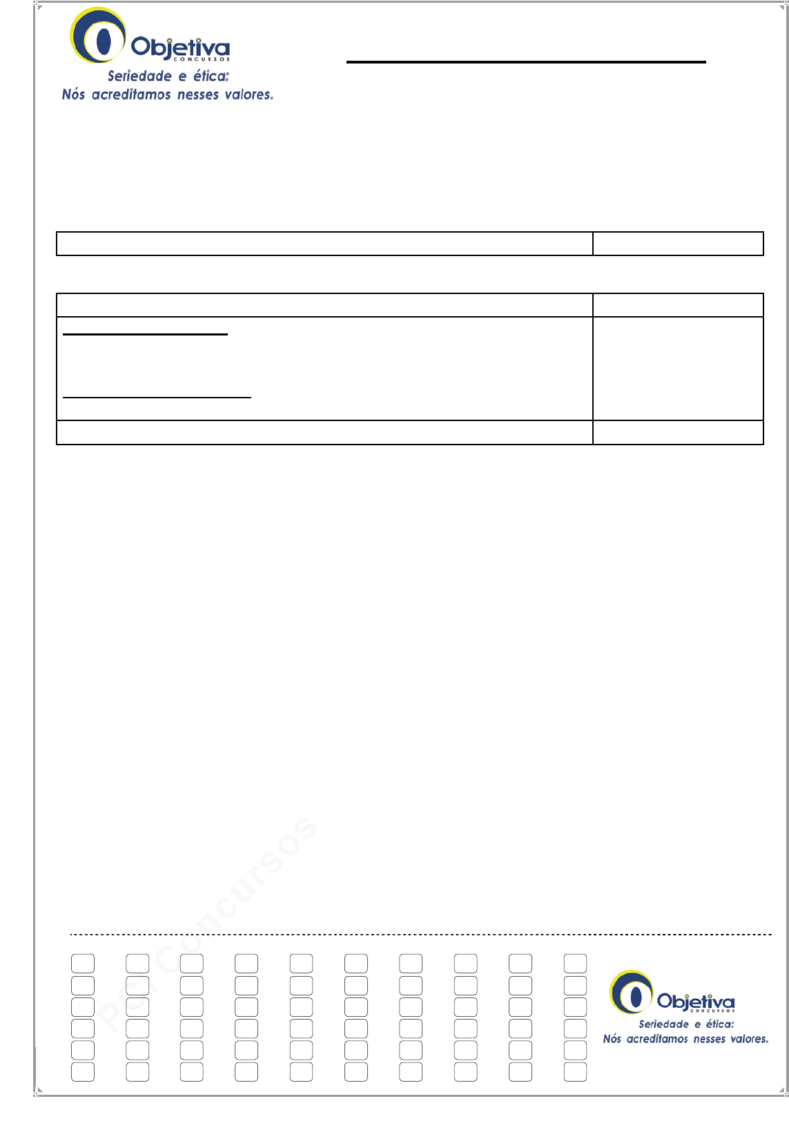 pcimarkpci MDAwMDowMDAwOjAwMDA6MDAwMDowMDAwOmZmZmY6YWFmNzoyYTU1:TW9uLCAxNCBPY3QgMjAxOSAxMTozNzo1MyAtMDMwMA== Concurso Público Código: 818 ASSISTENTE DE INFORMÁTICA Escreva seu nome e número de inscrição de forma legível nos locais indicados: Nome do(a) Candidato(a) Nº de inscrição Este caderno de questões está assim constituído: DISCIPLINAS Nº QUESTÕES Conhecimentos Básicos: Língua Portuguesa Matemática Atualidades Conhecimentos Específicos: Legislação e Conhecimentos Específicos 20 40 Total de questões 60 INSTRUÇÕES: • Confira devidamente o material (CARTÃO DE RESPOSTAS e CADERNO DE QUESTÕES); se houver falha, solicite a substituição ao fiscal. • Após conferir seus dados no cartão de respostas (NOME, Nº da INSCRIÇÃO e CARGO), assine no local indicado. • O CARTÃO DE RESPOSTAS é o único documento de correção, devendo ser preenchido com bastante atenção, à caneta esferográfica, azul ou preta, ponta grossa, marcando uma única alternativa em cada questão. • Verifique no cartão de respostas as instruções para preenchimento. Não rasure, não amasse nem dobre o CARTÃO DE RESPOSTAS; evite usar borracha. É vedada a substituição do CARTÃO DE RESPOSTAS decorrente de erro cometido por candidato. • Se o CARTÃO DE RESPOSTAS contiver maior número de alternativas e/ou de questões, preencha apenas as correspondentes à sua prova; as demais ficam em branco. • Durante a realização da prova, não é permitida a comunicação entre candidatos nem a utilização de máquina calculadora e/ou similares, livros, anotações, réguas de cálculo, impressos ou qualquer outro material de consulta. • O tempo de duração da prova objetiva será de até 4 horas, incluído o tempo para preenchimento do cartão de respostas. O candidato somente poderá levar consigo seu caderno de provas após uma hora contada do efetivo início das provas. Ao candidato que sair antes de uma hora contada do efetivo início das provas, será permitido copiar seu cartão de respostas, para conferência com o gabarito oficial. • Ao final dos trabalhos, DEVOLVA ao Fiscal da sala, o CARTÃO DE RESPOSTAS devidamente preenchido e assinado. • A parte destacável no final desta capa, que serve para copiar as suas respostas, somente poderá ser destacada no ato da entrega do material na mesa do fiscal. • Os três últimos candidatos de cada sala de prova deverão permanecer no recinto, a fim de acompanhar os fiscais até a coordenação para o lacre dos envelopes, quando, então, poderão retirar-se do local, simultaneamente, após concluído. • Direitos autorais reservados à Objetiva Concursos Ltda. Proibida a reprodução, ainda que parcial, sem autorização prévia. (dobre e destaque esta parte para copiar suas respostas) 01 02 03 04 05 06 07 08 09 10 11 12 13 14 15 16 17 18 19 20 21 22 23 24 25 26 27 28 29 30 31 32 33 34 35 36 37 38 39 40 41 42 43 44 45 46 47 48 49 50 51 52 53 54 55 56 57 58 59 60 OBJETIVA CONCURSOS LTDA. - (51) 3335.3370 - www.objetivas.com.br pcimarkpci MDAwMDowMDAwOjAwMDA6MDAwMDowMDAwOmZmZmY6YWFmNzoyYTU1:TW9uLCAxNCBPY3QgMjAxOSAxMTozNzo1MyAtMDMwMA== 1 www.objetivas.com.br CONHECIMENTOS BÁSICOS Língua Portuguesa Até a minha adolescência, toda véspera de prova de matemática era um pesadelo. Perdia o sono, tinha dores no peito, recusava qualquer atividade que não fosse estudar equações e transformava a vida da minha família em um inferno. Só de pensar que teria que interagir com números sem ajuda de ninguém acelerava meu coração, minhas mãos tremiam e suava frio. Tinha colocado na cabeça que não era uma pessoa matemática e ponto. Minha praia eram as letras, interpretação, literatura, idiomas, história – números só se fossem romanos, ________, apesar de serem números, continuavam sendo letras. Acreditava que meu cérebro não era capaz de ler algarismos. Mas minhas notas mostravam o contrário, meu cérebro conseguia decodificá-los. Na época, meus pais achavam que esse “auê” era apenas exagero, nem imaginavam que matemática pudesse doer. E dói. Pesquisadores da Universidade de Chicago, nos Estados Unidos, comprovaram que conexões neurais relacionadas à dor são ativadas quando pensamos em números. Se eu fizesse parte dos voluntários da pesquisa, provavelmente seria diagnosticada com o que eles chamam de HMA (High Math Anxiety), ansiedade matemática elevada. Nas horas que antecediam a prova, minha mãe dizia que, se eu estudasse e me concentrasse naquelas equações e teoremas, o pavor passaria. O conselho estava certo: os pesquisadores descobriram que os sentimentos de apreensão, pânico e tensão acontecem quando cogitamos resolver os problemas matemáticos, não quando, de fato, calculamos. No momento em que sentamos a bunda na cadeira para determinar ângulos, catetos ou os valores de x, y ou z, nosso cérebro se ocupa e não sentimos mais os efeitos da ansiedade. Os cientistas também explicam o porquê de pessoas avessas aos números continuarem sempre com o estigma de pessoas “não matemáticas”. Além do bloqueio emocional, isso ocorre _________ fugimos de todas as situações em que precisamos calcular – colamos na escola, passamos a conta do bar para um amigo, contratamos um contador para fazer nosso imposto de renda – esses escapes impedem que nossas habilidades numéricas melhorem e que encaremos o medo de números. http://super.abril.com.br/ciencia/... - adaptado. 1) Assinalar a alternativa que preenche as lacunas do texto CORRETAMENTE: a) porque - porque b) porque - porquê c) por que - porque d) por quê - por que e) porquê - por quê 2) Em relação ao texto, analisar a sentença abaixo: Alguns dos motivos para as pessoas continuarem a serem consideradas não matemáticas são: colar na escola, passar a conta do bar para um amigo e contratar um contador para fazer o imposto de renda, e isso impede o desenvolvimento das habilidades numéricas (1ª parte). Segundo pesquisa realizada
