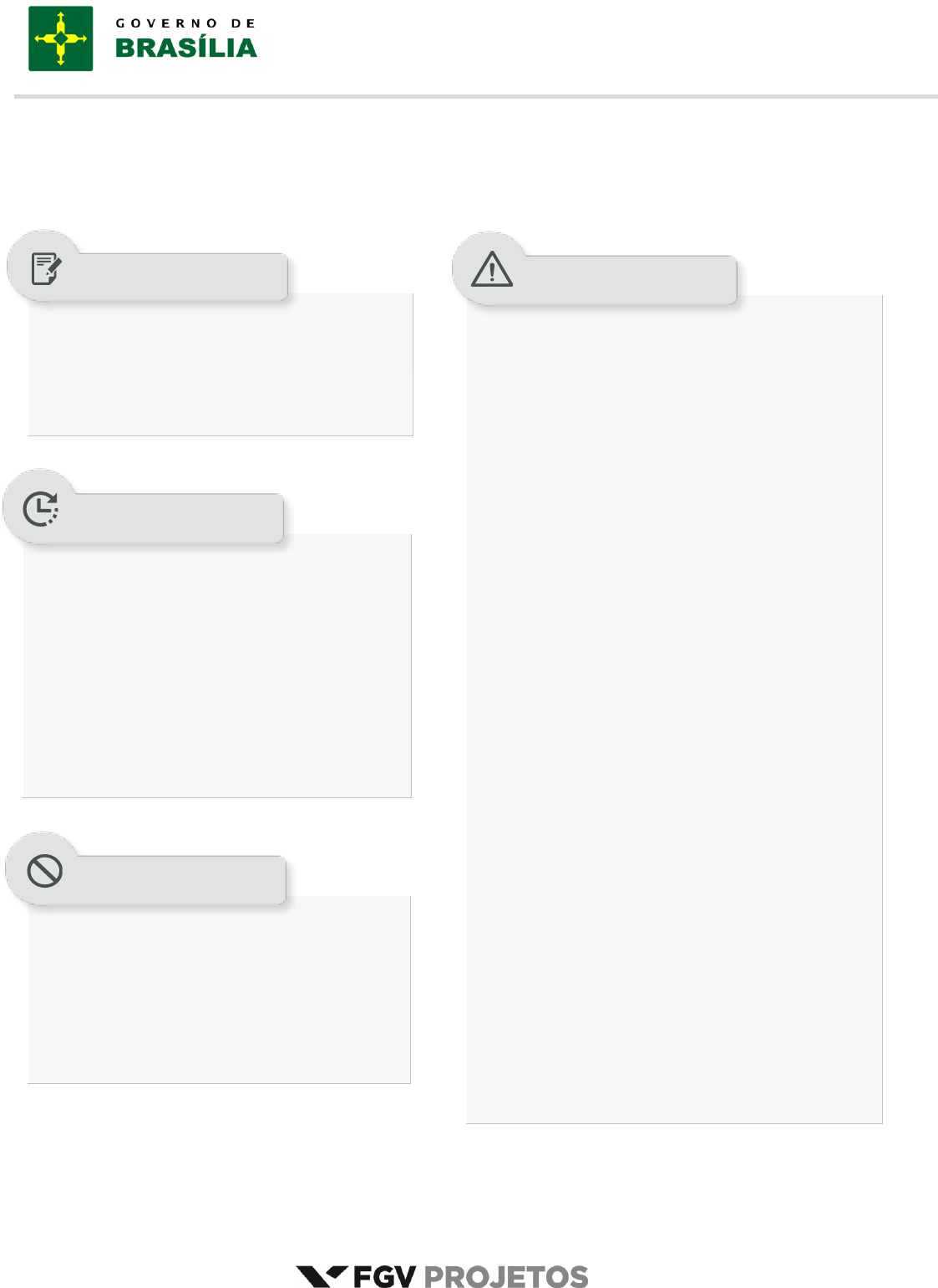 www.pciconcursos.com.br SECRETARIA DE ESTADO DE POLÍTICAS PARA CRIANÇAS, ADOLESCENTES E JUVENTUDE PROCESSO SELETIVO 2015 TARDE CTDF – Nível Médio completo CONSELHEIRO TUTELAR DO DISTRITO FEDERAL Tipo 1 – BRANCA Além deste caderno de prova, contendo sessenta questões objetivas, você receberá do fiscal de sala: uma folha destinada às respostas das questões objetivas; As questões objetivas têm cinco alternativas de resposta (A, B, C, D, E) e somente uma delas está correta; Verifique se seu caderno está completo, sem repetição de questões ou falhas. Caso contrário, notifique imediatamente o fiscal da sala, para que sejam tomadas as devidas providências; Confira seus dados pessoais, especialmente nome, número de inscrição e documento de identidade e leia atentamente as instruções para preencher a folha de respostas; Use somente caneta esferográfica, em material transparente, com tinta preta ou azul; Assine seu nome apenas nos espaços reservados; Marque na folha de respostas o campo relativo à confirmação do tipo/cor de prova, conforme o caderno recebido; O preenchimento das respostas da prova objetiva é de sua responsabilidade e não será permitida a troca de folha de respostas em caso de erro; Reserve tempo suficiente para o preenchimento de suas respostas. Para fins de avaliação, serão levadas em consideração apenas as marcações realizadas na folha de respostas da prova objetiva, não sendo permitido anotar informações relativas às respostas em qualquer outro meio que não seja o caderno de provas; A FGV coletará as impressões digitais dos candidatos na folha de respostas; Os candidatos serão submetidos ao sistema de detecção de metais quando do ingresso e da saída de sanitários durante a realização das provas. 4h 30min é o tempo que você dispõe para a realização da prova, já incluído o tempo para a marcação da folha de respostas da prova objetiva; 1h 00min após o início da prova você poderá se retirar da sala, sem levar o caderno de provas; 1h 00min antes do término do período de prova você poderá se retirar da sala levando o caderno de prova. Qualquer tipo de comunicação entre os candidatos durante a aplicação da prova; Levantar da cadeira sem autorização do fiscal de sala; Usar o sanitário ao término da prova, após deixar a sala. SUA PROVA TEMPO NÃO SERÁ PERMITIDO INFORMAÇÕES GERAIS www.pciconcursos.com.br www.pciconcursos.com.br Secretaria de Estado de Políticas para Crianças, Adolescentes e Juventude FGV – Projetos Conselheiro Tutelar do Distrito Federal Tipo 1 – Cor BRANCA – Página 3 | 1 O Conselheiro Tutelar, no exercício de suas atribuições, deve se pautar pelas seguintes normas e princípios, com uma única exceção. Assinale-a. (A) Intervenção precoce, logo que a situação de perigo seja conhecida. (B) Intervenção tutelar que incentive a responsabilidade parental com a criança e o adolescente. (C) Proteção parcial e secundária dos direitos da criança e do adolescente. (D) Respeito à intimidade e à imagem da criança e do adolescente. (E) Proporcionalidade e atualidade na intervenção tutelar. 2 Segundo a Resolução nº 170/2014 do CONANDA, é dever do membro do Conselho Tutelar: (A) efetuar registro de ocorrência dos crimes praticados contra a criança e o adolescente. (B) prestar as informações solicitadas pelas autoridades públicas. (C) manifestar-se em seus pronunciamentos administrativos, sem a necessidade de fundamentação. (D) elaborar suas manifestações, sem observar os prazos regimentais. (E) oferecer atendimento psicológico aos interessados, na sede do Conselho Tutelar. 3 Com relação às decisões do Conselho Tutelar, segundo a Resolução nº 170/2014 do CONANDA, é correto afirmar que (A) as decisões são individuais. (B) as decisões deverão ser comunicadas aos interessados por qualquer meio. (C) as decisões serão sempre publicadas. (D) as medidas emergenciais tomadas durante os plantões deverão ser submetidas ao colegiado no primeiro dia útil subsequente. (E) os registros das decisões do Conselho Tutelar são de acesso irrestrito para toda a população. 4 Sobre as condutas de um membro do Conselho Tutelar, assinale a afirmativa correta. (A) Ele pode exercer outra atividade no horário fixado na lei do Distrito Federal para o funcionamento do Conselho Tutelar. (B) Ele pode se ausentar da sede do Conselho Tutelar durante o expediente, salvo quando em diligências ou por necessidade do serviço. (C) Ele deve proceder de forma desidiosa. (D) Ele pode fazer uso do Conselho Tutelar para o exercício de atividade político-partidária. (E) Ele poderá se abster de pronunciar publicamente acerca dos casos atendidos pelo órgão. 5 Assinale a opção que indica a hipótese em que um membro do Conselho Tutelar será declarado impedido de analisar um caso. (A) Conhecer os envolvidos no caso. (B) Apresentar motivos de foro íntimo. (C) For colega de qualquer dos interessados. (D) Envolver um conhecido de sua esposa na situação atendida. (E) Tiver interesse na solução do caso em favor de um dos interessados. 6 Segundo a Lei nº 5.294/2014, o Conselho Tutelar, em todos os casos em que atuar, deverá observar imediatamente os seguintes aspectos, com uma única exceção. Assinale-a. (A) A localização da família de origem. (B) A existência de antecedentes infracionais. (C) O estado de nutrição da criança ou do adolescente e sua vacinação obrigatória. (D) O atendimento pelos sistemas de saúde, de educação e de assistência social. (E) A inscrição no registro civil de nascimento com o nome de ambos os genitores. 7 É da atribuição do Conselheiro Tutelar a aplicação das medidas protetivas a seguir, à exceção de uma. Assinale-a. (A) Medida de prestação de serviços à comunidade. (B) Medida de encaminhamento aos pais ou ao responsável mediante termo de responsabilidade. (C) Medida de acolhimento institucional. (D) Medida de advert