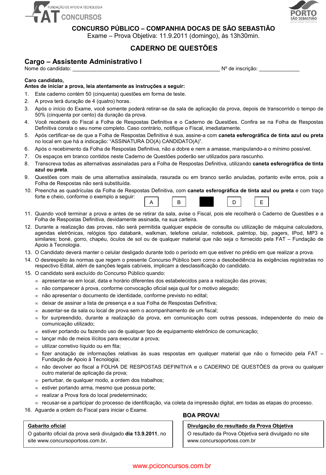 O gabarito oficial da prova será divulgado dia 13.9.2011 , no