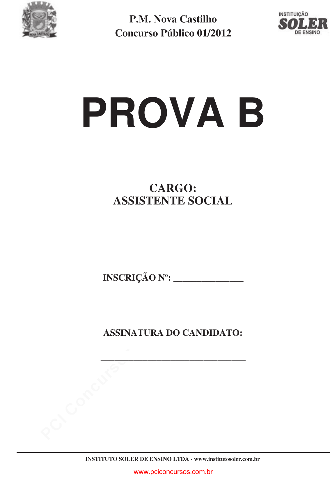 pcimarkpci MDAwMDowMDAwOjAwMDA6MDAwMDowMDAwOmZmZmY6MzZlOTpjMjU5:U2F0LCAxOCBTZXAgMjAyMSAwMzoxOToyMiAtMDMwMA== P.M. Nova Castilho Concurso Público 01/2012 CARGO: INSCRIÇÃO Nº: _______________ ASSINATURA DO CANDIDATO: _______________________________ PROVA B ASSISTENTE SOCIAL INSTITUTO SOLER DE ENSINO LTDA - www.institutosoler.com.br www.pciconcursos.com.br pcimarkpci MDAwMDowMDAwOjAwMDA6MDAwMDowMDAwOmZmZmY6MzZlOTpjMjU5:U2F0LCAxOCBTZXAgMjAyMSAwMzoxOToyMiAtMDMwMA== www.pciconcursos.com.br pcimarkpci MDAwMDowMDAwOjAwMDA6MDAwMDowMDAwOmZmZmY6MzZlOTpjMjU5:U2F0LCAxOCBTZXAgMjAyMSAwMzoxOToyMiAtMDMwMA== 1 PROVA B Cargo : Assistente Social Língua Portuguesa Texto para as questões 01 a 04 Em homenagem ao título mundial conquistado há 30 anos, o Flamengo lançou sua nova camisa. Com visual moderno e estilizado, o modelo traz um símbolo no peito com a inscrição “Campeão do Mundo. Tokio, 13 de dezembro 1981”. Mas houve quem prestasse atenção apenas no erro da grafia de “Tokio”. Segundo a norma culta, na qual se basearam mídia e as zombarias da Internet, o certo seria “Tóquio”. O pequeno deslize, no entanto, não parece tão terrível assim perto da grafia de “Nova York”, por exemplo, que alguém poderia objetar ser ou “Nova Iorque” ou “New York” (em inglês). Mas o pior estava por vir. A empresa que fabrica os uniformes alegou que a camisa fazia parte de uma coleção comemorativa “poliglota”, e que as primeiras versões da coleção seriam a espanhola (Tokio), a inglês (Tokyo), a japonês e, só depois, a brasileira (“Tóquio”). Ainda que o “poliglota” seja relativo a somente quatro países, por que nas quatro edições da camisa a data e o nome do título continuaram em português? (Revista Língua Portuguesa ano 5, n°67, maio de 2011) 01. Subentende-se pelo texto que: a) A nova camisa do Flamengo acabou despertando, no brasileiro, o espírito normativista da língua portuguesa. b) A nova camisa do Flamengo causou polêmica, mas o brasileiro levou em consideração, pois a camisa fazia parte de uma comemoração poliglota. c) A nova camisa agradou a torcida do Flamengo pelo fato de ela estar disseminando a língua portuguesa para outros países. d) A repercussão sobre o “erro” de grafia mostrou que o brasileiro não entende nada das regras normativas da língua portuguesa. 02. Infere-se a respeito do texto que: a) A empresa que fabricou as camisetas levou em conta a grafia de “Nova York”. b) A forma “Tokio” não é considerada um erro, pois é o termo usado em inglês, porém a gramática normativa também leva em consideração a grafia de “Tóquio”. c) Palavras como “quilômetro”, “Nova Iorque” e “Tóquio” estão grafadas erroneamente de acordo com a gramática normativa. d) O brasileiro está se mostrando um purista da língua portuguesa ao manifestar-se contra grafias como “Tóquio”. 03. O sujeito da frase “Em homenagem ao título mundial conquistado há 30 anos” é: a) simples. b) composto. c) indeterminado. d) inexistente. 04. As palavras: I. TÍTULO e TERRÍVEL são acentuadas pela mesma regra II. PORTUGUÊS e INGLÊS apresentam encontros consonantais III. PIOR e COLEÇÃO apresentam encontro vocálico IV. MÍDIA e TÓQUIO são acentuadas pela mesma regra. a) Estão corretas as afirmativas I e II apenas. b) Estão corretas as afirmativas I, II, III apenas. c) Estão corretas as afirmativas II, III e IV. d) Estão corretas as afirmativas I, II, III e IV. O texto seguinte refere-se às questões 05 a 08 Neologismo Verde “Não é hora de ser pragmático, é hora de ser sonhático”, declarou a ex-senadora Marina Silva durante seu discurso de desfiliação do Partido Verde (PV), realizado no começo de julho. (...) Esse meio-termo, que o discurso político muitas vezes exige para safar-se de contradições, encontra-se exemplarmente desenvolvido pelo neologismo de Marina. Porém, quem acompanha os altos e baixos da política, sabe que a incursão da ex-senadora no terreno das palavras inéditas não é bem uma novidade. Rogério Magri, ministro dos transportes na era Collor, é até hoje lembrado pelo seu “imexível”. O orador Rui Barbosa, por sua vez, é considerado o inventor da palavra “egolatria”, hoje já devidamente dicionarizada. Além disso, neologismos como “delubizar”, “mensalão”, “valerioduto”, entre dezenas de outras que inundam o noticiário, são prova cabal de que o mundo da política está sempre demandando novos termos que deem conta de seus escândalos e desdobramentos. (Revista Língua Portuguesa, ano 6, n°70, agosto, 2011) 05. Pelas considerações trazidas no texto subentende-se que: a) A ex-senadora Marina Silva fez uma brincadeira com a palavra “sonhador”, em contraposição à palavra “pragmático”, criando um termo que seria a síntese de ambas. b) A ex-senadora Marina Silva cometeu um disparate ao igualar uma palavra à outra. c) A ex-senadora Marina Silva mesclou as duas palavras, mas sem propósitos definidos para atribuir-lhe um significado. d) A ex-senadora Marina Silva não entende nada de neologismos e deveria pensar melhor antes de dizer qualquer infâmia. 06. Assinale a alternativa correta quanto ao que se compreendeu em relação ao texto “Neologismo Verde”. a) A ex-senadora inventou essa palavra para dicionarizá-la mais tarde a exemplo de Rui Barbosa com sua palavra “egolatria”. b) O universo da política brasileira está sempre criando e se reciclando para dar conta de tantas palavras inventadas. c) Os neologismos funcionam como uma resposta de que a política brasileira necessita deveras desses termos para explicar tantos escândalos e desdobramentos. d) Os neologismos funcionam como uma maneira de enganar a população brasileira que está sempre à mercê dos políticos corruptos. 07. No que se refere ao processo de formação de palavras, está correto o que se afirma em: a) SONHÁTICO e DESFILIAÇÃO são formados por sufixaçã