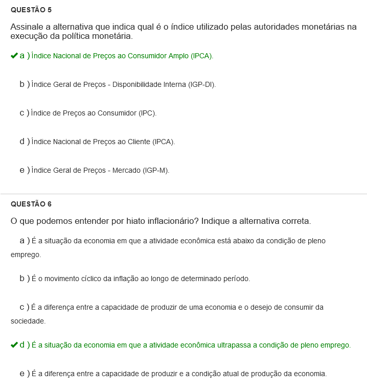 que podemos entender por hiato inflacionário? Indique a alternativa a) É a situação da economia em que a atividade econômica está abaixo da condição de pleno emprego. b) É o movimento da inflação ao longo de determinado período. c) É a diferença entre a capacidade de produzir de uma economia e o desejo de consumir da. d) É a situação da economia em que a atividade econômica ultrapassa a condição de pleno emprego. e) É a diferença entre a capacidade de produzir e a condição atual de produção da economia.