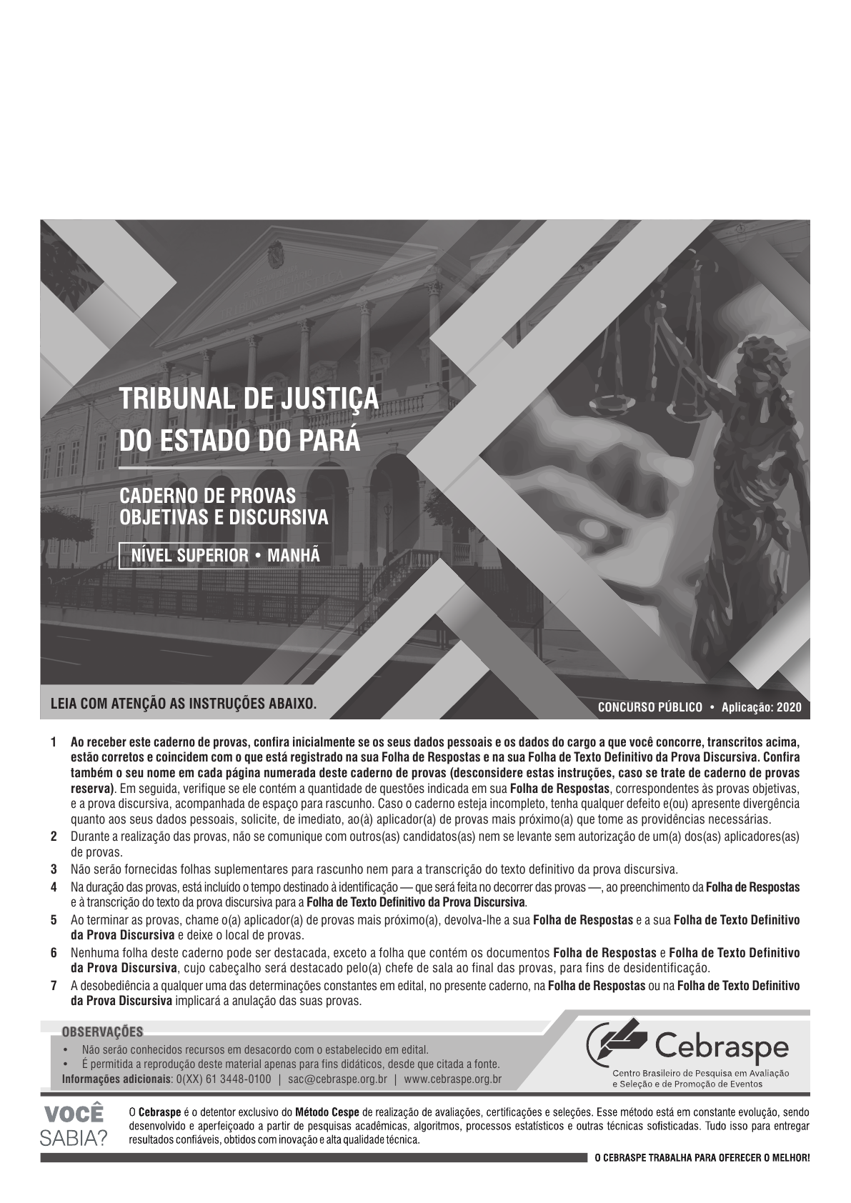 pcimarkpci MDAwMDowMDAwOjAwMDA6MDAwMDowMDAwOmZmZmY6MzZlOTpjMjU5:RnJpLCAxNyBTZXAgMjAyMSAxNjo1NDowNSAtMDMwMA== TRIBUNAL DE JUSTIÇA DO ESTADO DO PARÁ CADERNO DE PROVAS OBJETIVAS E DISCURSIVA NÍVEL SUPERIOR • MANHÃ 1 Ao receber este caderno de provas, confira inicialmente se os seus dados pessoais e os dados do cargo a que você concorre, transcritos acima, estão corretos e coincidem com o que está registrado na sua Folha de Respostas e na sua Folha de Texto Definitivo da Prova Discursiva. Confira também o seu nome em cada página numerada deste caderno de provas (desconsidere estas instruções, caso se trate de caderno de provas reserva). Em seguida, verifique se ele contém a quantidade de questões indicada em sua Folha de Respostas, correspondentes às provas objetivas, e a prova discursiva, acompanhada de espaço para rascunho. Caso o caderno esteja incompleto, tenha qualquer defeito e(ou) apresente divergência quanto aos seus dados pessoais, solicite, de imediato, ao(à) aplicador(a) de provas mais próximo(a) que tome as providências necessárias. 2 Durante a realização das provas, não se comunique com outros(as) candidatos(as) nem se levante sem autorização de um(a) dos(as) aplicadores(as) de provas. 3 Não serão fornecidas folhas suplementares para rascunho nem para a transcrição do texto definitivo da prova discursiva. 4 Na duração das provas, está incluído o tempo destinado à identificação — que será feita no decorrer das provas —, ao preenchimento da Folha de Respostas e à transcrição do texto da prova discursiva para a Folha de Texto Definitivo da Prova Discursiva. 5 Ao terminar as provas, chame o(a) aplicador(a) de provas mais próximo(a), devolva-lhe a sua Folha de Respostas e a sua Folha de Texto Definitivo da Prova Discursiva e deixe o local de provas. 6 Nenhuma folha deste caderno pode ser destacada, exceto a folha que contém os documentos Folha de Respostas e Folha de Texto Definitivo da Prova Discursiva, cujo cabeçalho será destacado pelo(a) chefe de sala ao final das provas, para fins de desidentificação. 7 A desobediência a qualquer uma das determinações constantes em edital, no presente caderno, na Folha de Respostas ou na Folha de Texto Definitivo da Prova Discursiva implicará a anulação das suas provas. CONCURSO PÚBLICO • Aplicação: 2020LEIA COM ATENÇÃO AS INSTRUÇÕES ABAIXO. • Não serão conhecidos recursos em desacordo com o estabelecido em edital. • É permitida a reprodução deste material apenas para fins didáticos, desde que citada a fonte. Informações adicionais: 0(XX) 61 3448-0100 | sac@cebraspe.org.br | www.cebraspe.org.br OBSERVAÇÕES pcimarkpci MDAwMDowMDAwOjAwMDA6MDAwMDowMDAwOmZmZmY6MzZlOTpjMjU5:RnJpLCAxNyBTZXAgMjAyMSAxNjo1NDowNSAtMDMwMA== ||Matriz_507_TJPACG3_Pag 5N875678|| CEBRASPE – TJPA – Aplicação: 2020 • Nas questões a seguir, marque, para cada uma, a única opção correta, de acordo com o respectivo comando. Para as devidas marcações, use a Folha de Respostas, único documento válido para a correção das suas provas. • Caso haja opção(ões) constituída(s) pela estrutura Situação hipotética: ... seguida de Assertiva: ..., os dados apresentados como situação hipotética devem ser considerados premissa(s) para o julgamento da assertiva proposta. • Eventuais espaços livres — identificados ou não pela expressão “Espaço livre” — que constarem deste caderno de provas poderão ser utilizados para rascunhos. CONHECIMENTOS GERAIS Texto CG1A1-I “Família, família/ vive junto todo dia/ nunca perde1 essa mania” — os versos da canção Família, composta por Arnaldo Antunes e Tony Belotto na década de 80 do século passado, no Brasil, parece que já não traduzem mais a4 realidade dos arranjos familiares. Observa-se que a solidez dos lugares ocupados por cada uma das pessoas, nos moldes da família nuclear, não se adéqua à realidade social do momento,7 em que as relações são caracterizadas por sua dinamicidade e pluralidade. De acordo com o médico e psicanalista Jurandir Freire Costa, “família nem é mais um modo de transmissão do10 patrimônio material; nem de perpetuação de nomes de linhagens; nem da tradição moral ou religiosa; tampouco é a instituição que garante a estabilidade do lugar em que são13 educadas as crianças”. Então, o que é a família? Como defini-la, considerando-se que uma de suas marcas na pós-modernidade16 é justamente a falta de definição? Para a cientista social e política Elizabete Dória Bilac, a variabilidade histórica da instituição família desafia qualquer conceito geral de família.19 A centralidade assumida pelos interesses individuais no mundo contemporâneo é um dos aspectos que influenciam a singularidade de cada família e distinguem os propósitos que22 justificam a escolha de duas pessoas ou mais viverem juntas, compartilhando regras, necessidades e obrigações. Se não é fácil definir a família, é legítimo o esforço de tentar decifrar25 quem é o homem pós-moderno e quais as necessidades emergentes que o impulsionam ao encontro com o outro, seja no espaço social, seja no interior da família, produzindo28 significados e razões que o lançam na busca de realização. Segundo o filósofo francês Dany-Robert Dufour, a pós-modernidade produz um sujeito não engendrado, o que31 significa um sujeito que se vê na posição de não dever mais nada à geração precedente. Trata-se de uma condição que comporta riscos, pois, segundo Dufour, desaparece o motivo34 geracional. No que tange à família, a consequência é o surgimento de relações pautadas em trocas reais e carentes de valores simbólicos que se contraponham à lógica do consumo.37 Assim, assiste-se a uma ruptura na ordem da transmissão, o que gera indivíduos desprovidos de identidade sólida, condição esta que acarreta a redução de sua capacidade crítica e dificulta o40 estabelecimento de compromisso com a 