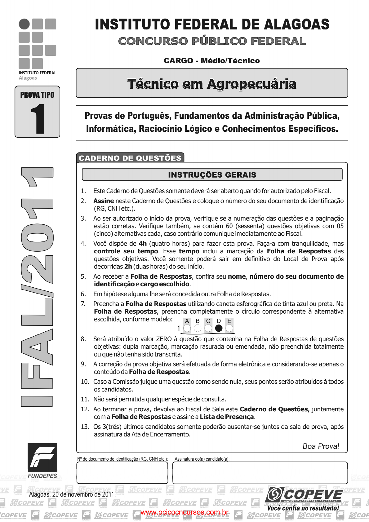 pcimarkpci MDAwMDowMDAwOjAwMDA6MDAwMDowMDAwOmZmZmY6MzZlOTpjMjU5:U2F0LCAxMSBTZXAgMjAyMSAwNzozNjozMCAtMDMwMA== www.pcicocncursos.com.br pcimarkpci MDAwMDowMDAwOjAwMDA6MDAwMDowMDAwOmZmZmY6MzZlOTpjMjU5:U2F0LCAxMSBTZXAgMjAyMSAwNzozNjozMCAtMDMwMA== Concurso IFAL 2011 Prova tipo 1 20 - NOV - 2011 Médio/Técnico – Técnico em Agropecuária 1 PORTUGUÊS As questões de 1 a 6 referem-se ao texto abaixo. A primeira vez que ouvi falar no fim do mundo, o mundo para mim não tinha nenhum sentido, ainda; de modo que não me interessava nem o seu começo nem o seu fim. Lembro-me, porém, vagamente, de umas mulheres nervosas que choravam, meio desgrenhadas, e aludiam a um cometa que andava pelo céu, responsável pelo acontecimento que elas tanto temiam. Nada disso se entendia comigo: o mundo era delas, o cometa era para elas: nós, crianças, existíamos apenas para brincar com as flores da goiabeira e as cores do tapete. Mas, uma noite, levantaram-me da cama, enrolada num lençol, e, estremunhada, levaram-me à janela para me apresentarem à força ao temível cometa. Aquilo que até então não me interessava nada, que nem vencia a preguiça dos meus olhos pareceu-me, de repente, maravilhoso. Era um pavão branco, pousado no ar, por cima dos telhados? Era uma noiva, que caminhava pela noite, sozinha, ao encontro da sua festa? Gostei muito do cometa. Devia sempre haver um cometa no céu, como há lua, sol, estrelas. Por que as pessoas andavam tão apavoradas? A mim, não me causava medo nenhum. Ora, o cometa desapareceu, aqueles que choravam enxugaram os olhos, o mundo não se acabou, talvez eu tenha ficado um pouco triste – mas que importância tem a tristeza das crianças? (MEIRELES, Cecília. Quatro vozes. Record: Rio de Janeiro, 1998, p. 73). 1.1.1.1. No primeiro parágrafo, a frase “Nada disso se entendia comigo” pode ser traduzida por: A) O espanto e o medo – provocados pelo prenúncio do fim do mundo – eram construções de imagens e sentidos dissociados do universo infantil. B) Criança não precisa entender de medo. C) O cometa era um fenômeno telúrico, distante do mundo das crianças, por isso somente deveria provocar espanto aos adultos. D) Todas as imagens associadas ao cometa antecipavam a possibilidade de fim do mundo. E) Ela era apenas uma criança. Sabia que o universo dos adultos deveria proteger a pureza, peculiar aos que não entendiam de cometa nem de medo. 2.2.2.2. Cecília Meireles diz: “Lembro-me, porém, vagamente, de umas mulheres nervosas que choravam, meio desgrenhadas, e aludiam a um cometa”. Essa lembrança A) confirma na memória da autora a inconsistência do medo das mulheres, pois a passagem do cometa era algo improvável. B) substancializa o medo das crianças diante da possibilidade do fim do mundo. C) define a forma a partir da qual o cometa passaria sobre as pessoas. D) constitui na memória da autora o prenúncio do que, para ela, suscitava a ideia de fim de mundo. E) complementa a ideia que a autora construiu do que seria a realidade no ponto de vista das crianças. 3.3.3.3. Na última frase do 2º parágrafo “A mim, não me causava medo nenhum.” a vírgula A) evidencia o objeto indireto pleonástico. B) evidencia o adjunto adnominal deslocado. C) foi utilizada apenas para enfatizar um termo explicativo e acessório: “a mim”. D) foi utilizada de forma indevida, já que não se separa o verbo de seu complemento. E) separa termos de mesma função sintática. 4.4.4.4. Nas correlações de significados entre o ponto de vista dos adultos e das crianças, pode-se concluir que o cometa A) estabelece nas consciências uma percepção ilusória de mundo. B) estabelece um contraste: o que é medonho e terrível para os adultos é arrefecido pelo imaginário fantástico das crianças. C) provoca uma similaridade entre as percepções das mulheres, por exemplo, e a forma como as crianças reagem diante da possibilidade de fim de mundo. D) seria apenas um ato efêmero, uma luz insignificante que vagava pela imensidão do universo. E) representa no imaginário infantil um construto simbólico totalmente associado às coisas medonhas, terríveis e catastróficas. 5.5.5.5. A construção imaginária da tragédia anunciada que poderia ser provocada a partir da passagem do cometa adquire essa perspectiva A) associada ao conflito que se estabelece entre o sentimento das mulheres e a imagem de algo maravilhoso percebida pela criança. B) nas correlações simbólicas do universo infantil. C) no ponto de vista catastrófico dos adultos. D) quando o cometa desaparece no céu. E) no momento em que o cometa se assemelha a um pavão branco ou a uma noiva que caminhava pela noite. 6.6.6.6. Considerando as regras da norma culta, o excerto no 2º parágrafo “levaram-me à janela para me apresentarem à força ao temível cometa” não admite a seguinte reescrita: A) levaram-me à janela e, à força, apresentaram-me o temível cometa. B) conduziram-me até à janela para me apresentarem, à força, o temível cometa. C) fui levada à janela para que fosse apresentado a mim, à força, o temível cometa. D) levaram-me à janela para que fosse-me apresentado, à força, o temível cometa. E) levaram-me à janela para que o temível cometa fosse apresentado a mim à força. www.pcicocncursos.com.br pcimarkpci MDAwMDowMDAwOjAwMDA6MDAwMDowMDAwOmZmZmY6MzZlOTpjMjU5:U2F0LCAxMSBTZXAgMjAyMSAwNzozNjozMCAtMDMwMA== Concurso IFAL 2011 Prova tipo 1 20 - NOV - 2011 Médio/Técnico – Técnico em Agropecuária 2 “Nunca pude entender a conversação que tive com uma senhora, há muitos anos, contava eu dezessete, ela trinta. Era noite de Natal. Havendo ajustado com um vizinho irmos à missa do galo, preferi não dormir; combinei que eu iria acordá-lo à meia-noite. A casa em que eu estava hospedado era a do escrivão Meneses, que fora casado, em primeiras núpcias, com uma de minhas primas. A segunda mulher, Conceição, e a mãe desta acolheram-me bem, quando vim de Mangara