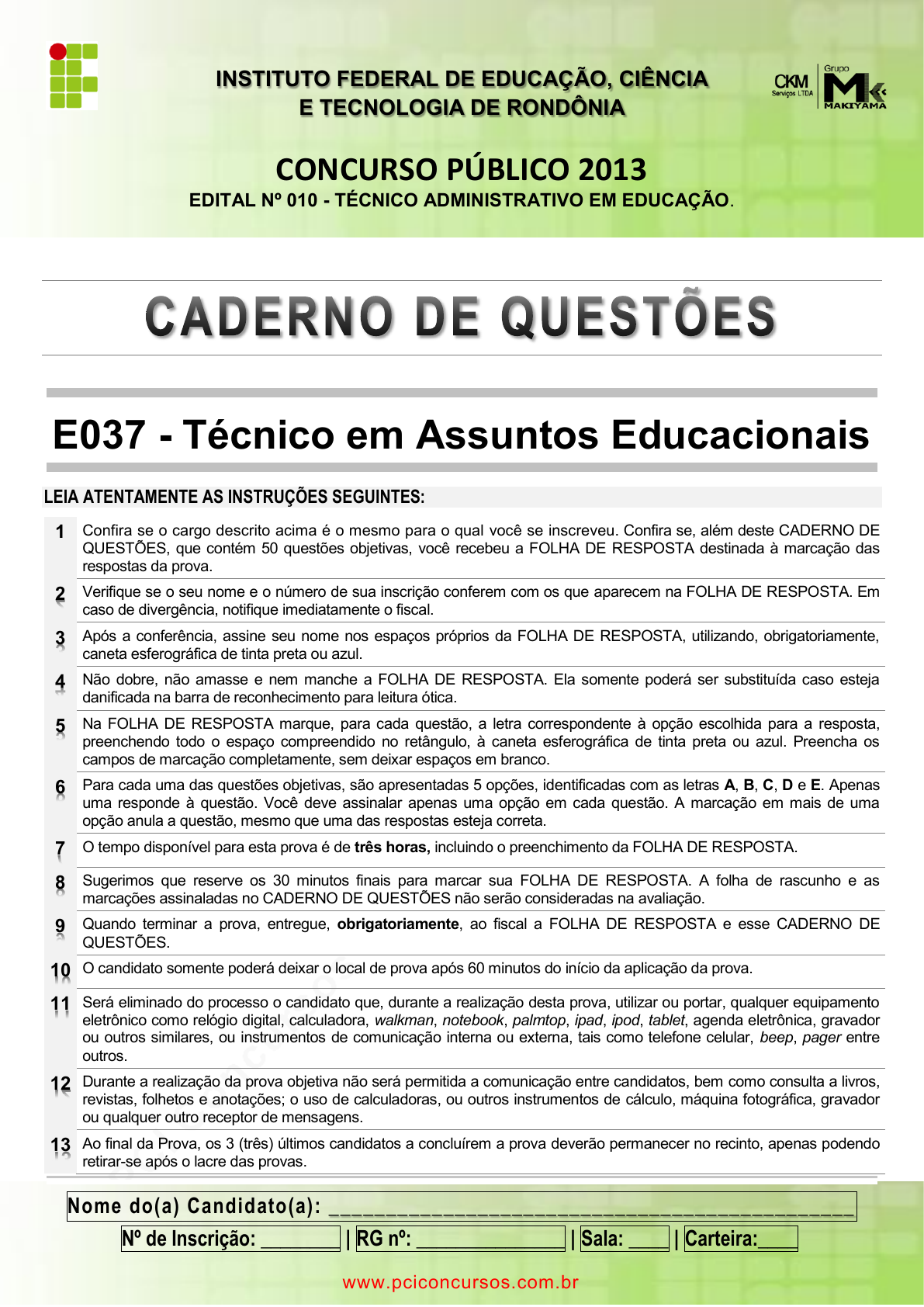 Página 10 Caderno de Questões –IFRO Edital 010 - E037 - Técnico em Assuntos Educacionais