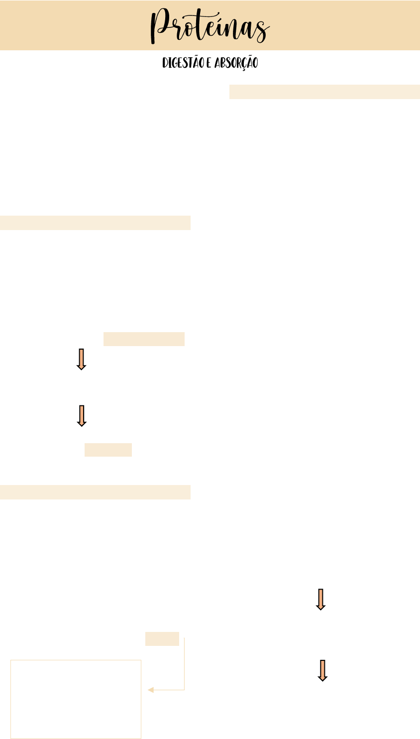 As proteínas endógenas e exógenas estão sujeitas à hidrólise por uma gama de proteases e peptidases, secretadas pelo estômago, pâncreas e pela borda em escova dos enterócitos, o que gera grande quantidade e variedade de peptídeos de tamanho médio e pequeno, assim como aminoácidos livres. Proteínas • As proteínas são polímeros de aminoácidos que se associam por ligações peptídicas • Para que ocorra a absorção dessas proteínas, essas ligações precisam ser hidrolisadas, processo catalisado por enzimas digestivas. Proteases (clivam as proteínas) Secretadas no lúmen do tubo digestivo como zimogênios (precursores inativos da enzima) Zimogênios • Primeiro zimogênio que o bolo alimentar encontra Pepsinogênio: secretado pelas células principais das glândulas gástricas → Células oxínticas das glândulas secretam HCl que acidifica o meio e ativa o pepsinogênio em sua forma catalítica, pepsina. Digestão • A digestão das proteínas tem início no estômago, pela ação da pepsina. • Apenas 10-15% das proteínas são digeridas no estômago, a maior digestão ocorre no intestino delgado (duodeno) → O quimo que vem do estômago é misturado com secreções produzidas pela mucosa intestinal, bile, suco pancreático → Todas essas secreções contêm muitos íons bicarbonatos que neutralizam o ácido vindo do estômago = inativa pepsina → No suco pancreático também contém outras proteases secretadas como zimogênios - Tripsinogênio - Quimiotripsinogênio - Procarboxipeptidase - Proelastase → Uma vez no lúmen do duodeno, esses zimogênios precisam ser ativados: Enteroquinase presente na borda em escova dos enterócitos que ativam esses zimogênios Hidrolisa tripsinogênio, gerando a forma ativa tripsina Hidrolisa os outros zimogênios Endopeptidase: hidrolisa apenas ligações peptídicas internas, gerando como produtos da degradação pequenos peptídeos → Além das proteases pancreáticas, existem proteases na borda em escova da mucosa intestinal Peptidases (exo) = amino peptidase → ação sobre a quebra das ligações peptídicas nos aminoácidos da posição aminoterminal Absorção • Oligopeptídeos (di e tripeptídeos) são absorvidos → Na membrana dos enterócitos existem transportadores Pept1 que são responsáveis por transportar di e tri acoplados ao transporte de íons hidrogênios para dentro dos enterócitos • A maioria dos dipeptídeos e tripeptídeos absorvidos são hidrolisados por peptidases intracelulares (presentes nos enterócitos) liberando aminoácidos livres, deixando os enterócitos através de transporte da membrana basolateral • Após isso, são jogados para a circulação para serem utilizados por outros tecidos