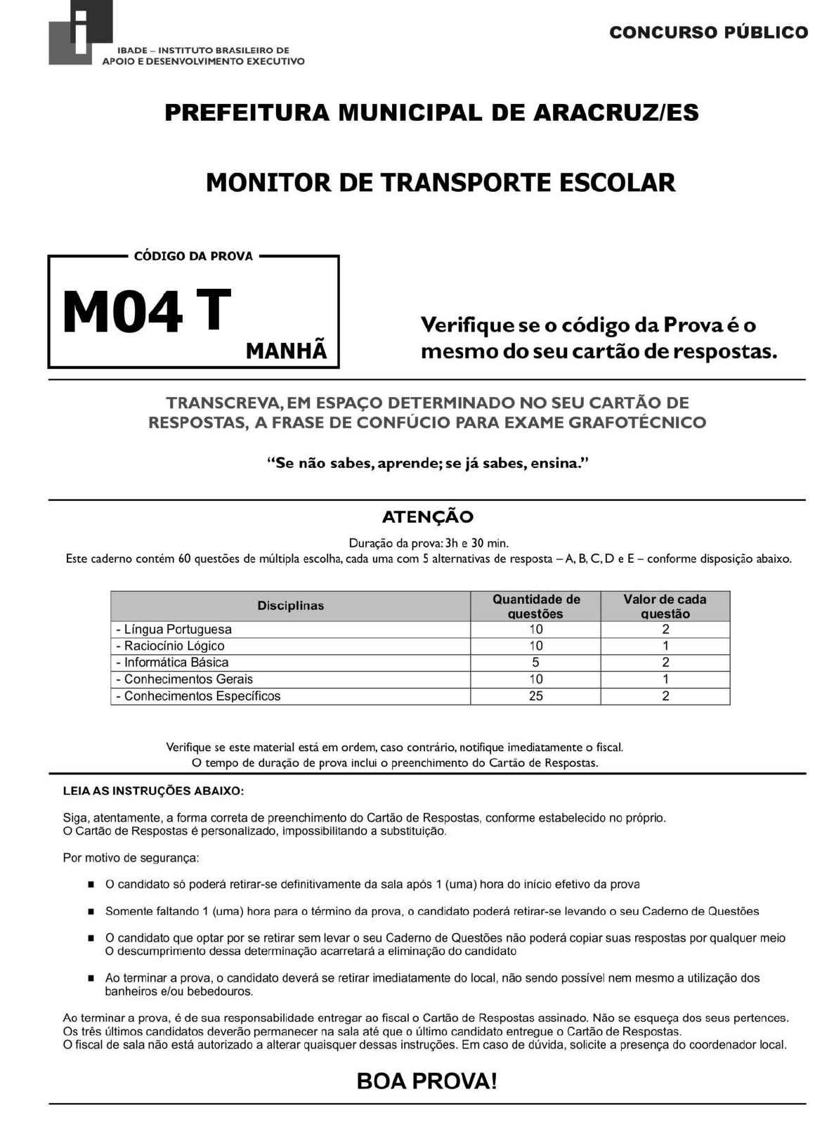 pcimarkpci MDAwMDowMDAwOjAwMDA6MDAwMDowMDAwOmZmZmY6MzZlOTpjMjU5:VHVlLCAxNCBTZXAgMjAyMSAyMjoxNTo0NiAtMDMwMA== T pcimarkpci MDAwMDowMDAwOjAwMDA6MDAwMDowMDAwOmZmZmY6MzZlOTpjMjU5:VHVlLCAxNCBTZXAgMjAyMSAyMjoxNTo0NiAtMDMwMA== 02 LÍNGUA PORTUGUESA Questão 01 A) B) C) D) E) Questão 02 A) B) C) D) E) Questão 03 A) B) C) D) E) Questão 04 A) B) C) D) E) pcimarkpci MDAwMDowMDAwOjAwMDA6MDAwMDowMDAwOmZmZmY6MzZlOTpjMjU5:VHVlLCAxNCBTZXAgMjAyMSAyMjoxNTo0NiAtMDMwMA== 03 Questão 05 A) B) C) D) E) Questão 06 A) B) C) D) E) Questão 07 A) B) C) D) E) Questão 08 A) B) C) D) E) Questão 09 A) B) C) D) E) Questão 10 A) B) C) D) E) pcimarkpci MDAwMDowMDAwOjAwMDA6MDAwMDowMDAwOmZmZmY6MzZlOTpjMjU5:VHVlLCAxNCBTZXAgMjAyMSAyMjoxNTo0NiAtMDMwMA== 04 RACIOCÍNIO LÓGICO Questão 11 A) B) C) D) E) Questão 12 A) B) C) D) E) Questão 13 A) B) C) D) E) Questão 14 A) B) C) D) E) Questão 15 A) B) C) D) E) Questão 16 A) B) C) D) E) Questão 17 A) B) C) D) E) pcimarkpci MDAwMDowMDAwOjAwMDA6MDAwMDowMDAwOmZmZmY6MzZlOTpjMjU5:VHVlLCAxNCBTZXAgMjAyMSAyMjoxNTo0NiAtMDMwMA== 05 Questão 18 A) B) C) D) E) Questão 19 A) B) C) D) E) Questão 20 A) B) C) D) E) INFORMÁTICA BÁSICA Questão 21 A) B) C) D) E) Questão 22 A) B) C) D) E) pcimarkpci MDAwMDowMDAwOjAwMDA6MDAwMDowMDAwOmZmZmY6MzZlOTpjMjU5:VHVlLCAxNCBTZXAgMjAyMSAyMjoxNTo0NiAtMDMwMA== 06 Questão 23 A) B) C) D) E) Questão 24 A) B) C) D) E) Questão 25 A) B) C) D) E) CONHECIMENTOS GERAIS Questão 26 A) B) C) D) E) Questão 27 A) B) C) D) E) pcimarkpci MDAwMDowMDAwOjAwMDA6MDAwMDowMDAwOmZmZmY6MzZlOTpjMjU5:VHVlLCAxNCBTZXAgMjAyMSAyMjoxNTo0NiAtMDMwMA== 07 Questão 28 A) B) C) D) E) Questão 29 A) B) C) D) E) Questão 30 A) B) C) D) E) pcimarkpci MDAwMDowMDAwOjAwMDA6MDAwMDowMDAwOmZmZmY6MzZlOTpjMjU5:VHVlLCAxNCBTZXAgMjAyMSAyMjoxNTo0NiAtMDMwMA== 08 Questão 31 A) B) C) D) E) Questão 32 A) B) C) D) E) Questão 33 A) B) C) D) E) Questão 34 A) B) C) D) E) pcimarkpci MDAwMDowMDAwOjAwMDA6MDAwMDowMDAwOmZmZmY6MzZlOTpjMjU5:VHVlLCAxNCBTZXAgMjAyMSAyMjoxNTo0NiAtMDMwMA== 09 Questão 35 A) B) C) D) E) CONHECIMENTOS ESPECÍFICOS Questão 36 A) B) C) D) E) Questão 37 A) B) C) D) E) Questão 38 A) B) C) D) E) Questão 39 A) B) C) D) E) pcimarkpci MDAwMDowMDAwOjAwMDA6MDAwMDowMDAwOmZmZmY6MzZlOTpjMjU5:VHVlLCAxNCBTZXAgMjAyMSAyMjoxNTo0NiAtMDMwMA== 10 Questão 40 A) B) C) D) E) Questão 41 A) B) C) D) E) Questão 42 A) B) C) D) E) Questão 43 A) B) C) D) E) Questão 44 A) B) C) D) E) pcimarkpci MDAwMDowMDAwOjAwMDA6MDAwMDowMDAwOmZmZmY6MzZlOTpjMjU5:VHVlLCAxNCBTZXAgMjAyMSAyMjoxNTo0NiAtMDMwMA== 11 Questão 45 A) B) C) D) E) Questão 46 A) B) C) D) E) Questão 47 A) B) C) D) E) Questão 48 A) B) C) D) E) Questão 49 A) B) C) D) E) Questão 50 A) B) C) D) E) Questão 51 A) B) C) D) E) pcimarkpci MDAwMDowMDAwOjAwMDA6MDAwMDowMDAwOmZmZmY6MzZlOTpjMjU5:VHVlLCAxNCBTZXAgMjAyMSAyMjoxNTo0NiAtMDMwMA== 12 Questão 52 A) B) C) D) E) Questão 53 A) B) C) D) E) Questão 54 A) B) C) D) E) Questão 55 A) B) C) D) E) Questão 56 A) B) C) D) E) Questão 57 A) B) C) D) E) Questão 58 A) B) C) D) E) pcimarkpci MDAwMDowMDAwOjAwMDA6MDAwMDowMDAwOmZmZmY6MzZlOTpjMjU5:VHVlLCAxNCBTZXAgMjAyMSAyMjoxNTo0NiAtMDMwMA== 13 Questão 59 A) B) C) D) E) Questão 60 A) B) C) D) E) pcimarkpci MDAwMDowMDAwOjAwMDA6MDAwMDowMDAwOmZmZmY6MzZlOTpjMjU5:VHVlLCAxNCBTZXAgMjAyMSAyMjoxNTo0MiAtMDMwMA== Cargo: M01 - ASSISTENTE DE TURNO Prova: T (Data da Prova: 13/1/2019) LÍNGUA PORTUGUESA 1 2 3 4 5 6 7 8 9 10 B B C D D C B D E B RACIOCÍNIO LÓGICO 11 12 13 14 15 16 17 18 19 20 E B B A D E A D D A INFORMÁTICA BÁSICA 21 22 23 24 25 C D D D C CONHECIMENTOS GERAIS 26 27 28 29 30 31 32 33 34 35 A C B B C C C A D E CONHECIMENTOS ESPECÍFICOS 36 37 38 39 40 41 42 43 44 45 46 47 48 49 50 51 52 53 54 55 56 57 58 59 60 D C E B D A C C D B D C B B C D B C E B C D B E E Cargo: M01 - ASSISTENTE DE TURNO Prova: V (Data da Prova: 13/1/2019) LÍNGUA PORTUGUESA 1 2 3 4 5 6 7 8 9 10 C A D C C B E A C E RACIOCÍNIO LÓGICO 11 12 13 14 15 16 17 18 19 20 C C B B E A D A C D INFORMÁTICA BÁSICA 21 22 23 24 25 C C E A B CONHECIMENTOS GERAIS 26 27 28 29 30 31 32 33 34 35 A E A E C E C A D C CONHECIMENTOS ESPECÍFICOS 36 37 38 39 40 41 42 43 44 45 46 47 48 49 50 51 52 53 54 55 56 57 58 59 60 E E C E D C C D C E A A A B C A E E A B D E C D D Legenda: Questão Anulada - Questão Alterada PREFEITURA DE ARACRUZ/ES – EDUCAÇÃO 2018 Gabarito Final da Prova Objetiva Página 1 de 7 pcimarkpci MDAwMDowMDAwOjAwMDA6MDAwMDowMDAwOmZmZmY6MzZlOTpjMjU5:VHVlLCAxNCBTZXAgMjAyMSAyMjoxNTo0MiAtMDMwMA== Cargo: M01 - ASSISTENTE DE TURNO Prova: W (Data da Prova: 13/1/2019) LÍNGUA PORTUGUESA 1 2 3 4 5 6 7 8 9 10 D B B E A E E E A D RACIOCÍNIO LÓGICO 11 12 13 14 15 16 17 18 19 20 C D D C C A D D A C INFORMÁTICA BÁSICA 21 22 23 24 25 D A A E B CONHECIMENTOS GERAIS 26 27 28 29 30 31 32 33 34 35 C E B A C E A E A D CONHECIMENTOS ESPECÍFICOS 36 37 38 39 40 41 42 43 44 45 46 47 48 49 50 51 52 53 54 55 56 57 58 59 60 E A A B C D E A C E E D C A E E A C E C D D C E D Cargo: M02 - AUXILIAR DE PROFESSOR DA EDUCAÇÃO BÁSICA Prova: T (Data da Prova: 13/1/2019) LÍNGUA PORTUGUESA 1 2 3 4 5 6 7 8 9 10 C C E C D C C B B A RACIOCÍNIO LÓGICO 11 12 13 14 15 16 17 18 19 20 C B D C D A * B B B INFORMÁTICA BÁSICA 21 22 23 24 25 B C A E E CONHECIMENTOS GERAIS 26 27 28 29 30 31 32 33 34 35 E C A B B B A B E D CONHECIMENTOS ESPECÍFICOS 36 37 38 39 40 41 42 43 44 45 46 47 48 49 50 51 52 53 54 55 56 57 58 59 60 C A C A C D D E C C B D E C A D E B C C D C B B D Legenda: Questão Anulada - Questão Alterada PREFEITURA DE ARACRUZ/ES – EDUCAÇÃO 2018 Gabarito Final da Prova Objetiva Página 2 de 7 pcimarkpci MDAwMDowMDAwOjAwMDA6MDAwMDowMDAwOmZmZmY6MzZlOTpjMjU5:VHVlLCAxNCBTZXAgMjAyMSAyMjoxNTo0MiAtMDMwMA== Cargo: M02 - AUXILIAR DE PROFESSOR DA EDUCAÇÃO BÁSICA Prova: V (Data da Prova: 13/1/2019) LÍNGUA PORTUGUESA 1 2 3 4 5 6 7 8 9 10 B C A B C B E A D B RACIOCÍNIO LÓGICO 11 12 13 14 15 16 17 18 19 20 C E C B B D * C D B INFORMÁTICA BÁSICA 21 22 23 24 25 D D B B A CONHECIMENTOS GERAIS 26 27 28 29 30 31 32 33 34