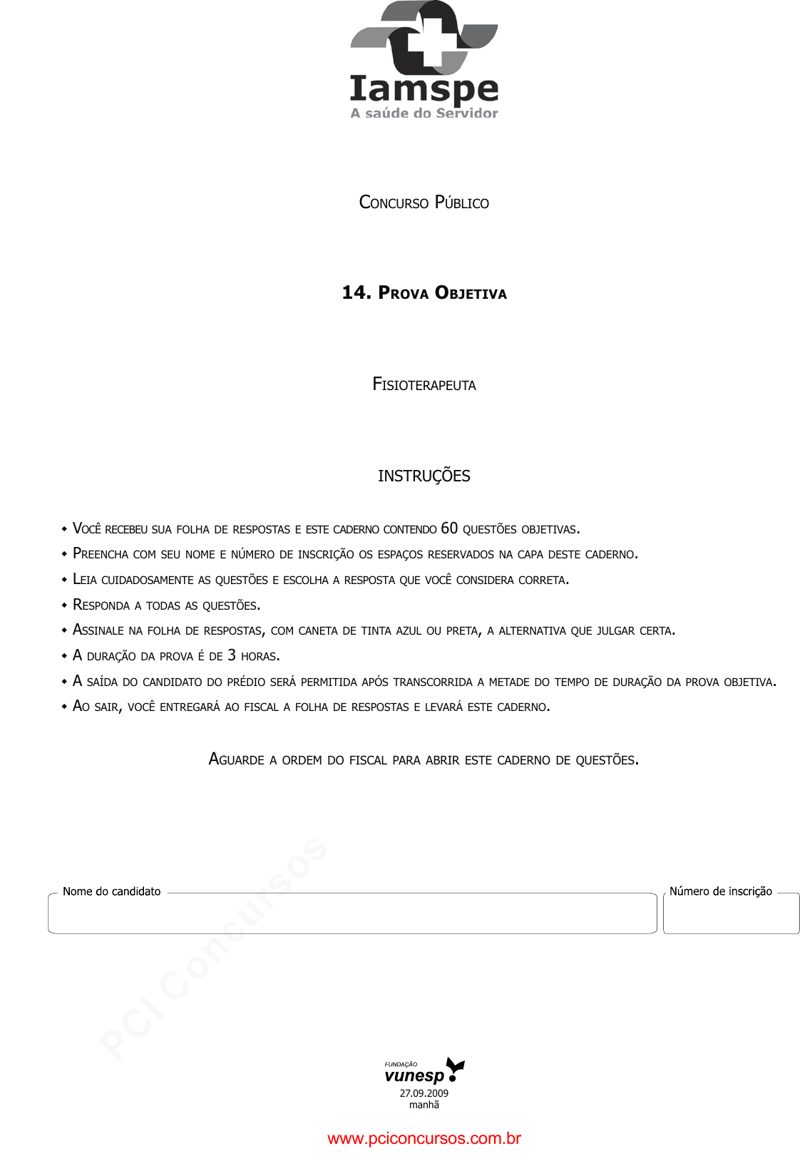pcimarkpci MDAwMDowMDAwOjAwMDA6MDAwMDowMDAwOmZmZmY6MzZlOTpjMjU5:VGh1LCAxNiBTZXAgMjAyMSAwNzozNTowMyAtMDMwMA== CONCURSO PÚBLICO 14. PROVA OBJETIVA FISIOTERAPEUTA INSTRUÇÕES � VOCÊ RECEBEU SUA FOLHA DE RESPOSTAS E ESTE CADERNO CONTENDO 60 QUESTÕES OBJETIVAS. � PREENCHA COM SEU NOME E NÚMERO DE INSCRIÇÃO OS ESPAÇOS RESERVADOS NA CAPA DESTE CADERNO. � LEIA CUIDADOSAMENTE AS QUESTÕES E ESCOLHA A RESPOSTA QUE VOCÊ CONSIDERA CORRETA. � RESPONDA A TODAS AS QUESTÕES. � ASSINALE NA FOLHA DE RESPOSTAS, COM CANETA DE TINTA AZUL OU PRETA, A ALTERNATIVA QUE JULGAR CERTA. � A DURAÇÃO DA PROVA É DE 3 HORAS. � A SAÍDA DO CANDIDATO DO PRÉDIO SERÁ PERMITIDA APÓS TRANSCORRIDA A METADE DO TEMPO DE DURAÇÃO DA PROVA OBJETIVA. � AO SAIR, VOCÊ ENTREGARÁ AO FISCAL A FOLHA DE RESPOSTAS E LEVARÁ ESTE CADERNO. AGUARDE A ORDEM DO FISCAL PARA ABRIR ESTE CADERNO DE QUESTÕES. 27.09.2009 manhã www.pciconcursos.com.br pcimarkpci MDAwMDowMDAwOjAwMDA6MDAwMDowMDAwOmZmZmY6MzZlOTpjMjU5:VGh1LCAxNiBTZXAgMjAyMSAwNzozNTowMyAtMDMwMA== 2IASP0901/14-Fisioterapeuta-manhã LÍNGUA PORTUGUESA Leia o texto para responder às questões de números 01 a 05. Você é o que você come Quando o francês Jean Brillat-Savarin cunhou, em 1825, a expressão “diga-me o que comes e eu te direi o que és”, referia- se, sobretudo, aos prazeres de uma boa refeição. Em seu tratado de gastronomia, A Fisiologia do Gosto, a primeira obra sobre a relação do homem com a comida, ele dizia que a elaboração de um novo prato causava mais felicidade à espécie humana do que a descoberta de uma estrela. Pouco mais de um século depois, na década de 1950, o sabor de uma boa refeição ganhou um tempero de culpa com a descoberta de que a gordura, em excesso, trazia malefícios à saúde. De lá para cá, uma série de estudos vem contribuindo para medicalizar o pão (e a carne, e a massa, e o doce) nosso de cada dia. Alguns alimentos passaram a ser vistos como venenos e outros, como remédios. Entre os dois extremos está você, fazendo as contas de quantas calorias vai ingerir com a feijoada programada para o sábado e pensando se, no momento, é melhor evitar o quinto copo de vinho tinto. Sem dúvida, as descobertas de médicos nutrólogos e nutri- cionistas são para ser levadas a sério, mas não devem servir para criar neuroses. Você é, sim, o que come, desde que entenda que, quando sentamos à mesa, o fazemos por motivos que vão além da nutrição pura e simplesmente. Entre eles, degustar iguarias, compartilhar um grande momento com os amigos, participar de rituais e cerimônias familiares e até explorar novas culturas. Tudo isso se perde assim que você começa a encarar a refeição como uma ida à farmácia. Qual a saída? Ter uma dieta equilibrada – em quantidade e qualidade. Tão equilibrada que lhe dê a chance de, vez por outra, cometer alguns crimes nutricionais. Já está provado que, das dez doenças que mais matam no mundo, cinco estão diretamente associadas a uma dieta de má qualidade: obesidade, infarto, derrame, diabetes e câncer. Não é preciso ser um frequentador compulsivo de spas para perceber que basta uma semana de alimentação regrada para o organismo funcionar melhor. Até o nosso humor pode ser modulado pela alimentação. Certos nutrientes provocam um efeito direto sobre a produção ou inibição de determinados neurotransmissores, responsáveis pelas oscilações do estado de espírito. Uma dieta, para ser equilibrada e prazerosa, tem de se com- binar ao ambiente em que se vive e à genética de cada um. Coma de tudo um pouco e tente transformar o ato de comer numa expe- riência mais agradável do que consumir uma porção de brócolis ou se entupir de frituras. (Anna Paula Buchalla, Veja, 30.04.2008. Adaptado) 01. De acordo com o texto, (A) comer é um prazer insuperável. Prova disso é que o ser humano dá mais valor a esse prazer que a avanços tec- nológicos. (B) desde o século XIX, vêm se estudando os malefícios que o excesso de comida pode causar às pessoas. (C) a expressão “diga-me o que comes e eu te direi o que és” refere-se ao poder que os alimentos têm de prevenir doenças. (D) fazer uma boa refeição não significa apenas se alimentar, pois essa prática também constitui uma atividade de socialização. (E) os abusos gastronômicos, mesmo que esporádicos, estão proibidos para os indivíduos que desejam ser saudáveis. 02. Considere os termos em destaque e as relações que eles es- tabelecem nas frases. I. Tudo isso se perde assim que você começa a encarar a refeição como uma ida à farmácia. – tempo e comparação II. Tão equilibrada que lhe dê a chance de, vez por outra, cometer alguns crimes nutricionais. – consequência III. ... consumir uma porção de brócolis ou se entupir de ��������� �� ������ É correto o que se afirma em (A) II, apenas. (B) III, apenas. (C) I e II, apenas. (D) II e III, apenas. (E) I, II e III. 03. Assinale a alternativa em que há uma expressão em sentido figurado. (A) ... a primeira obra sobre a relação do homem com a comida... (B) ... de que a gordura, em excesso, trazia malefícios à saúde. (C) Entre dois extremos está você, fazendo as contas... (D) ... vez por outra, cometer alguns crimes nutricionais. (E) Não é preciso ser um frequentador compulsivo de spas... 04. Considere os trechos. Em seu tratado de gastronomia, A Fisiologia do Gosto... ... causava mais felicidade à espécie humana... De lá para cá, uma série de estudos vem contribuindo... Sem dúvida, as descobertas de médicos nutrólogos... As expressões em destaque expressam, correta e respectiva- mente, as circunstâncias de (A) meio; modo; afirmação; intensidade. (B) meio; intensidade; lugar; dúvida. (C) causa; meio; lugar; dúvida. (D) lugar; modo; tempo; afirmação. (E) lugar; intensidade; tempo; afirmação. 05. Considere os trechos. ... é melhor evitar o quinto copo de vinho tint
