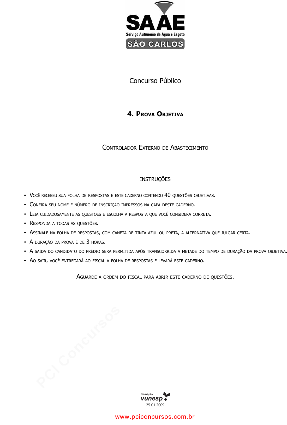 pcimarkpci MDAwMDowMDAwOjAwMDA6MDAwMDowMDAwOmZmZmY6MzZlOTpjMjU5:VGh1LCAxNiBTZXAgMjAyMSAxNTo0MDowMCAtMDMwMA== Concurso Público 4. PROVA OBJETIVA CONTROLADOR EXTERNO DE ABASTECIMENTO INSTRUÇÕES VOCÊ RECEBEU SUA FOLHA DE RESPOSTAS E ESTE CADERNO CONTENDO 40 QUESTÕES OBJETIVAS. CONFIRA SEU NOME E NÚMERO DE INSCRIÇÃO IMPRESSOS NA CAPA DESTE CADERNO. LEIA CUIDADOSAMENTE AS QUESTÕES E ESCOLHA A RESPOSTA QUE VOCÊ CONSIDERA CORRETA. RESPONDA A TODAS AS QUESTÕES. ASSINALE NA FOLHA DE RESPOSTAS, COM CANETA DE TINTA AZUL OU PRETA, A ALTERNATIVA QUE JULGAR CERTA. A DURAÇÃO DA PROVA É DE 3 HORAS. A SAÍDA DO CANDIDATO DO PRÉDIO SERÁ PERMITIDA APÓS TRANSCORRIDA A METADE DO TEMPO DE DURAÇÃO DA PROVA OBJETIVA. AO SAIR, VOCÊ ENTREGARÁ AO FISCAL A FOLHA DE RESPOSTAS E LEVARÁ ESTE CADERNO. AGUARDE A ORDEM DO FISCAL PARA ABRIR ESTE CADERNO DE QUESTÕES. 25.01.2009 www.pciconcursos.com.br pcimarkpci MDAwMDowMDAwOjAwMDA6MDAwMDowMDAwOmZmZmY6MzZlOTpjMjU5:VGh1LCAxNiBTZXAgMjAyMSAxNTo0MDowMCAtMDMwMA== 2SAAE0802/04-ContExtAbastecimento LÍNGUA PORTUGUESA Leia o texto para responder às questões de números 01 a 03. O Império do Silicone Ando espantado com o número de pessoas que vem fazendo plástica e lipoaspiração. Conheço uma senhora que deve ter sido pioneira das operações. Pelos meus cálculos, tem uns setenta anos. A aparência é absolutamente indefinível: – Quando sua família veio do Japão? – perguntei gentilmente. – Não há nenhum oriental na minha família! Seus olhos são tão puxados que eu juraria... Faz parte da época em que se esticava tudo. Os olhos chegavam às orelhas. Uma atriz, certa vez, ficou sem fechar os olhos seis meses. De tão esticada, não conseguia. Dormia com máscara. Atualmente a plástica avan- çou. Mas no passado, tudo isso era feito discretamente. Senhoras de mais idade se recusam a confessar as plásticas. – Nunca precisei – garante uma conhecida, embora suas ore- lhas, de tão puxadas, já estejam se encontrando atrás da cabeça. Tornou-se chique falar em pôr silicone, fazer lipo. As mais famosas anunciam aos quatro ventos: – Vou fazer o peito, o braço, os joelhos... Meu vizinho já entrou na lipo umas seis vezes. Arranca as gorduras. Mal se recupera, vai à churrascaria. Dali a pouco, a calça não fecha de novo. – Está na hora de fazer uma recauchutagem – avisa. Aconselho: – Lipo não é para emagrecer. Só deve ser feita depois do regime! Ele concorda, sorrindo. E se interna no dia seguinte. Claro que não resisti. Fui fazer uma consulta. Tirei a camisa e mostrei a barriga. Parecia um barril. Mas a plástica não faz milagres? O médico me observou. Por um instante pensei que fosse prescrever uma camisa-de-força. Apalpou-me. – Bem que eu gostaria de tirar sua barriga – explicou. Nesse caso saberia o que fazer com a minha, que é bem pior. Abriu a camisa. O umbigo derramou-se para fora. Explicou que temos o mesmo tipo de abdome, com gordura espalhada. Lipo não adiantaria. Só uma operação. A barriga ficaria esticadíssima. Eu teria de ficar dobrado em dois durante alguns meses, até a barriga recuperar a flexibilidade. – Tem garantia contra torresmos? – perguntei. Olhou-me dolorosamente. Não, não havia. Bastavam algumas picanhas bem gordurosas para eu voltar a ser o que sou! Fui visitar uma amiga, conhecida pelos decotes. Estava murcha. – Tirei o silicone – revelou. – Por quê? – É mais ou menos como mudar o corte de cabelo. Uma hora a gente põe, outra hora tira. A semana que vem, faço o rosto. Fiquei pensando: será que daqui a alguns anos vamos esquecer como eram os narizes, as orelhas, o jeito do rosto, antes de todo mundo querer atingir determinado padrão de beleza? Orelhas grandes não têm charme? Nariz torto? Tudo bem, querer ficar mais bonito. Mas ainda não consigo entender por que as pessoas andam fazendo tanta plástica. (Walcyr Carrasco. Pequenos Delitos e outras Crônicas. 2004. Adaptado) 01. De acordo com o texto, pode-se afirmar que o autor (A) reencontrou uma velha amiga japonesa. (B) queria diminuir o volume da barriga. (C) fez uma cirurgia na área dos olhos. (D) dormia usando uma máscara. (E) recomenda cirurgia plástica às mulheres. 02. O vizinho, citado no texto, fazia lipoaspiração e depois (A) mantinha uma dieta alimentar. (B) convidava os amigos para um jantar. (C) tentava convencer a esposa a fazer cirurgia plástica. (D) voltava a comer alimentos gordurosos. (E) fazia exercícios físicos para manter a forma. 03. O médico, ao ser consultado, mostrou ao paciente (A) o quanto ficou magro com a cirurgia. (B) a roupa que usava para disfarçar a barriga. (C) a tabela de preços referentes às cirurgias. (D) uma lista de alimentos que não engordam. (E) que também tinha problemas com excesso de peso. 04. Na frase – Ando espantado com o número de pessoas que vem fazendo plástica... a palavra espantado pode ser substituída, sem alteração de sentido, por (A) indiferente. (B) feliz. (C) assustado. (D) satisfeito. (E) conformado. 05. Atualmente a plástica avançou. A palavra avançou tem sentido contrário de (A) adiantou. (B) regrediu. (C) evoluiu. (D) prosseguiu. (E) progrediu. 06. Assinale a alternativa que apresenta uma frase em sentido figurado. (A) Ela foi consultar um especialista. (B) O médico me olhou demoradamente. (C) Quando sua família veio do Japão? (D) Anunciou aos quatro ventos que ia fazer plástica. (E) Ele tirou a camisa e mostrou a barriga. www.pciconcursos.com.br pcimarkpci MDAwMDowMDAwOjAwMDA6MDAwMDowMDAwOmZmZmY6MzZlOTpjMjU5:VGh1LCAxNiBTZXAgMjAyMSAxNTo0MDowMCAtMDMwMA== 3 SAAE0802/04-ContExtAbastecimento 07. Assinale a alternativa em que a pontuação está correta. (A) A aplicação do silicone, de acordo com os especialistas, requer certos cuidados. (B) A aplicação, do silicone, de acordo com os especialistas requer, certos cuidados. (C) A aplicação do silicone de acordo, com os especialistas, requer certos cuidados. (D) A aplicação do