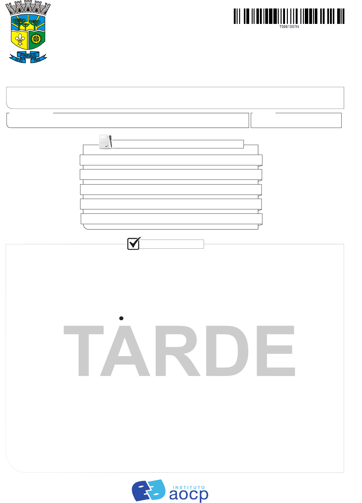 Nome do Candidato Inscrição EDUCADOR SOCIAL PREFEITURA DE PINHAIS ESTADO DO PARANÁ EDITAL DE CONCURSO PÚBLICO Nº 002/2017 NÍVEL MÉDIO TARDE 1. Confira seu nome, o número do seu documento e o número de sua inscrição na folha de Respostas. Além disso, não se esqueça de conferir seu Caderno de Questões quanto a falhas de impressão e de numeração, e se o cargo corresponde àquele para o qual você se inscreveu. Preencha os campos destinados à assinatura e ao número de inscrição. Qualquer divergência comunique ao fiscal. 2. O único documento válido para avaliação é a Folha de Respostas. Só é permitido o uso de caneta esferográfica transparente de cor azul ou preta para o preenchimento da Folha de Respostas, que deve ser preenchida da seguinte maneira: 3. O prazo de realização da prova é de 4 (quatro) horas, incluindo a marcação da Folha de Respostas. Após 60 (sessenta) minutos do início da prova, o candidato estará liberado para utilizar o sanitário ou deixar definitivamente o local de aplicação, não podendo, no entanto, levar o caderno de questões. Os 3 (três) últimos candidatos só poderão retirar-se da sala juntos. 4. Ao término de sua prova, comunique ao fiscal, devolvendo-lhe a Folha de Respostas, devidamente preenchida e assinada. O candidato poderá levar consigo o Caderno de Questões somente se aguardar em sala até o término do prazo de realização da prova estabelecido em edital. 5. As provas e os gabaritos preliminares estarão disponíveis no site do Instituto AOCP - www.institutoaocp.org.br, no dia posterior à aplicação da prova. 6. Implicará na eliminação do candidato, caso, durante a realização das provas, qualquer equipamento eletrônico venha emitir ruídos, mesmo que devidamente acondicionado no envelope de guarda de pertences. O NÃO cumprimento a qualquer uma das determinações constantes em Edital, no presente Caderno ou na Folha de Respostas incorrerá na eliminação do candidato. Matemática 11 a 20 Língua Portuguesa 01 a 10 COMPOSIÇÃO DO CADERNO Informática 21 a 25 INSTRUÇÕES Conhecimentos Gerais 26 a 30 Conhecimentos Específicos 31 a 50 TARDE 2 Educador Social L Í N G U A P O R T U G U E S A Texto 1, para as questões de 1 a 5: Canção Pus o meu sonho num navio e o navio em cima do mar; - depois, abri o mar com as mãos, para o meu sonho naufragar Minhas mãos ainda estão molhadas do azul das ondas entreabertas, e a cor que escorre de meus dedos colore as areias desertas. O vento vem vindo de longe, a noite se curva de frio; debaixo da água vai morrendo meu sonho, dentro de um navio... Chorarei quanto for preciso, para fazer com que o mar cresça, e o meu navio chegue ao fundo e o meu sonho desapareça. Depois, tudo estará perfeito; praia lisa, águas ordenadas, meus olhos secos como pedras e as minhas duas mãos quebradas. Cecília Meireles 1. O poema de Cecília Meireles trabalha habilmente as circunstâncias temporais. Com isso em mente, analise as assertivas e assinale a alternativa que aponta a(s) correta(s). I. O tempo passado (desenvolvido apenas na primeira estrofe) faz referência a ações impensadas, as quais trarão dor e arrependimento ao eu lírico. II. O tempo presente destaca certo aspecto sensorial por meio, por exemplo, da sinestesia. III. O tempo futuro sugere o clímax da felicidade do eu lírico, pois é lá que ele encontrará a vida perfeita. (A) Apenas I. (B) Apenas II. (C) Apenas III. (D) Apenas I e III. (E) Apenas II e III. 2. Em relação ao texto 1, assinale a alternativa correta. (A) O eu lírico, ao associar o sonho a um navio, acaba personificando-os, visto que ambos são tratados como elementos dotados de sentimentos humanos. (B) Ao dizer que suas mãos “ainda” estão molhadas, o eu lírico reforça a relação quase orgânica que ele mantinha com o sonho. (C) Em “o vento vem vindo de longe”, a sonoridade das consoantes (recurso conhecido como assonância) imita concretamente o som do vento se aproximando. (D) No poema, o choro também parece estar associado a necessidades, aparentemente, calculadas. (E) Os olhos, secos como pedras, indica que o choro cessou e, portanto, o eu lírico encontrou a felicidade. 3. Assinale a alternativa que apresenta oração subordinada similar à encontrada em “a maneira como o receberam era um aviso”. (A) “Pus o meu sonho num navio / e o navio em cima do mar; [...]”. (B) “[...] - depois, abri o mar com as mãos, / para o meu sonho naufragar [...]”. (C) “[...] a cor que escorre de meus dedos / colore as areias desertas. [...]”. (D) “Chorarei quanto for preciso, [...]”. (E) “[...] meus olhos secos como pedras [...]”. 4. Assinale a alternativa cujo elemento destacado é classificado como adjunto adnominal. (A) “Pus o meu sonho num navio [...]” (B) “[...] e o navio em cima do mar” (C) “[...] depois, abri o mar com as mãos [...]” (D) “Minhas mãos ainda estão molhadas / do azul das ondas entreabertas [...]” (E) “O vento vem vindo de longe [...]” 5. Todas as assertivas a seguir são uma tentativa de interpretar o uso das figuras de linguagem no poema. Analise-as e assinale a alternativa que aponta a(s) correta(s). I. Em “[...] e a cor que escorre de meus dedos / colore as areias desertas.”, a combinação entre um elemento tátil e outro visual sugere uma descrição sinestésica. 3 Educador Social II. Em “[...] a noite se curva de frio;”, há prosopopeia. III. Em “Chorarei quanto for preciso, / para fazer com que o mar cresça [...]”, há uma exagero sintático conhecido como hipérbato. (A) Apenas I. (B) Apenas II. (C) Apenas III. (D) Apenas I e II. (E) Apenas II e III. Texto 2, para as questões de 6 a 10. 16 de setembro de 1991 Querido amigo, Terminei de ler O sol nasce para todos. Agora é meu livro favorito, mas sempre acho [1] que um livro é meu favorito até eu ler outro. Meu professor de inglês avançado me pediu para chamá-lo de "Bill" quando não estivéssemos