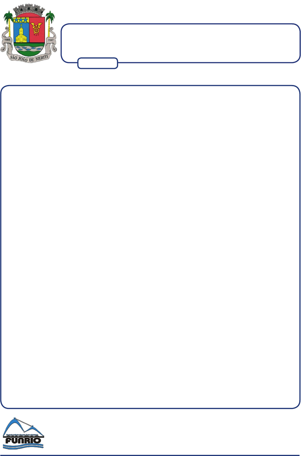 Câmara Municipal de São João de Meriti INFORMAÇÕES: e Tel: (21) 2567-9994 das 09 às 17h e Internet: www.funrio.org.br e E-mail: cmsjm2017@funrio.org.br LEIA COM ATENÇÃO AS INSTRUÇÕES 1 - A Prova Objetiva terá duração de 4 (quatro) horas, já incluído o tempo de preenchimento do Cartão de Respostas. 2 - O candidato que, na primeira hora de prova, se ausentar da sala e a ela não retornar, será eliminado. 3 - Os 3 (três) últimos candidatos a terminar a prova deverão permanecer na sala até que todos os três tenham finalizado suas provas devendo sair juntos do recinto, após aposição em ata de suas respectivas assinaturas. 4 - O candidato NÃO poderá levar o seu Caderno de Questões (Provas Objetivas) e NÃO poderá copiar o gabarito (assinalamentos). A imagem do seu Cartão de Respostas será disponibilizada na página do processo seletivo em www. funrio.org.br na data prevista no cronograma. INSTRUÇÕES - PROVA OBJETIVA 1 - Confira atentamente se este Caderno de Questões (Provas), que contém 60 (sessenta) questões objetivas está completo. 2 - Cada questão da Prova Objetiva conterá 5 (cinco) opções e somente uma opção correta. 3 - Confira se os seus dados pessoais, a opção de cargo/função escolhido, indicados no Cartão de Respostas, estão corretos. Se notar qualquer divergência, notifique imediatamente ao Fiscal de Sala ou ao Chefe de Local. Terminada a conferência, você deve assinar obrigatoriamente o Cartão de Respostas no espaço apropriado. 4 - Confira atentamente se a opção do cargo/função que está no caderno de questões é o mesmo do que consta em seu Cartão de Respostas. Se notar qualquer divergência, notifique imediatamente ao Fiscal de Sala ou ao Chefe de Local. 5 - Cuide de seu Cartão de Respostas. Ele não pode ser rasurado, amassado, dobrado nem manchado. 6 - Se você marcar mais de uma alternativa, sua resposta será considerada errada mesmo que uma das alternativas assinaladas seja a correta. 7 - O fiscal de sala não poderá prestar qualquer esclarecimento sobre o conteúdo da prova. Caso discorde de qualquer questão, quer seja por erro gráfico, quer seja por conta do conteúdo da mesma, o candidato deverá entrar com recurso administrativo contra as questões (um recurso para cada questão que desejar recorrer) na data prevista no cronograma. AGENDA e 08/04/2018, Provas Objetivas – Cargos/Funções de Nível Superior (Domingo – Manhã às 09 horas). e 09/04/2018, Divulgação dos Exemplares dos Cadernos de Questões (Provas) das Provas Objetivas. e 09/04/2018, Divulgação dos Gabaritos Preliminares das Provas Objetivas. e 13/04/2018, Disponibilização das Imagens dos Cartões Respostas das Provas Objetivas. e 16/04 a 17/04/2018, Interposição de Recursos contra as questões das Provas Objetivas. e 27/04/2018, Gabaritos Definitivos das Provas Objetivas. e 30/04/2018, Relação Preliminar de Notas das Provas Objetivas. e 02/05 a 03/05/2018, Interposição de Recursos contra a Relação Preliminar de Notas das Provas Objetivas. e 08/05/2018, Relação Final de Notas das Provas Objetivas. e 08/05/2018, Resultado Final. ADVOGADO LEGISLATIVO ADL01 ADVOGADO LEGISLATIVO 3 LÍNGUA PORTUGUESA SOBRE A INTOLERÂNCIA (UNESCO) A intensificação atual da intolerância, da violência, do terrorismo, da xenofobia, do nacionalismo agressivo, do racismo, do antissemitismo, da exclusão, da marginalização e da discriminação contra minorias nacionais, étnicas, religiosas e linguísticas, dos refugiados, dos trabalhadores migrantes, dos imigrantes e dos grupos vulneráveis da sociedade e também pelo aumento dos atos de violência e de intimidação cometidos contra pessoas que exercem sua liberdade de opinião e de expressão, todos comportamentos que ameaçam a consolidação da paz e da democracia no plano nacional e internacional e constituem obstáculos para o desenvolvimento... QUESTÃO 1 O jornal O Globo, de 4/12/2017 traz a seguinte manchete: Menino de 13 anos fugido do Congo conta como é viver em uma área violenta da cidade depois de fugir de um país em guerra Essa manchete se inclui no seguinte problema citado no texto: (A) intensificação da xenofobia. (B) discriminação contra trabalhadores migrantes. (C) intensificação da violência contra refugiados. (D) discriminação contra minorias. (E) intensificação da exclusão. QUESTÃO 2 “...todos comportamentos que ameaçam a consolidação da paz e da democracia no plano nacional e internacional e constituem obstáculos para o desenvolvimento...”. O comentário correto sobre os componentes desse segmento do texto é: (A) o termo “todos comportamentos” resume todos os citados anteriormente. (B) o termo “todos comportamentos” deveria ser substituído por “todos os comportamentos”. (C) o termo “consolidação da paz” poderia ser substituído por “consolidação pacífica”. (D) o termo “consolidação da democracia” poderia ser substituído por “consolidação democrática”. (E) o termo “que” se refere a um antecedente que está na parte anterior a esse fragmento do texto. QUESTÃO 3 No texto há a presença de vários termos seguidos de vários complementos; o item abaixo em que há uma relação equivocada entre um desses termos e seus complementos é: (A) a intensificação atual / da intolerância. (B) discriminação / contra minorias nacionais. (C) aumento / dos atos de violência. (D) liberdade / de opinião e de expressão. (E) plano / nacional e internacional. QUESTÃO 4 A ligação semântica entre os dois termos citados está correta em: (A) terrorismo / intimidação das pessoas que exercem sua liberdade de opinião. (B) racismo / discriminação contra refugiados. (C) antissemitismo / intimidação das pessoas que exercem sua liberdade de expressão. (D) xenofobia / discriminação dos imigrantes. (E) nacionalismo agressivo / discriminação contra minorias religiosas. QUESTÃO 5 Todos os termos abaixo estão unidos p