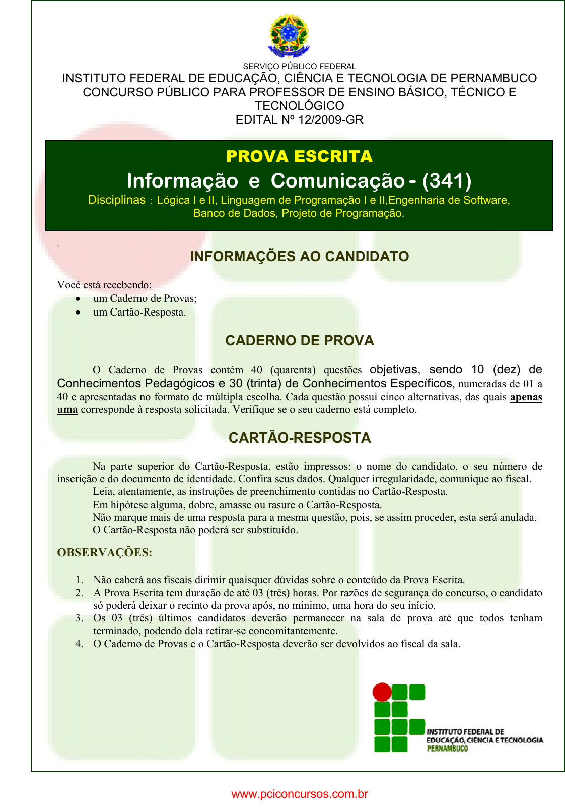 INSTITUTO FEDERAL DE EDUCAÇÃO, CIÊNCIA E TECNOLOGIA DE PERNAMBUCO