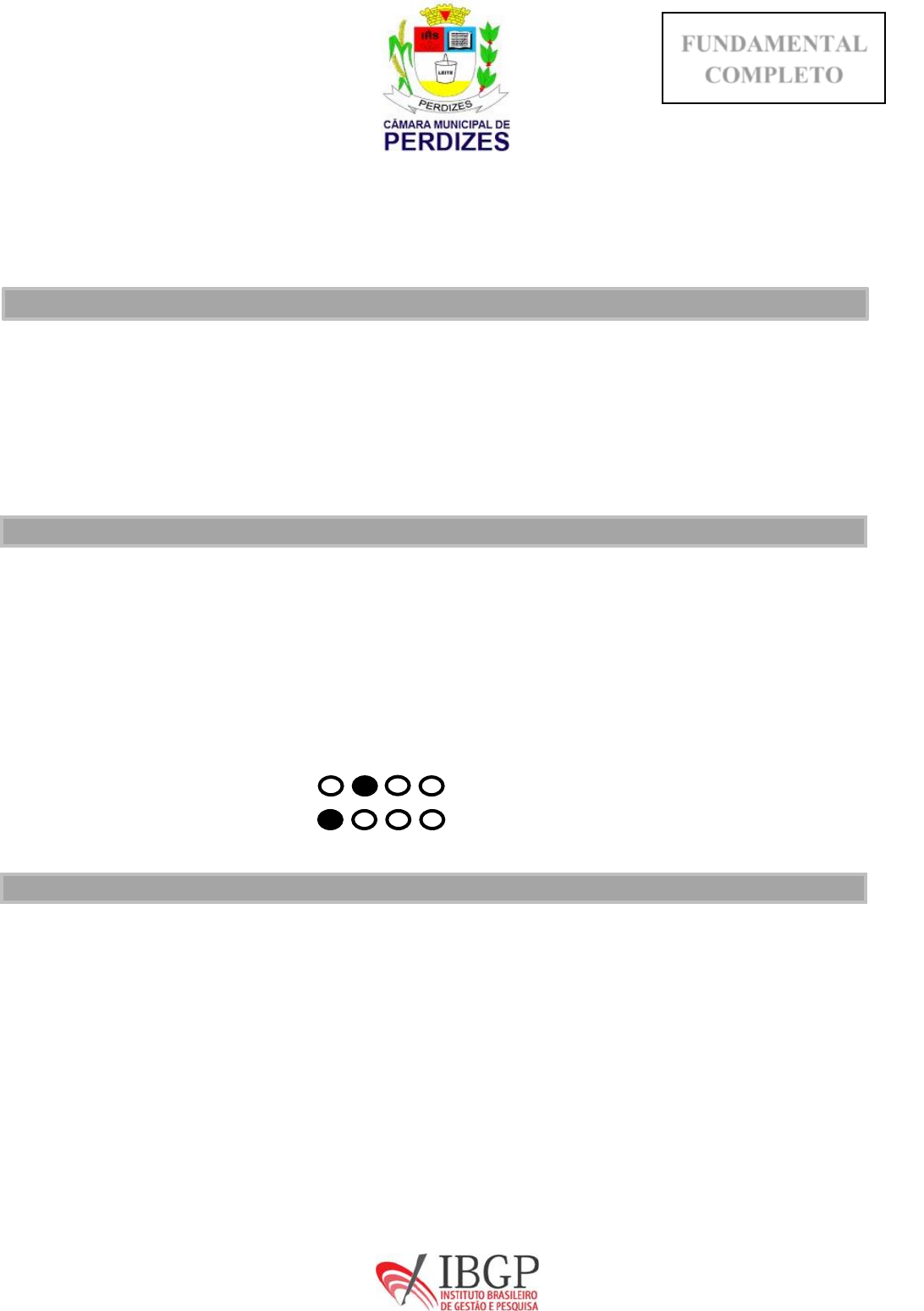 1 CONCURSO DA CÂMARA DE PERDIZES EDITAL Nº 01/2018 CARGO: 201 - RECEPCIONISTA INSTRUÇÕES DA PROVA Quando for permitido abrir o caderno, confira se este caderno contém, ao todo, 25 (vinte e cinco) questões de Múltipla Escolha, cada uma constituída de 4 (quatro) alternativas de respostas, todas perfeitamente legíveis, bem como se a impressão, a paginação e a numeração das questões estão corretas. A Prova de Múltipla Escolha está assim distribuída: 10 (dez) questões de Língua Portuguesa, 10 (dez) questões de Matemática e 05 (cinco) questões de Conhecimentos Gerais, todas perfeitamente legíveis. Caso os dados estejam incorretos, ou incompletos, ou tenham qualquer imperfeição, favor informar tal ocorrência ao fiscal. NÃO SERÃO ACEITAS RECLAMAÇÕES POSTERIORES. Use, como rascunho, as Folhas de Respostas reproduzidas ao início desse caderno. ATENÇÃO Verifique se seus dados estão corretos na Folha de Respostas, caso não estejam informe ao fiscal imediatamente. Nas Folhas de Respostas, assinale a alternativa que julgar correta para cada questão usando caneta esferográfica de tinta preta ou azul. Mais de uma letra assinalada implicará na anulação da questão. Não deixe nenhuma questão sem resposta. Qualquer rasura no preenchimento anulará a questão. A Folha de Respostas da Prova Objetiva de Múltipla Escolha NÃO deve ser dobrada, amassada, rasurada, manchada ou conter qualquer registro fora dos locais destinados às respostas. O modo correto de assinalar a alternativa na Folha de Respostas da Prova Objetiva é cobrindo, fortemente, o espaço a ela correspondente, conforme o modelo abaixo: FOLHA DE RESPOSTAS SEM ASSINATURA NÃO TEM VALIDADE. ORIENTAÇÕES DO PROCESSO A duração da Prova será de 03h30min (três horas e trinta minutos), incluído a distribuição da prova o tempo para leitura das instruções e preenchimento da folha de respostas da prova, sendo responsabilidade do candidato observar o horário estabelecido. (SUBITEM 10.1.7). Período de Sigilo – o candidato somente poderá retirar-se definitivamente da sala de prova ou para utilização de sanitários e para beber água após transcorridos o tempo de 01 (uma) hora de seu início até o prazo de 15 (quinze) minutos antes do seu término. (SUBITEM 10.1.18 a 10.1.20). O candidato NÃO poderá levar o caderno de questões consigo depois de passado o período de sigilo. (SUBITEM 10.1.22). Ao terminarem as Provas, os candidatos deverão se retirar imediatamente do local, não sendo possível nem mesmo a utilização dos banheiros, sendo que os três últimos candidatos presentes na sala somente poderão deixar o local de prova juntos. (SUBITEM 10.1.21). Os Cadernos de Questões e os gabaritos oficiais da Prova Objetiva de Múltipla Escolha serão disponibilizados no endereço eletrônico www.ibgpconcursos.com.br, no dia 24/03/2019, a partir das 20hs. (SUBITEM 10.1.26 e 10.1.27). FUNDAMENTAL COMPLETO 1 2 http://www.ibgpconcursos.com.br/ 2 A B C D A B C D A B C D A B C D A B C D A B C D A B C D A B C D A B C D A B C D A B C D A B C D A B C D A B C D A B C D A B C D A B C D A B C D A B C D A B C D A B C D A B C D A B C D A B C D A B C D FOLHA DE RESPOSTAS (RASCUNHO) 01 21 02 22 03 23 04 24 05 25 06 07 08 09 10 11 12 13 14 15 16 17 18 19 20 AO TRANSFERIR ESSAS MARCAÇÕES PARA A FOLHA DE RESPOSTAS, OBSERVE AS INSTRUÇÕES ESPECÍFICAS DADAS NA CAPA DA PROVA. SE TIVER ALGUMA ANOTAÇÃO SEM SER A RESPOSTA NÃO PODERÁ LEVAR O RASCUNHO. USE CANETA ESFEROGRÁFICA AZUL OU PRETA. 3 PORTUGUÊS As questões de 01 a 05 dizem respeito à charge. Leia-a atentamente antes de respondê-las. QUESTÃO 1 Assinale a alternativa que apresenta a palavra escrita de forma INCORRETA na Charge: A) Mentila. B) Criança. C) Pessoa. D) Completou. QUESTÃO 2 A palavra “adolescente” possui a CORRETA separação silábica em: A) A-do-les-ce-nte. B) A-do-les-cen-te. C) A-do-le-scen-te. D) Ado-le-scen-te. QUESTÃO 3 De acordo com a classificação da palavra quanto à posição da sílaba tônica, é CORRETO afirmar que a palavra “adolescente” é uma: A) Oxítona. B) Paroxítona. C) Proparoxítona. D) Monossílaba. QUESTÃO 4 No contexto em que estão inseridas, assinale a alternativa que representa CORRETAMENTE uma palavra em função morfológica de substantivo na Charge: A) É. B) Que. C) Não. D) Criança. QUESTÃO 5 O sujeito da oração “... e o adolescente tem entre 12 e 18 anos! [...]” é classificado como: A) Sujeito oculto. B) Sujeito composto. C) Sujeito simples. D) Sujeito indeterminado. QUESTÃO 6 “Joana é espirituosa!”. O predicado da oração é: A) Nominal. B) Verbal. C) Verbo-nominal. D) Predicativo do sujeito. QUESTÃO 7 A palavra “consciência” é acentuada pela mesma regra de acentuação das seguintes palavras, EXCETO: A) Paciência. B) Permanência. C) Ódio. D) Café. QUESTÃO 8 O adjetivo que designa nacionalidade ou lugar de origem é denominado: A) Adjetivo derivado. B) Adjetivo composto. C) Adjetivo pátrio. D) Adjetivo primitivo. 4 QUESTÃO 9 Dos termos destacados nas alternativas a seguir, assinale aquele que apresenta CORRETAMENTE um substantivo: A) A menina era muito bonita. B) Ele estava bem arrumado. C) Não quero mais saber de você na minha vida! D) Preciso de um favor. Você pode me ajudar? QUESTÃO 10 Assinale a alternativa que apresenta CORRETAMENTE uma oração: A) Silêncio! B) E agora, Pedro? C) Eles levaram tudo. D) Choveu. MATEMÁTICA QUESTÃO 11 Efetue o cálculo da operações e assinale a alternativa contendo o resultado CORRETO: (−2) × (−8) 4 = ? A) -4. B) -2. C) 2. D) 4. QUESTÃO 12 Se 10 rosas formam dois buquês de flores, é CORRETO afirmar que cada buquê possui exatamente: A) 4 rosas. B) 5 rosas. C) 6 rosas. D) 10 rosas. QUESTÃO 13 Ao comprar uma calça no valor de R$ 89,90, João deu ao caixa duas notas de cinquenta reais. Com base no valor utilizado para o pagamento efetuado por João, é CORRETO afirmar que o troco recebido foi de: A) R$ 8,90