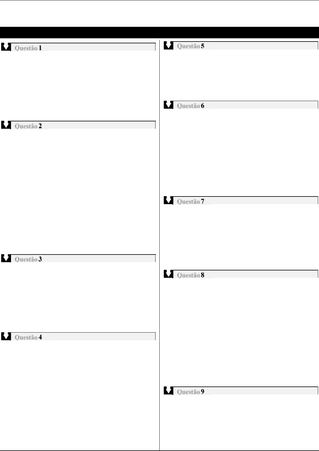 566008_01N763378 CEBRASPE – SEED/PARANÁ – Edital: 2020 BIOLOGIA -- CONHECIMENTOS ESPECÍFICOS -- Questão 1 Assinale a opção que apresenta a denominação da estrutura que compõe as células eucarióticas e que tem como função manter a forma e a sustentação mecânica dessas células, bem como promover sua motilidade. A plasmodesmo B citoesqueleto C vacúolo pulsátil D glicocálice E lisossomo Questão 2 Origem das mitocôndrias em células eucarióticas: uma revisão A teoria da endossimbiose propõe que as mitocôndrias se originaram da endocitose efetuada por um ancestral das células eucariotas de bactérias aeróbicas e que os cloroplastos se originaram da endocitose de bactérias fotossintetizantes. Internet: <https://periodicos.unisanta.br> (com adaptações). O estudo da estrutura e das funções das mitocôndrias contribuiu para as análises e a formulação da referida teoria. As funções dessas organelas incluem A armazenamento de proteínas. B digestão intracelular. C síntese de lipídios. D respiração oxidativa. E síntese de proteínas. Questão 3 A membrana plasmática A promove o transporte ativo de substâncias sem gasto energético. B é composta por duas camadas de fosfolipídios. C é composta por monocamada simples de fosfolipídios. D é constituída de parede celular flexível, especialmente em células animais. E promove o transporte passivo de substâncias com gasto energético. Questão 4 Com relação a tecido conjuntivo, julgue os itens seguintes. I O tecido conjuntivo cartilaginoso é constituído por condrócitos. II O tecido conjuntivo ósseo é formado por eritrócitos que atuam na circulação de oxigênio pelo corpo humano. III O tecido conjuntivo adiposo armazena grande quantidade de energia do organismo na forma de triglicerídios. Assinale a opção correta. A Apenas o item I está certo. B Apenas o item II está certo. C Apenas os itens I e III estão certos. D Apenas os itens II e III estão certos. E Todos os itens estão certos. Questão 5 As hemácias do ser humano A diminuem em quantidade em grandes altitudes. B obtêm energia por meio das mitocôndrias. C possuem grande capacidade de divisão celular. D são anucleadas. E sobrevivem no organismo por anos. Questão 6 No que se refere ao sistema digestório humano, assinale a opção correta. A A enzima lactase é produzida pelo pâncreas. B Após a mastigação, o alimento engolido passa pelo esôfago e depois pela laringe. C A maior parte do processo de digestão ocorre no intestino delgado. D A saliva lubrifica o alimento, mas a digestão química somente ocorre no estômago. E A bile produzida pelo fígado contém grande quantidade de enzimas digestivas. Questão 7 O principal hormônio produzido no hipotálamo e regulador da função renal e da manutenção do equilíbrio hídrico no organismo é denominado A cortisol. B prolactina. C adrenocorticotrofina. D aldosterona. E vasopressina. Questão 8 Na maioria das angiospermas, a gema apical inibe o crescimento e o desenvolvimento das gemas laterais. A remoção da gema apical provoca o brotamento das gemas basais, o que evidencia esse tipo de inibição correlativa, observada, por exemplo, quando se efetuam podas na planta. Internet: <https://www.ufjf.br/fisiologiavegetal> (com adaptações). O texto apresentado descreve o fenômeno da dominância apical, comumente realizado pela ação do fitormônio conhecido como A ácido abscísico. B giberelina. C citocinina. D auxina. E etileno. Questão 9 Assinale a opção que apresenta animal pertencente ao subfilo Chelicerata. A formiga B escorpião C mosca D barata E abelha 566008_01N763378 CEBRASPE – SEED/PARANÁ – Edital: 2020 Questão 10 Desde 1970 até os dias atuais, as propostas de classificação dos grupos de seres vivos têm sido relacionadas com os avanços da biologia molecular, com o aprimoramento dos estudos com microscopia eletrônica e com a maior aceitação e desenvolvimento da sistemática filogenética. Internet: <https://edisciplinas.usp.br> (com adaptações). Considerando a proposta da categoria taxonômica superior a reino que divide os seres vivos nos domínios Archaea, Bacteria e Eucarya, julgue os itens a seguir. I O termo Archaea foi empregado para reunir os eucariontes extremófilos, ou seja, os que habitam apenas ambientes extremos. II Os procariontes formam apenas um único grupo. III Os eucariontes podem ser reunidos em um único domínio, denominado Eucarya. Assinale a opção correta. A Nenhum item está certo. B Apenas o item I está certo. C Apenas o item II está certo. D Apenas o item III está certo. E Todos os itens estão certos. Questão 11 A fecundação humana é um processo de união que ocorre entre óvulo e espermatozoide, formando-se o zigoto. Depois disso, acontece uma sequência de divisões mitóticas e de diferenciação celular, até a formação do indivíduo. Esses eventos são denominados de desenvolvimento embrionário e ocorrem em etapas. Com relação a esse processo, é correto afirmar que, na fase de gastrulação, A o embrião é chamado de blástula. B o tubo neural é formado. C ocorre a fixação do embrião no útero. D todos os órgãos do embrião se formam. E os folhetos germinativos são formados. Questão 12 O desenvolvimento pré-natal humano compreende um período de aproximadamente 40 semanas após a fertilização. Ele é marcado por várias alterações morfológicas que são divididas para fins de estudo. Acerca desses períodos, assinale a opção que descreve corretamente a sequência do desenvolvimento pré-natal humano. A período pré-embrionário (desde a fertilização até o final da 2.ª semana de gestação), período embrionário (da 3.ª semana até o fim da 8.ª semana de gestação) e período fetal (a partir da 9.ª semana de gestação até o nascimento) B período pré-embrionário (desde a fertilização até o final da 4.ª semana de gestação), período embrionário (da 5.ª semana 