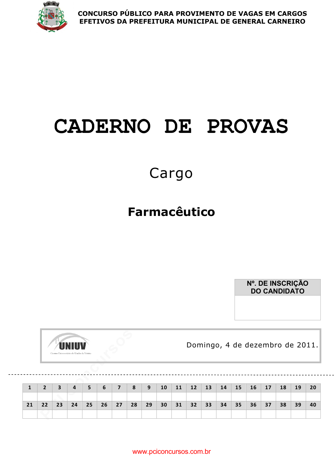 provas objetivas, no site concursopublico.uniuv.edu.br às 17 horas (dezessete horas), do dia 5 de
