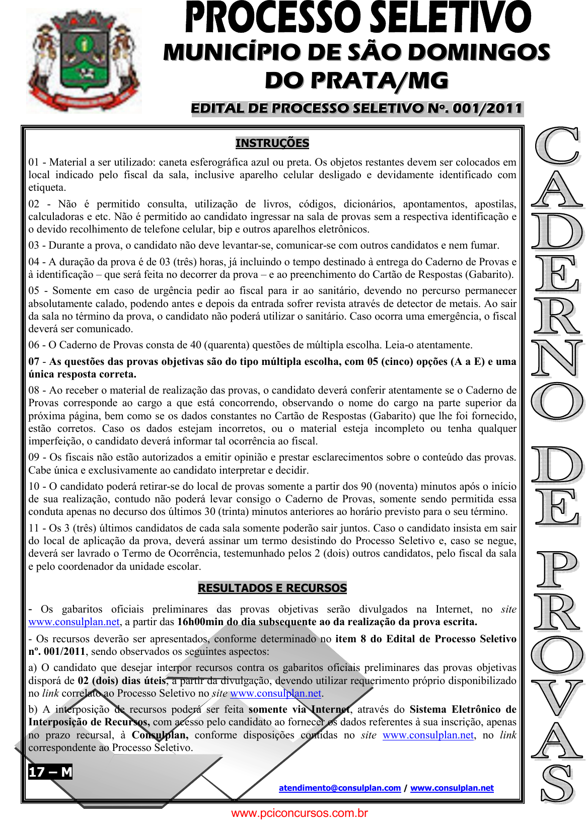 pcimarkpci MDAwMDowMDAwOjAwMDA6MDAwMDowMDAwOmZmZmY6MzZlOTpjMjU5:TW9uLCAxMyBTZXAgMjAyMSAxNDozNzoyNyAtMDMwMA== INSTRUÇÕES 01 - Material a ser utilizado: caneta esferográfica azul ou preta. Os objetos restantes devem ser colocados em local indicado pelo fiscal da sala, inclusive aparelho celular desligado e devidamente identificado com etiqueta. 02 - Não é permitido consulta, utilização de livros, códigos, dicionários, apontamentos, apostilas, calculadoras e etc. Não é permitido ao candidato ingressar na sala de provas sem a respectiva identificação e o devido recolhimento de telefone celular, bip e outros aparelhos eletrônicos. 03 - Durante a prova, o candidato não deve levantar-se, comunicar-se com outros candidatos e nem fumar. 04 - A duração da prova é de 03 (três) horas, já incluindo o tempo destinado à entrega do Caderno de Provas e à identificação – que será feita no decorrer da prova – e ao preenchimento do Cartão de Respostas (Gabarito). 05 - Somente em caso de urgência pedir ao fiscal para ir ao sanitário, devendo no percurso permanecer absolutamente calado, podendo antes e depois da entrada sofrer revista através de detector de metais. Ao sair da sala no término da prova, o candidato não poderá utilizar o sanitário. Caso ocorra uma emergência, o fiscal deverá ser comunicado. 06 - O Caderno de Provas consta de 40 (quarenta) questões de múltipla escolha. Leia-o atentamente. 07 - As questões das provas objetivas são do tipo múltipla escolha, com 05 (cinco) opções (A a E) e uma única resposta correta. 08 - Ao receber o material de realização das provas, o candidato deverá conferir atentamente se o Caderno de Provas corresponde ao cargo a que está concorrendo, observando o nome do cargo na parte superior da próxima página, bem como se os dados constantes no Cartão de Respostas (Gabarito) que lhe foi fornecido, estão corretos. Caso os dados estejam incorretos, ou o material esteja incompleto ou tenha qualquer imperfeição, o candidato deverá informar tal ocorrência ao fiscal. 09 - Os fiscais não estão autorizados a emitir opinião e prestar esclarecimentos sobre o conteúdo das provas. Cabe única e exclusivamente ao candidato interpretar e decidir. 10 - O candidato poderá retirar-se do local de provas somente a partir dos 90 (noventa) minutos após o início de sua realização, contudo não poderá levar consigo o Caderno de Provas, somente sendo permitida essa conduta apenas no decurso dos últimos 30 (trinta) minutos anteriores ao horário previsto para o seu término. 11 - Os 3 (três) últimos candidatos de cada sala somente poderão sair juntos. Caso o candidato insista em sair do local de aplicação da prova, deverá assinar um termo desistindo do Processo Seletivo e, caso se negue, deverá ser lavrado o Termo de Ocorrência, testemunhado pelos 2 (dois) outros candidatos, pelo fiscal da sala e pelo coordenador da unidade escolar. RESULTADOS E RECURSOS - Os gabaritos oficiais preliminares das provas objetivas serão divulgados na Internet, no site www.consulplan.net, a partir das 16h00min do dia subsequente ao da realização da prova escrita. - Os recursos deverão ser apresentados, conforme determinado no item 8 do Edital de Processo Seletivo nº. 001/2011, sendo observados os seguintes aspectos: a) O candidato que desejar interpor recursos contra os gabaritos oficiais preliminares das provas objetivas disporá de 02 (dois) dias úteis, a partir da divulgação, devendo utilizar requerimento próprio disponibilizado no link correlato ao Processo Seletivo no site www.consulplan.net. b) A interposição de recursos poderá ser feita somente via Internet, através do Sistema Eletrônico de Interposição de Recursos, com acesso pelo candidato ao fornecer os dados referentes à sua inscrição, apenas no prazo recursal, à Consulplan, conforme disposições contidas no site www.consulplan.net, no link correspondente ao Processo Seletivo. 17 – M atendimento@consulplan.com / www.consulplan.net MMMUUUNNNIIICCCÍÍÍPPPIIIOOO DDDEEE SSSÃÃÃOOO DDDOOOMMMIIINNNGGGOOOSSS DDDOOO PPPRRRAAATTTAAA///MMMGGG EEEDDDIIITTTAAALLL DDDEEE PPPRRROOOCCCEEESSSSSSOOO SSSEEELLLEEETTTIIIVVVOOO NNNººº... 000000111///222000111111 www.pciconcursos.com.br pcimarkpci MDAwMDowMDAwOjAwMDA6MDAwMDowMDAwOmZmZmY6MzZlOTpjMjU5:TW9uLCAxMyBTZXAgMjAyMSAxNDozNzoyNyAtMDMwMA== PPPRRROOOCCCEEESSSSSSOOO SSSEEELLLEEETTTIIIVVVOOO ––– MMMUUUNNNIIICCCÍÍÍPPPIIIOOO DDDEEE SSSÃÃÃOOO DDDOOOMMMIIINNNGGGOOOSSS DDDOOO PPPRRRAAATTTAAA///MMMGGG PSICÓLOGO NASF www.consulplan.net / atendimento@consulplan.com - 2 - CCAARRGGOO:: PPSSIICCÓÓLLOOGGOO NNAASSFF Precisamos cuidar deles O massacre de Realengo é sintoma da precariedade da rede de atendimento em saúde mental. Logo depois do massacre de Realengo, falou-se em aumentar a segurança nas escolas e em limitar a venda de armas, para evitar novas tragédias. Curiosamente, não li nada sobre a necessidade de ampliar a rede de atendimento em saúde mental. A doença mental é determinada por vários fatores. Para a psicanálise, o ambiente familiar disfuncional secreta carga intensa de violência emocional. Invisível a olho nu, o bullying começa em casa. E quanto mais sutil, mais destrutivo. Como a radiação que vaza de usinas nucleares, a carga tóxica afeta a autoestima da criança para sempre. O bullying ostensivo na escola é consequência disso. Para sobreviver num ambiente enlouquecedor, o psiquismo mobiliza defesas que se manifestam como sintomas. Estes devem ser controlados com medicação. Mas o tratamento da doença mental exige um ambiente que seja, em si, terapêutico. Se as dificuldades emocionais surgem nas relações com pessoas, é nas relações com pessoas que podem ser tratadas. Essa é a proposta do Centro de Atenção Psicossocial. O Caps oferece um espaço de convivência protegido e oficinas terapêuticas, além de medicação e psicoterapia. Ali, os usuários partilham o cotidiano c