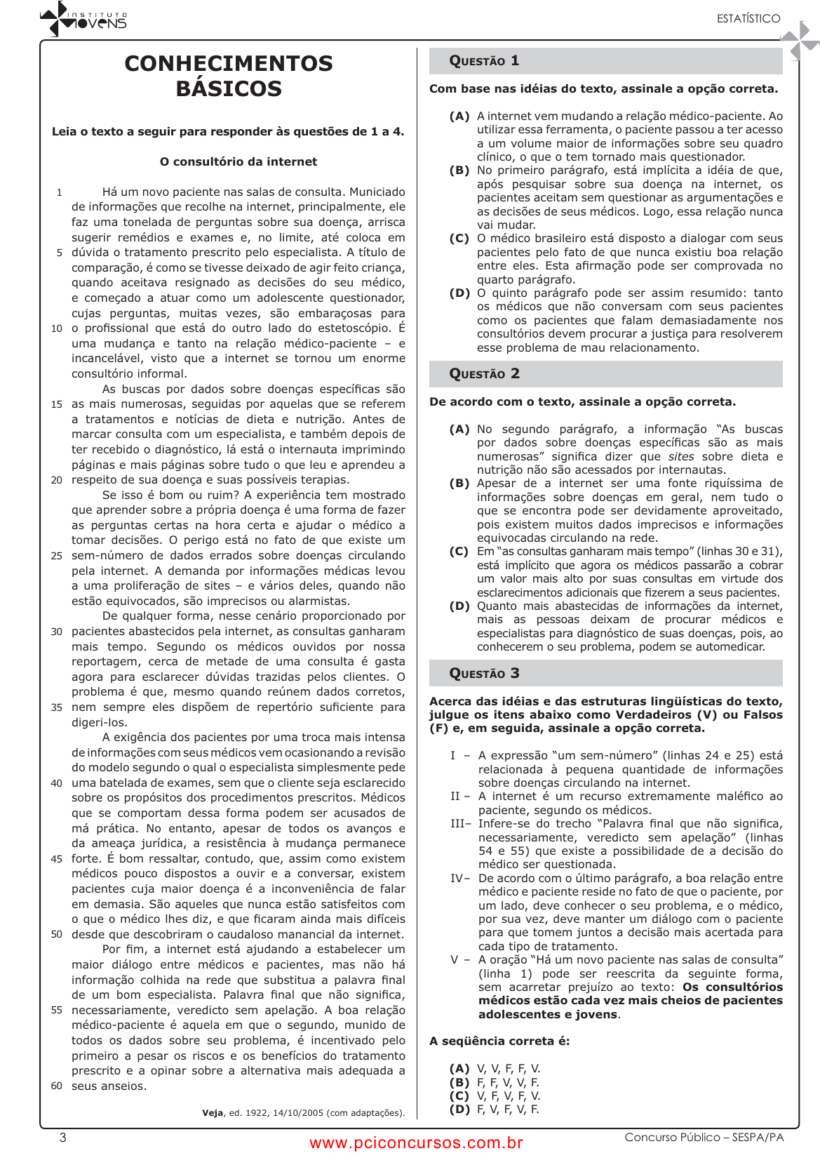 julgue os itens abaixo como Verdadeiros (V) ou Falsos