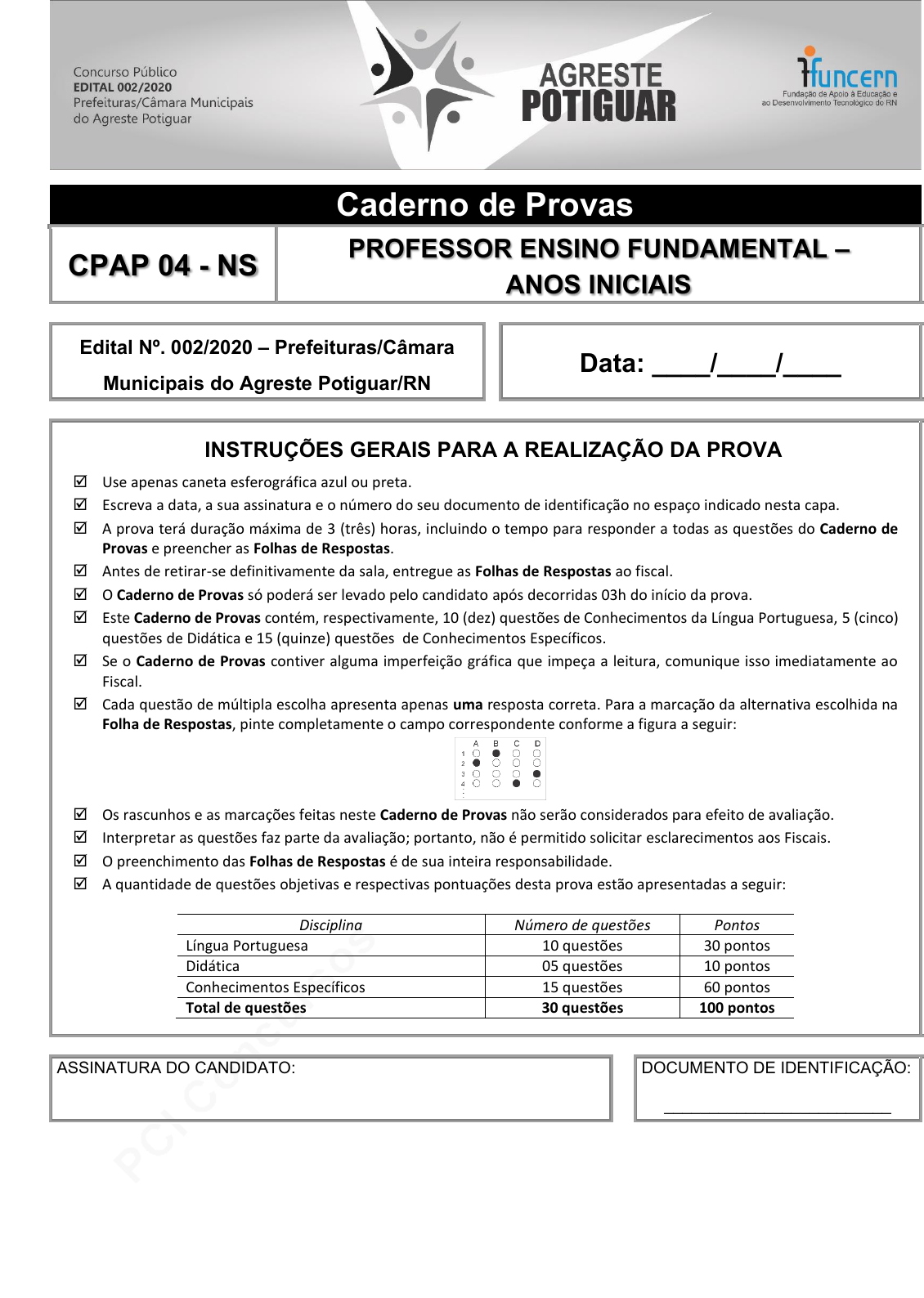 pcimarkpci MDAwMDowMDAwOjAwMDA6MDAwMDowMDAwOmZmZmY6MzZlOTpjMjU5:TW9uLCAxMyBTZXAgMjAyMSAwNjowNzozNyAtMDMwMA== Caderno de Provas CPAP 04 - NS PROFESSOR ENSINO FUNDAMENTAL – ANOS INICIAIS Edital Nº. 002/2020 – Prefeituras/Câmara Municipais do Agreste Potiguar/RN Data: ____/____/____ INSTRUÇÕES GERAIS PARA A REALIZAÇÃO DA PROVA Use apenas caneta esferográfica azul ou preta. Escreva a data, a sua assinatura e o número do seu documento de identificação no espaço indicado nesta capa. A prova terá duração máxima de 3 (três) horas, incluindo o tempo para responder a todas as questões do Caderno de Provas e preencher as Folhas de Respostas. Antes de retirar-se definitivamente da sala, entregue as Folhas de Respostas ao fiscal. O Caderno de Provas só poderá ser levado pelo candidato após decorridas 03h do início da prova. Este Caderno de Provas contém, respectivamente, 10 (dez) questões de Conhecimentos da Língua Portuguesa, 5 (cinco) questões de Didática e 15 (quinze) questões de Conhecimentos Específicos. Se o Caderno de Provas contiver alguma imperfeição gráfica que impeça a leitura, comunique isso imediatamente ao Fiscal. Cada questão de múltipla escolha apresenta apenas uma resposta correta. Para a marcação da alternativa escolhida na Folha de Respostas, pinte completamente o campo correspondente conforme a figura a seguir: Os rascunhos e as marcações feitas neste Caderno de Provas não serão considerados para efeito de avaliação. Interpretar as questões faz parte da avaliação; portanto, não é permitido solicitar esclarecimentos aos Fiscais. O preenchimento das Folhas de Respostas é de sua inteira responsabilidade. A quantidade de questões objetivas e respectivas pontuações desta prova estão apresentadas a seguir: Disciplina Número de questões Pontos Língua Portuguesa 10 questões 30 pontos Didática 05 questões 10 pontos Conhecimentos Específicos 15 questões 60 pontos Total de questões 30 questões 100 pontos ASSINATURA DO CANDIDATO: DOCUMENTO DE IDENTIFICAÇÃO: _________________________ pcimarkpci MDAwMDowMDAwOjAwMDA6MDAwMDowMDAwOmZmZmY6MzZlOTpjMjU5:TW9uLCAxMyBTZXAgMjAyMSAwNjowNzozNyAtMDMwMA== CONCURSO PÚBLICO – PREFEITURAS/CÂMARA MUNICIPAIS DO AGRESTE POTIGUAR/RN EDITAL Nº 002/2020 Concurso Público – Prefeituras/Câmara Municipais do Agreste Potiguar/RN – Nível Superior 2 QUESTÕES DE MÚLTIPLA ESCOLHA – LÍNGUA PORTUGUESA – NÍVEL SUPERIOR As questões de 1 a 10 referem-se ao texto reproduzido a seguir. Razões científicas para ler mais do que lemos IGNACIO MORGADO BERNAL O Brasil tem mais leitores a cada ano. Em 2011, eram 50% da população. Em 2015, eram 56%, segundo a pesquisa Retratos da Leitura no Brasil. Contudo, isso também significa que 44% da população não lê. Ainda pior: 30% nunca comprou um livro. Alguns argumentos científicos, em especial da neurociência, podem ajudar a melhorar esses índices. A leitura é um dos melhores exercícios possíveis para manter o cérebro e as capacidades mentais em forma.Isso é verdade porque a atividade de leitura exige colocar em jogo um importante número de processos mentais, entre os quais se destacam a percepção, a memória e o raciocínio.Quando lemos, ativamos principalmente o hemisfério esquerdo do cérebro, que é o da linguagem e o mais dotado de capacidades analíticas na maioria das pessoas, mas são muitas outras áreas do cérebro de ambos os hemisférios que são ativadas e intervêm no processo.Decodificar as letras, as palavras e as frases e transformá-las em sons mentais requer a ativação de grandes áreas do córtex cerebral. Os córtices occipital e temporal são ativados para ver e reconhecer o valor semântico das palavras, ou seja, o seu significado. O córtex frontal motor é ativado quando evocamos mentalmente os sons das palavras que lemos. As memórias evocadas pela interpretação do que foi lido ativam poderosamente o hipocampo e o lobo temporal medial. As narrativas e os conteúdos sentimentais do texto, seja ele ficcional ou não, ativam a amígdala e outras áreas emocionais do cérebro. O raciocínio sobre o conteúdo e a semântica do que foi lido ativa o córtex pré-frontal e a memória de trabalho, que é a que usamos para resolver problemas, planejar o futuro e tomar decisões. Está provado que a ativação regular dessa parte do cérebro desenvolve não apenas a capacidade de raciocinar, como também, em certa medida, a inteligência das pessoas. A leitura, em última análise, inunda de atividade o conjunto do cérebro e também reforça as habilidades sociais e a empatia, além de reduzir o nível de estresse do leitor. A esse respeito, devemos destacar o excelente trabalho de revisão do romancista e psicólogo Keith Oatley, da Universidade de Toronto, no Canadá, recentemente publicado na revista científica CellPress, intitulado: Fiction: Simulationof Social Worlds (Ficção: Simulação de Mundos Sociais), que destaca que a literatura de ficção é a simulação de nós mesmos em interação. Depois de uma rigorosa e elaborada revisão de dados e considerações sobre psicologia cognitiva, Oatley conclui que esse tipo de literatura, sendo uma exploração das mentes alheias, faz com que aquele que lê melhore sua empatia e sua compreensão dos outros, algo de que estamos muito necessitados. Essa conclusão ainda é avalizada por neuroimagens, ou seja, por dados científicos que exploram a atividade cerebral relacionada com esse tipo de emoções. A ficção que inclui personagens e situações complexas pode ter efeitos particularmente benéficos. Assim, e como exemplo, um trabalho recém- publicado mostra que a leitura de Harry Potter pode diminuir os preconceitos dos leitores. Tudo isso sem falar na satisfação e no bem-estar proporcionado pelo conhecimento adquirido e como esse conhecimento se transforma em memória cristalizada, que é a que temos como resultado da experiência. O livro e qualquer leitu