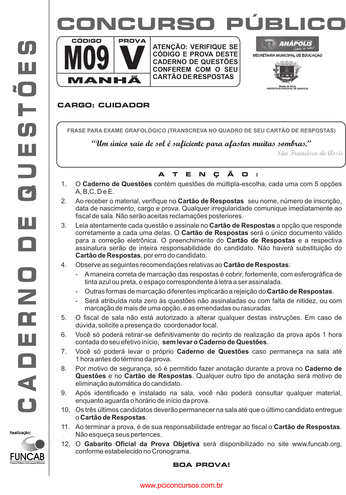PROVA V LINGUA PORTUGUESA MATEMATICA ANAPOLIS ASPECTOS CONHECIMENTOS GERAIS