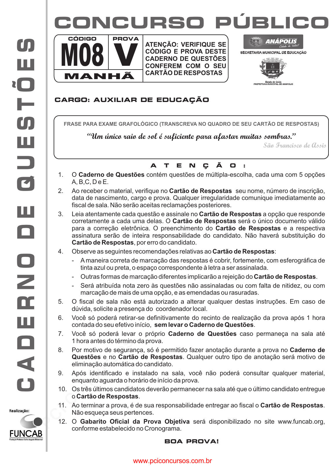 PROVA V LINGUA PORTUGUESA MATEMATICA ANAPOLIS ASPECTOS CONHECIMENTOS GERAIS