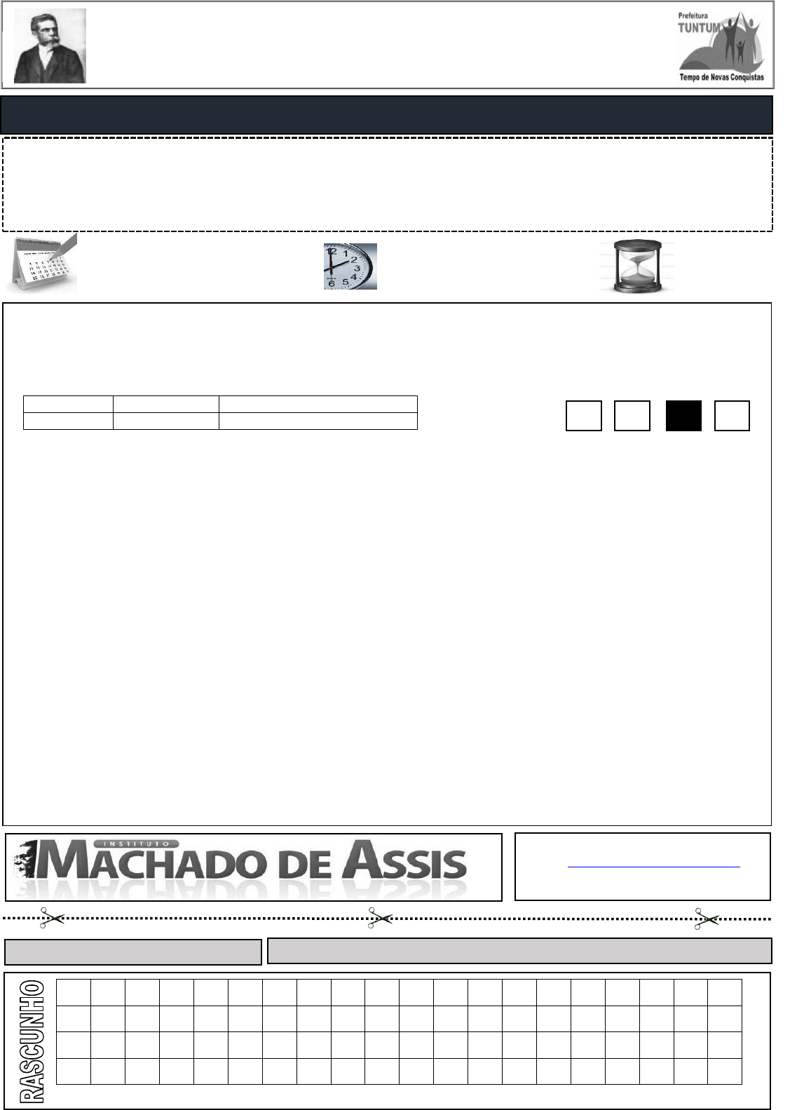 Página | 1RGO: COORDENADORCA CONCURSO PÚBLICO PREFEITURA MUNICIPAL DE TUNTUM-MA (EDITAL 001/2019) INSTITUTO MACHADO DE ASSIS 01 02 03 04 05 06 07 08 09 10 11 12 13 14 15 16 17 18 19 20 21 22 23 24 25 26 27 28 29 30 31 32 33 34 35 36 37 38 39 40 A B C A D Exemplo: COORDENADOR FOLHA DE ANOTAÇÃO DO GABARITO - ATENÇÃO: Esta parte somente deverá ser destacada pelo fiscal da sala, após o término da prova. CADERNO DE PROVA OBJETIVA ESTADO DO MARANHÃO PREFEITURA MUNICIPAL DE TUNTUM-MA CONCURSO PÚBLICO PARA PROVIMENTOS DE CARGOS EFETIVOS Leia atentamente as instruções abaixo. 01- Você recebeu do fiscal o seguinte material: a) Este Caderno, com 40 (quarenta) questões da Prova Objetiva, sem repetição ou falha, conforme distribuição abaixo. Examine se a prova está completa, se há falhas ou imperfeições gráficas que causem dúvidas. Português Matemática Conhecimentos Específicos 15 10 15 02- No Cartão de Respostas, a marcação da alternativa correta deve ser feita cobrindo a letra e preenchendo todo o espaço interno do quadrado, com caneta esferográfica de tinta na cor azul ou preta, de forma contínua e densa. 03- Para cada uma das questões objetivas, são apresentadas 4 (quatro) alternativas classificadas com as letras (A, B, C, D), mas só uma responde adequadamente à questão proposta. Você só deve assinalar uma alternativa. A marcação em mais de uma alternativa anula a questão, mesmo que uma das respostas esteja correta. 04- Será eliminado do Concurso Público o candidato que: a) Utilizar ou consultar cadernos, livros, notas de estudo, calculadoras, telefones celulares (ainda que desligados), papéis, apostilas, dentre outros. b) Ausentar-se da sala, a qualquer tempo, portando o Cartão de Respostas. Observações: Por motivo de segurança, o candidato só poderá retirar-se da sala após 1 (uma) hora a partir do início da prova. 05. O candidato somente poderá levar o Caderno de Questões caso saia da sala de aplicação de sua prova nos últimos 30 (trinta) minutos. 06. Não se comunique, em hipótese alguma, com outros candidatos. 07. Não é permitida a consulta a apontamentos, livros ou dicionários. 08 Qualquer questionamento sobre a prova deverá ser encaminhado por via de recurso de acordo com o edital para este concurso público. 09. O candidato que, por qualquer motivo ou recusa, não permanecer em sala durante o período mínimo estabelecido, terá o fato consignado em ata e será automaticamente eliminado do Concurso Público. 10. Confira, no Cartão-Resposta, o número de sua Inscrição, o cargo para o qual se inscreveu, seu nome e assine no espaço adequado. NOME DO (A) CANDIDATO (A): __________________________________________________________________________________________ Nº DE INSCRIÇÃO:_ ___________________________________________________________________________________________________ MAIS INFORMAÇÕES: Internet: www.institutomachadodeassis.com.br Telefone: (86) 3025-1017 E-mail: imaconcursotuntum@outlook.com INSTITUTO MACHADO DE ASSIS - IMA CARGO: DATA: 19 de maio de 2019 CONCURSO PÚBLICO EDITAL 001/20109 PREFEITURA MUNICIPAL DE TUNTUM-MA B A Exemplo: DA HORÁRIO: 14 h às 17h DURAÇÃO: 3 horas www.pciconcursos.com.br http://www.institutomachadodeassis.com.br/ 2| PáginaCOORDENADORCARGO: MA (EDITAL 001/2019)- INSTITUTO MACHADO DE ASSIS CONCURSO PÚBLICO PREFEITURA MUNICIPAL DE TUNTUM www.pciconcursos.com.br Página | 3CARGO: COORDENADOR CONCURSO PÚBLICO PREFEITURA MUNICIPAL DE TUNTUM-MA (EDITAL 001/2019) INSTITUTO MACHADO DE ASSIS AS QUESTÕES DE 1 A 15 ESTÃO RELACIONADAS AO TEXTO ABAIXO TEXTO O que torna a sonegação imoral é a premissa estabelecida pelo Estado de que se alguém deixar de 1 pagar o imposto de um determinado valor, o Estado lhe tirará algo de valor ainda maior, talvez a sua liberdade 2 ou, quem sabe, até a sua vida, se a resistência for extrema. 3 Negar que o Estado não possa ser financiado voluntariamente, é negar a própria realidade. Hoje, aqui 4 mesmo no Brasil, já há o financiamento voluntário do Estado quando alguém recorre ao judiciário para iniciar 5 um processo cível ou criminal. 6 Quem aceita que o governo deve apenas prover justiça e segurança não tem como concordar com essa 7 visão arcaica de que para proteger os direitos individuais, primeiro o governo precisa violá-los. Santo paradoxo! 8 Na verdade, o governo não precisaria dos impostos para financiar a justiça e a segurança, a população 9 pagaria por ela voluntariamente quando delas precisasse. 10 Os impostos têm sido usados para financiar outras coisas, entre elas aquilo que o governo se arroga o 11 privilégio de prover, mesmo que ninguém queira, mas acaba forçado a aceitar porque não lhe é permitido 12 escolher. Ou então, serve para pagar serviços estatais que alguns usufruem de graça, à custa dos outros. 13 Para financiar os serviços de justiça e até mesmo de segurança, já é utilizado o regime de pagamento 14 voluntário. No caso da justiça estatal ou privada, através da cobrança por demanda na forma de custas judiciais; 15 no caso da segurança, com a contratação de agências privadas. Quem usa, paga. No caso do judiciário, quem 16 perde a ação reembolsa. 17 O argumento de que o Estado é necessário é verdadeiro. É preciso que haja Estado para combater 18 quem inicia a violência contra terceiros, sejam os que iniciam o uso da força ou de fraude. Estado é um bem 19 necessário quando ele serve para proteger os direitos individuais. Torna-se um mal, quando passa a violá-los. 20 Os direitos individuais não são uma invenção arbitrária, como alguns teimam em querer demonstrar. 21 Eles são uma necessidade política dada a natureza racional do ser humano, que precisa para manter a sua vida, 22 agir com liberdade, criando valor e riqueza, para buscar a sua felicidade. 23 Atualmente, o judiciário é financiado também por impostos porque o volume de ações existentes, que 24 envolvem o pró