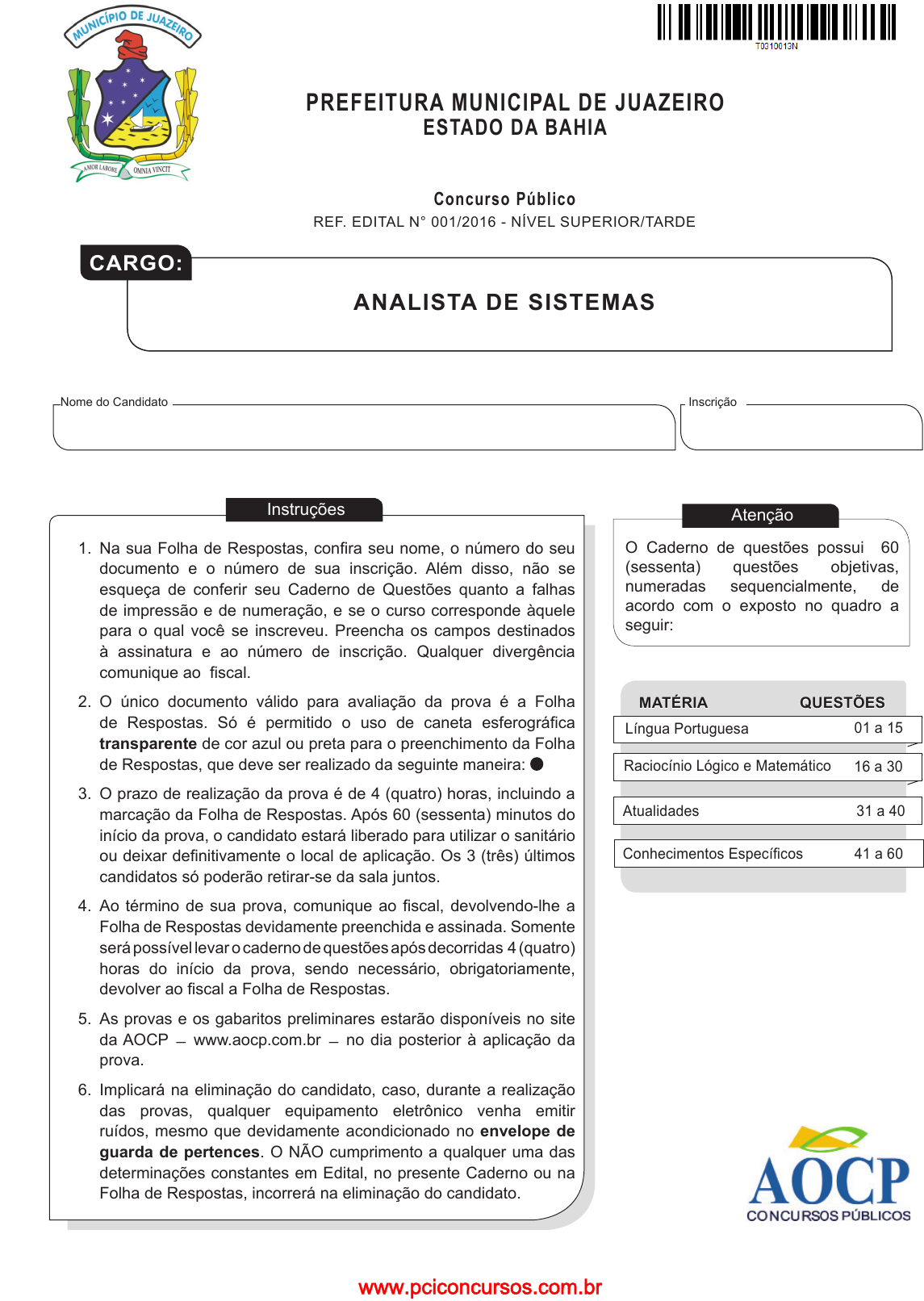 endereço eletrônico www.aocp.com.br no dia seguinte à aplicação da prova.