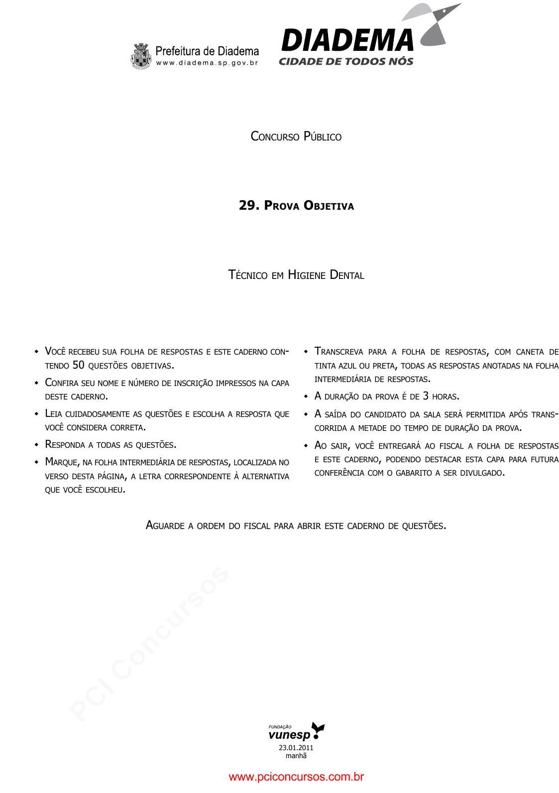 pcimarkpci MDAwMDowMDAwOjAwMDA6MDAwMDowMDAwOmZmZmY6MzZlOTpjMjU5:U2F0LCAxMSBTZXAgMjAyMSAxNDowNzo1NCAtMDMwMA== ConCurso PúbliCo 29. Prova objetiva TéCniCo em Higiene DenTal VoCê reCebeu sua folHa De resPosTas e esTe CaDerno Con- TenDo 50 quesTões objeTiVas. Confira seu nome e número De insCrição imPressos na CaPa DesTe CaDerno. leia CuiDaDosamenTe as quesTões e esColHa a resPosTa que VoCê ConsiDera CorreTa. resPonDa a ToDas as quesTões. marque, na folHa inTermeDiária De resPosTas, loCalizaDa no Verso DesTa Página, a leTra CorresPonDenTe à alTernaTiVa que VoCê esColHeu. TransCreVa Para a folHa De resPosTas, Com CaneTa De TinTa azul ou PreTa, ToDas as resPosTas anoTaDas na folHa inTermeDiária De resPosTas. a Duração Da ProVa é De 3 Horas. a saíDa Do CanDiDaTo Da sala será PermiTiDa aPós Trans- CorriDa a meTaDe Do TemPo De Duração Da ProVa. ao sair, VoCê enTregará ao fisCal a folHa De resPosTas e esTe CaDerno, PoDenDo DesTaCar esTa CaPa Para fuTura ConferênCia Com o gabariTo a ser DiVulgaDo. aguarDe a orDem Do fisCal Para abrir esTe CaDerno De quesTões. 23.01.2011 manhã www.pciconcursos.com.br pcimarkpci MDAwMDowMDAwOjAwMDA6MDAwMDowMDAwOmZmZmY6MzZlOTpjMjU5:U2F0LCAxMSBTZXAgMjAyMSAxNDowNzo1NCAtMDMwMA== 2PMDI1001/29-TécHigDental-manhã Folha intermediária de resPostas QUE STÃ O RESPOSTA 01 02 03 04 05 A B C D E A B C D E A B C D E A B C D E A B C D E 06 07 08 09 10 A B C D E A B C D E A B C D E A B C D E A B C D E 11 12 13 14 15 A B C D E A B C D E A B C D E A B C D E A B C D E 16 17 18 19 20 A B C D E A B C D E A B C D E A B C D E A B C D E QUE STÃ O RESPOSTA 26 27 28 29 30 A B C D E A B C D E A B C D E A B C D E A B C D E 31 32 33 34 35 A B C D E A B C D E A B C D E A B C D E A B C D E 36 37 38 39 40 A B C D E A B C D E A B C D E A B C D E A B C D E 41 42 43 44 45 A B C D E A B C D E A B C D E A B C D E A B C D E 21 22 23 24 25 A B C D E A B C D E A B C D E A B C D E A B C D E 46 47 48 49 50 A B C D E A B C D E A B C D E A B C D E A B C D E QUE STÃ O RESPOSTA www.pciconcursos.com.br pcimarkpci MDAwMDowMDAwOjAwMDA6MDAwMDowMDAwOmZmZmY6MzZlOTpjMjU5:U2F0LCAxMSBTZXAgMjAyMSAxNDowNzo1NCAtMDMwMA== 3 PMDI1001/29-TécHigDental-manhã Língua Portuguesa Leia o texto e responda às questões de números 01 a 07. Maratona para fazer o bem O processo é longo e pode envolver entrevista, dinâmica de grupo, cursos, estágio supervisionado, prova de conhecimentos ge- rais e formatura no final. Em muitos casos, quem falta é eliminado. A maratona, quem diria, não é para conseguir um emprego ou uma bolsa de estudos: é para fazer trabalho voluntário. Se antes bastava querer para doar seu tempo em prol de crianças pobres, pessoas doentes, deficientes ou das florestas do planeta, hoje não é bem assim. Organizações não governamentais estão profissio- nalizando o recrutamento de voluntários, promovendo seleções e cursos de capacitação que podem durar quase um ano. Os motivos para a mudança são muitos. A necessidade de preparar o voluntário para lidar com a metodologia da ONG, com o público atendido e com o ambiente de atuação é um deles. Outras razões são a tentativa de torná-lo mais comprometido – “um voluntário descompromissado e despreparado mais atrapalha do que ajuda”, dizem alguns – e a inevitabilidade de ter que selecionar diante de uma procura maior do que a demanda. Para Sílvia Naccache, coordenadora do CVSP (Centro de Voluntariado de São Paulo), trata-se de uma tendência, princi- palmente nas ONGs de São Paulo. “As pessoas vinham cheias de boa vontade, mas queriam fazer do jeito delas, a qualquer hora.” Segundo ela, o perfil dos voluntários vem mudando. “Antes era coisa de mulher, mais velha, aposentada. Hoje vemos muitos homens, jovens, pessoas que estão no mercado de trabalho.” Uma preocupação de ONGs que atuam em hospitais, por exemplo, é com a segurança em relação à contaminação. A pales- tra de segurança hospitalar é uma das que compõem a seleção da associação Viva e Deixe Viver, que atua com contação de histórias para crianças doentes. São todas aos sábados e, no fim, o candidato acompanha um contador mais experiente. É preciso pagar R$ 70 para cobrir as despesas. Entre a inscrição e o fim do processo, passa quase um ano. Cerca de um quinto dos 500 inscritos ficam até o final. “Na primeira palestra, o número já diminui pela metade. As pessoas têm o desejo genuíno de ajudar, mas, quando se exige dedicação, muitas desistem”, afirma Valdir Cimino, presidente da associação. Nos treinamentos, há respostas a questões como: E se uma criança no hospital pedir água? Você deve dar? Pois um voluntário que fez isso atrapalhou o jejum para um exame. Se ela quiser saber sobre a doença? Não, o papel é dos médicos. Enfim, não basta um exército de pessoas com boa vontade que não saibam lidar com situações tão delicadas. (Revista da Folha de S.Paulo. Adaptado) 01. O texto apresenta como tema central (A) as dificuldades das ONGs paulistas em serem aceitas em instituições hospitalares. (B) as exigências para selecionar pessoas interessadas em trabalhar como voluntários. (C) o processo de contratação de pessoas para trabalharem em empresas sustentáveis. (D) a importância de ONGs para complementar o trabalho oferecido pelo governo. (E) a contribuição do trabalho voluntário para a inclusão social de pessoas carentes. 02. De acordo com o texto, um dos propósitos dos cursos de formação de voluntários é (A) eliminar os candidatos que já estão inseridos no mercado de trabalho tradicional. (B) recrutar aqueles que têm experiência prévia comprovada na área do voluntariado. (C) arrecadar dinheiro para auxiliar as instituições que pre- cisarem de assistência financeira. (D) separar os candidatos que serão remunerados daqueles que não receberão remuneração. (E) fazer com que os voluntários se familiarizem com as diretrizes da ONG que deverão representar. 03. Leia a 