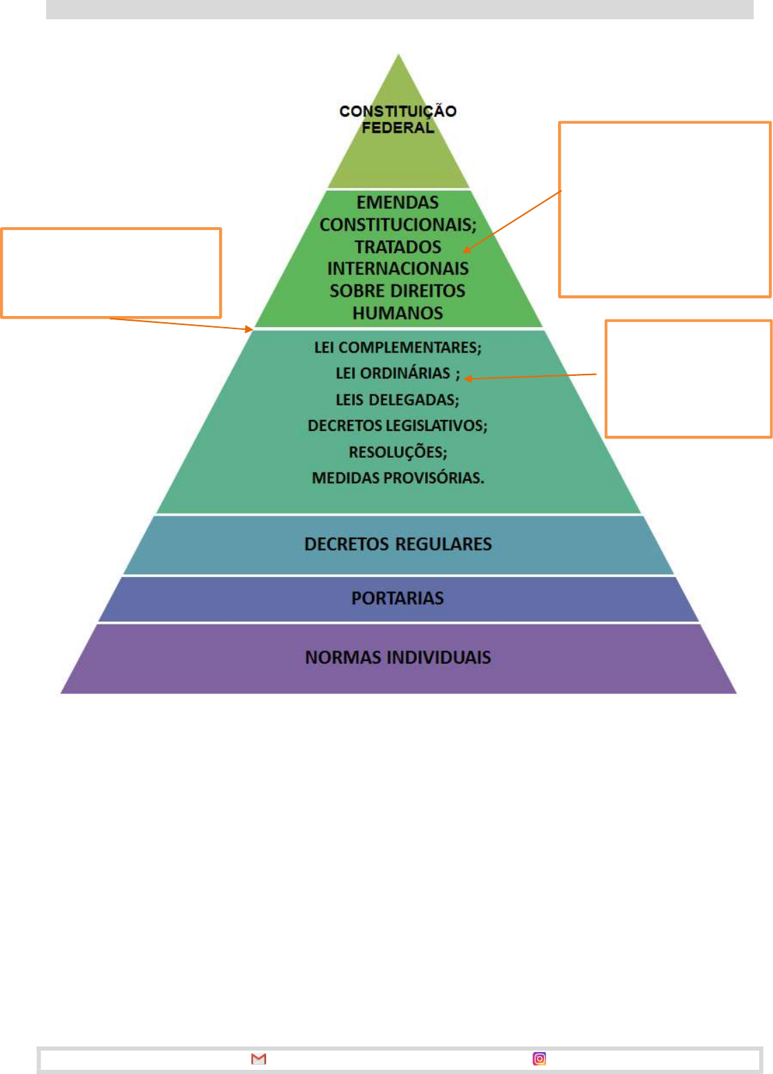 Sistematização Concursos sistematizacaoconcursos@gmail.com @sistematizacaoconcursos 9 PIRÂMIDE DE KELSEN CONSIDERAÇÕES: Não existe hierarquia entre normas constitucionais originárias. Não existe hierarquia entre normas constitucionais originárias e normas constitucionais derivadas, mas as originárias não podem ser objeto de controle de constitucionalidade enquanto que as derivadas (emendas) podem. Não adotamos a Tese de Bachof: cláusulas pétreas seriam superiores às demais normas constitucionais. ATENÇÃO: os tratados internacionais podem ingressar no ordenamento jurídico de 03 formas: Bloco de constitucionalidade Art. 5º, § 3º Supralegalidade direitos humanos Legalidade demais tratados serão equivalentes às leis ordinárias ou complementares. Art. 5º, § 3º Os tratados e convenções internacionais sobre direitos humanos que forem aprovados, em cada Casa do Congresso Nacional, em 2 turnos, por 3/5 dos votos dos respectivos membros, serão equivalentes às emendas constitucionais. Os demais tratados internacionais são equivalentes às leis ordinárias ou complementares, a depender da matéria. Os tratados de direitos humanos possuem natureza infraconstitucional (abaixo da CF e EC) e supralegal (acima das leis). Sistematização Concursos sistematizacaoconcursos@gmail.com @sistematizacaoconcursos 10 TRATADOS INTERNACIONAIS E INCORPORAÇÃO AO ORDENAMENTO JURÍDICO MATÉRIA FORMA DO REFERENDO (PROCESSO LEGISLATIVO) HIERARQUIA Tratado em matéria comum Decreto legislativo (art. 49, I, CF) Congresso Nacional Maioria simples: lei ordinária. Maioria absoluta: lei complementar Norma federal infraconstitucional ou legal Tratado sobre direitos humanos Decreto legislativo (art. 49, I, CF e art. 5º, § 2º) Congresso Nacional (maioria simples) Norma supralegal (materialmente constitucionais) Emenda Constitucional (art. 5º, § 3º) Congresso Nacional (votação nas 2 casas, em 2 turnos, aprovação de 3/5) Norma constitucional (material e formalmente constitucionais) ATENÇÃO Supralegalidade: subordinação dos tratados dos direitos humanos à Constituição, porém superioridade à legislação ordinária. TI de DH tem hierarquia supralegal ou constitucional. Não tem hierarquia legal. PROCESSO LEGISLATIVO TRATADO 1º Celebração (negociação + assinatura) do tratado, convenção ou ato internacional pelo Presidente da República (art. 84, VIII) em plano internacional. Negociação: discussão do texto do Tratado. Assinatura / Aceite: O Estado aceita de forma precária a celebração do tratado (o aceite não é definitivo, mas apenas uma manifestação dos Estados no sentido de que aceitam o texto e a forma). A competência para celebração não é exclusiva, ela pode ser delegada aos plenipotenciários (autoridades que possuem a Carta de Plenos Poderes). Tal carta é assinada pelo Presidente da República e referendada pelo Ministro das Relações Exteriores. 2º Referendo do Congresso Nacional: decide sobre a sua viabilidade e conveniência. Elabora-se o decreto legislativo (instrumento adequado para referendar e aprovar a decisão do Chefe do Executivo). 3º Ratificação: apenas o Presidente da República é habilitado a ratificar (confirmar) um tratado. Aqui surge a obrigatoriedade no plano Internacional, mas não no plano interno. 4º Promulgação + Publicação no Diário Oficial da União: produz efeitos na ordem jurídica interna. A incorporação por definitivo ao ordenamento jurídico interno é feita por decreto do Presidente da República. Efeitos desse decreto segundo o STF: a) a promulgação do tratado internacional; b) a publicação oficial de seu texto; e c) a executoriedade do ato internacional, que passa, então, e somente então, a vincular e a obrigar no plano do direito positivo interno”. Sistematização Concursos sistematizacaoconcursos@gmail.com @sistematizacaoconcursos 11 NORMAS CONSTITUCIONAIS RELACIONADAS AOS TRATADOS Art. 5º, § 1º As normas definidoras dos direitos e garantias fundamentais têm aplicação imediata. Art. 5º, § 2º Os direitos e garantias expressos nesta Constituição não excluem outros decorrentes do regime e dos princípios por ela adotados, ou dos tratados internacionais em que a República Federativa do Brasil seja parte. Art. 5º, § 3º Os tratados e convenções internacionais sobre direitos humanos que forem aprovados, em cada Casa do Congresso Nacional, em dois turnos, por três quintos dos votos dos respectivos membros, serão equivalentes às emendas constitucionais. Art. 49. É da competência exclusiva do Congresso Nacional: Art. 84. Compete privativamente ao Presidente da República: I - RESOLVER DEFINITIVAMENTE s obre tratados, acordos ou atos internacionais que acarretem encargos ou compromissos gravosos ao patrimônio nacional; VIII - CELEBRAR tratados, convenções e atos internacionais, sujeitos a referendo do Congresso Nacional; Art. 102. Compete ao Supremo Tribunal Federal, precipuamente, a guarda da Constituição, cabendo-lhe: Art. 104. O Superior Tribunal de Justiça compõe-se de, no mínimo, trinta e três Ministros. Art. 109. Aos juízes federais compete processar e julgar: III - julgar, mediante recurso extraordinário, as causas decididas em única ou última instância, quando a decisão recorrida: b) declarar a inconstitucionalidade de tratado ou lei federal; III - julgar, em recurso especial, as causas decididas, em única ou última instância, pelos Tribunais Regionais Federais ou pelos tribunais dos Estados, do Distrito Federal e Territórios, quando a decisão recorrida: a) contrariar tratado ou lei federal, ou negar-lhes vigência; III - as causas fundadas em tratado ou contrato da União com Estado estrangeiro ou organismo internacional; V - os crimes previstos em tratado ou convenção internacional, quando, iniciada a execução no País, o resultado tenha ou devesse ter ocorrido no estrangeiro, ou reciprocamente; § 5º Nas hipóteses de grave violação de direitos hum