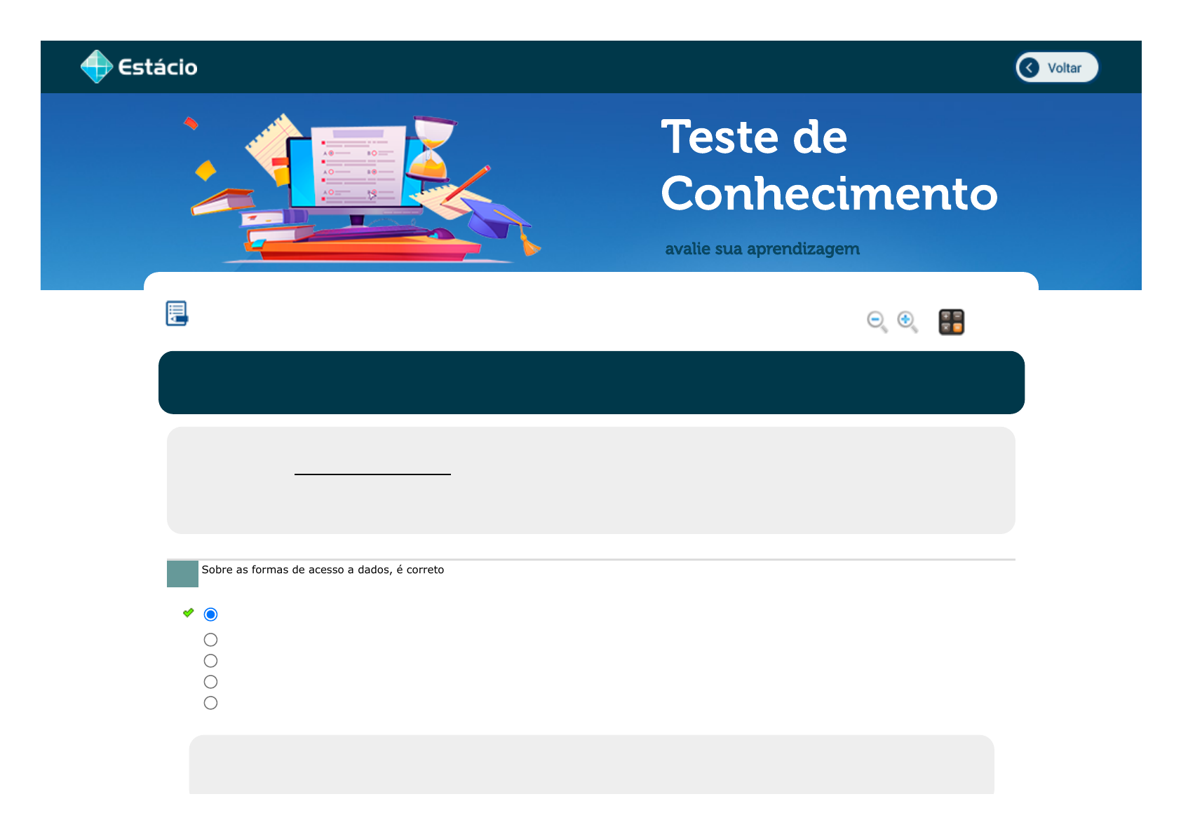 19/02/2022 12:24 Estácio: Alunos https://simulado.estacio.br/alunos/?p0=64343538&user_cod=5230569&matr_integracao=202103860303 1/7 Teste de Conhecimento avalie sua aprendizagem Sobre as formas de acesso a dados, é correto afirmar: DESENVOLV. WEB EM HTML5, CSS, JAVASCRIPT E PHP Lupa Calc. EEX0040_202103860303_TEMAS Aluno: PAULO HENRIQUE SILVA SANTOS Matr.: 202103860303 Disc.: DES WEB EM HTML5 2021.4 EAD (GT) / EX Prezado (a) Aluno(a), Você fará agora seu TESTE DE CONHECIMENTO! Lembre-se que este exercício é opcional, mas não valerá ponto para sua avaliação. O mesmo será composto de questões de múltipla escolha. Após responde cada questão, você terá acesso ao gabarito comentado e/ou à explicação da mesma. Aproveite para se familiarizar com este modelo de questões que será usado na sua AV e AVS. 1. É possível recuperar dados utilizando HTML, através de formulários, ou Javascript, através de APIs. Em ambos os casos é necessária ainda uma linguagem server side. A forma mais rápida para acesso a dados é fazendo uso unicamente de HTML. Um SGDB é capaz de recuperar dados e exibi-los diretamente no navegador. O Javascript possui uma estrutura própria para armazenamento e recuperação de dados, que pode substituir os bancos de dados tradicionais. Uma linguagem de programação server side, como o PHP, possui componentes próprios capazes de armazenar e recuperar dados. Data Resp.: 19/02/2022 12:19:28 Explicação: A resposta correta é: É possível recuperar dados utilizando HTML, através de formulários, ou Javascript, através de APIs. Em ambos os casos é necessária ainda uma linguagem server side. javascript:voltar(); javascript:voltar(); javascript:diminui(); javascript:aumenta(); javascript:calculadora_on(); 19/02/2022 12:24 Estácio: Alunos https://simulado.estacio.br/alunos/?p0=64343538&user_cod=5230569&matr_integracao=202103860303 2/7 Dentre as alternativas a seguir, assinale a que NÃO se aplica ao conceito de Design Responsivo: Analise o seguinte código escrito na linguagem JavaScript: 2. Um site responsivo utiliza apenas uma URL, servindo a todos os usuários, independentemente de seus dispositivos. Um sítio responsivo simplifica o desenvolvimento, pois só precisa de um código para os diversos dispositivos. Como uma estratégia de desenvolvimento, recomenda-se começar o design responsivo pelas interfaces maiores e mais complexas. O design de uma interface responsiva precisa entender o viewport, espaço de renderização da página. As consultas de mídias são essenciais para páginas responsivas, pois permitem adaptação do layout. Data Resp.: 19/02/2022 12:19:33 Explicação: A resposta correta é: Como uma estratégia de desenvolvimento, recomenda-se começar o design responsivo pelas interfaces maiores e mais complexas. 3. banana | laranja | limao | uva | laranja | uva | banana | uva | laranja | limao | laranja | uva | limao uva | Data Resp.: 19/02/2022 12:19:37 Explicação: A resposta correta é: laranja | uva | 19/02/2022 12:24 Estácio: Alunos https://simulado.estacio.br/alunos/?p0=64343538&user_cod=5230569&matr_integracao=202103860303 3/7 Numa discussão entre os programadores sobre os conceitos de AJAX (Asynchronous JavaScript and XML), as seguintes afirmações foram feitas: ( ) Permite atualizar dinamicamente o conteúdo, ou partes, de uma página Web. ( ) Embora usado no nome, a utilização da linguagem XML não é obrigatória. ( ) A XMLHttpRequest(XHR) é utilizada para enviar requisições pelo script para o lado client. Dê valores Verdadeiro (V) ou Falso (F) em cada afirmação e identifique a alternativa que apresenta a sequência correta (de cima para baixo): Dos códigos PHP apresentados em cada uma das alternativas a seguir, assinale aquele que apresenta estrutura sintática correta e que possa ser processado sem qualquer problema: 4. V - V - V F - F - V V - V - F F - F - F V - F - V Data Resp.: 19/02/2022 12:19:42 Explicação: A resposta correta é: V - V - F 5. Data Resp.: 19/02/2022 12:19:48 Explicação: A resposta correta é: 19/02/2022 12:24 Estácio: Alunos https://simulado.estacio.br/alunos/?p0=64343538&user_cod=5230569&matr_integracao=202103860303 4/7 A CSS permite alterar o comportamento padrão dos elementos HTML. Nesse sentido, a propriedade responsável por alterar a posição dos elementos é: O W3C é o consórcio internacional mantenedor dos padrões para a Web e uma de suas funções é a de cuidar da evolução da HTML, o que normalmente acontece com o lançamento de novas versões. Selecione a opção que não representa uma melhoria esperada em uma nova especificação HTML: O formulário é um elemento que permite interação do usuário e, consequentemente, que dados sejam enviados para um servidor Web. Neste contexto, assinale a afirmação correta: 6. Display Position Line-height Padding Border Data Resp.: 19/02/2022 12:19:53 Explicação: A resposta correta é: Position. LINGUAGEM DE MARCAÇÃO DE HYPERTEXTOHTML 7. Correção de problemas de compatibilidade. Criação de novas tags. Formalização de regras e características. Desenvolver novas funcionalidades para os navegadores, como a navegação por tabs, por exemplo. Criação de novos atributos. Data Resp.: 19/02/2022 12:19:57 Explicação: A resposta correta é: Desenvolver novas funcionalidades para os navegadores, como a navegação por tabs, por exemplo. 8. Como é o único elemento HTML que permite interação do usuário, formulário precisa ficar sozinho em 19/02/2022 12:24 Estácio: Alunos https://simulado.estacio.br/alunos/?p0=64343538&user_cod=5230569&matr_integracao=202103860303 5/7 A CSS3 tornou possível que novos tipos de fontes sejam usados nas páginas com a utilização da regra @font-face. Sobre o suporte a fontes na CSS3, analise as afirmações abaixo e assinale a alternativa que contém as corretas. I. A regra @font-face permite que fontes de diferentes formatos sejam declaradas, aumentando assim a compatibilidade entr