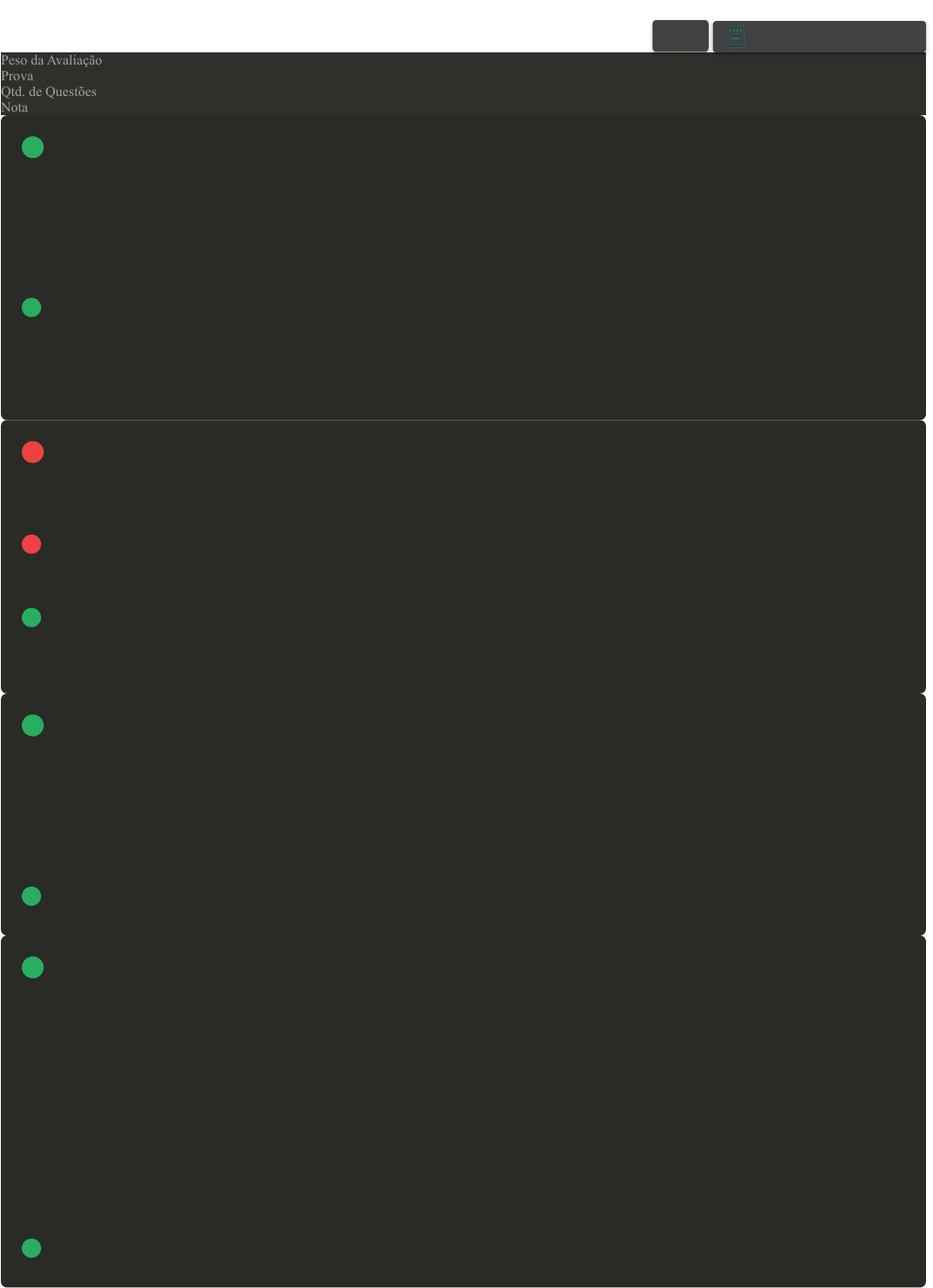 30/01/2023 19:55 Avaliação da Disciplina about:blank 1/5 Prova Impressa GABARITO | Avaliação da Disciplina (Cod.:698455) Peso da Avaliação 10,00 Prova 59484546 Qtd. de Questões 20 Nota 8,00 A elaboração do plano de negócios visa criar uma oportunidade para o empreendedor analisar todas as facetas da nova empresa e refletir sobre elas. Sobre os elementos que compõe o plano de negócios, assinale V para verdadeiro e F para falso nas afirmações que seguem: ( ) A análise de mercado apresenta aspectos importantes sobre a clientela, a concorrência e os fornecedores. ( ) O planejamento financeiro visa diferenciar investimentos de despesas administrativas. ( ) O plano de marketing visa definir o preço do serviço prestado ou da produção de determinado produto. Assinale a alternativa que apresenta a sequência correta de respostas: A V – F – V. B V – V – V. C F – V – V. D F – V – F. “O termo inglês “behavior” significa comportamento, daí se denominar esta tendência teórica de behaviorismo. Mas, também utilizamos outros nomes para designá-la, como comportamentalismo, teoria comportamental, análise experimental do comportamento” (FURTADO; TEXEIRA, 1992, p. 38). FONTE: FURTADO, A.; TEIXEIRA, M. O. Psicologias: uma introdução ao estudo de Psicologia. São Paulo: Saraiva, 1992. Qual teórico é considerado o fundador da teoria comportamentalista? A Burrhus Frederic Skinner. B Edward Thorndike. C John Broadus Watson. D Wolfgang Kohler. Conforme Vygotsky (2007, p. 107), “o encontro da criança com o mundo, desde seu nascimento, já implica em aprendizagem”. FONTE: VYGOTSKY, L. A formação social da mente. 7. ed. São Paulo: Martins Fontes, 2007. Na perspectiva de Vygotsky, a finalidade do processo de aprendizagem é: A O acesso à informação por meio das tecnologias. B A construção de valores tradicionais e patrióticos. C O controle do comportamento humano na escola. D A elaboração da consciência mediada pela cultura. “Conceituar inteligência não é tarefa fácil, pois não existe um conceito único de inteligência. Inteligência pode ser entendida como um conjunto de habilidades que podem ser estimuladas no contexto social; o conjunto que forma todas as características intelectuais de uma pessoa” (SALES; ARAÚJO, 2018, p. 684). FONTE: SALES, L. M. M.; ARAÚJO, A. V. A Teoria das Inteligências Múltiplas de Howard Gardner e o Ensino do Direito. Revista Novos Estudos Jurídicos – Eletrônica, v. 23, n. 2, p. 683-702, maio/ago. 2018. Disponível em: https://www.researchgate.net/publication/327432409_A_TEORIA_DAS_INTELIGENCIAS_MULTIPLAS_DE_HOWARD_GARDNER_E_O_ENSINO_DO_DIR Acesso em: 25 set. 2019 A inteligência é compreendida em Howard Gardner a partir da capacidade de: A Memorizar conteúdos. B Depurar informações. C Adquirir informações. D Solucionar problemas. VOLTAR A+ Alterar modo de visualização 1 2 3 4 30/01/2023 19:55 Avaliação da Disciplina about:blank 2/5 Com o desenvolvimento científico do período moderno, a escola apresentou novas perspectivas para a educação, que buscavam compreender o processo de aprendizagem do sujeito a partir de diversas concepções sobre a aprendizagem humana. Quais os tipos de métodos de ensino e aprendizagem que a instituição educativa na Idade Moderna contrapõe-se? A Pedagogia humanista, teorias da psicologia da educação e ensino coletivo. B Metodologias de ensino de imitação, ensino militar e teorias da aprendizagem. C Metodologias ativas de ensino, pedagogia humanista e métodos da cooperação. D Metodologias de ensino de repetição, pedagogia humanista e ensino coletivo. Segundo Costa e Santa Bárbara (2009, p. 2), “na Antiguidade observa-se a emergência de dois tipos diferenciados de educação que surgiram em dois modelos opostos, a pólis de Esparta e a de Atenas. Enquanto Esparta se deteve na fase guerreira e autoritária, Atenas chegou a um estágio de maior reconhecimento quanto a um tipo de educação formal, que se pautava na vida política democrática. ” FONTE: COSTA, L. P.; SANTA BÁRBARA, R. B. A Educação da criança na Idade Antiga e Média. In: Anais do VII Jornada de Estudos Antigos e Medievais. VI Ciclo de Estudos Antigos e Medievais. Edição: Universidade Estadual de Maringá. 2009, p. 1-15. Disponível em: http://www.ppe.uem.br/jeam/anais/2008/pdf/c008.pdf. Acesso em: 24 fev. 2020. Sobre o processo educativo na Antiguidade, classifique V para as sentenças verdadeiras e F para as falsas: ( ) Na Antiguidade, temos os primeiros registros do processo de sistematização da aprendizagem. ( ) Na Antiguidade, o processo educativo era primeiro responsabilidade do Estado, depois, da família. ( ) Na Roma antiga, o processo educativo fundamentava-se na memorização, na imitação e nos castigos. ( ) Na cidade de Esparta, privilegiava-se a instrução militar ao invés do ensino da leitura e da escrita. Assinale a alternativa que apresenta a sequência CORRETA: A F - V - V - F. B F - V - F - V. C V - F - F - F. D V - F - V - V. De acordo com Magalhães (2014, p. 32), para “implementar a aprendizagem cooperativa na sala de aula implica que o professor estruture devidamente o ambiente de aprendizagem, escolhendo-se criteriosamente os métodos a adotar.” FONTE: MAGALHÃES, A. M. A aprendizagem cooperativa enquanto estratégia para promoção da atenção dos alunos: o caso de uma turma do 10º ano na disciplina de economia A. Relatório da prática de ensino supervisionada. Mestrado em Ensino de Economia e Contabilidade. Lisboa: Universidade de Lisboa, 2014. Sobre as fases de implementação da aprendizagem cooperativa na sala de aula, associe os itens, utilizando o código a seguir: I - Pré-implementação. II - Implementação. III - Pós-implementação. ( ) Definição das regras para a construção do trabalho em equipe. ( ) Avaliação do trabalho realizado pelos grupos. ( ) Planejamento das atividades que os grupos participarão. Assinale a al