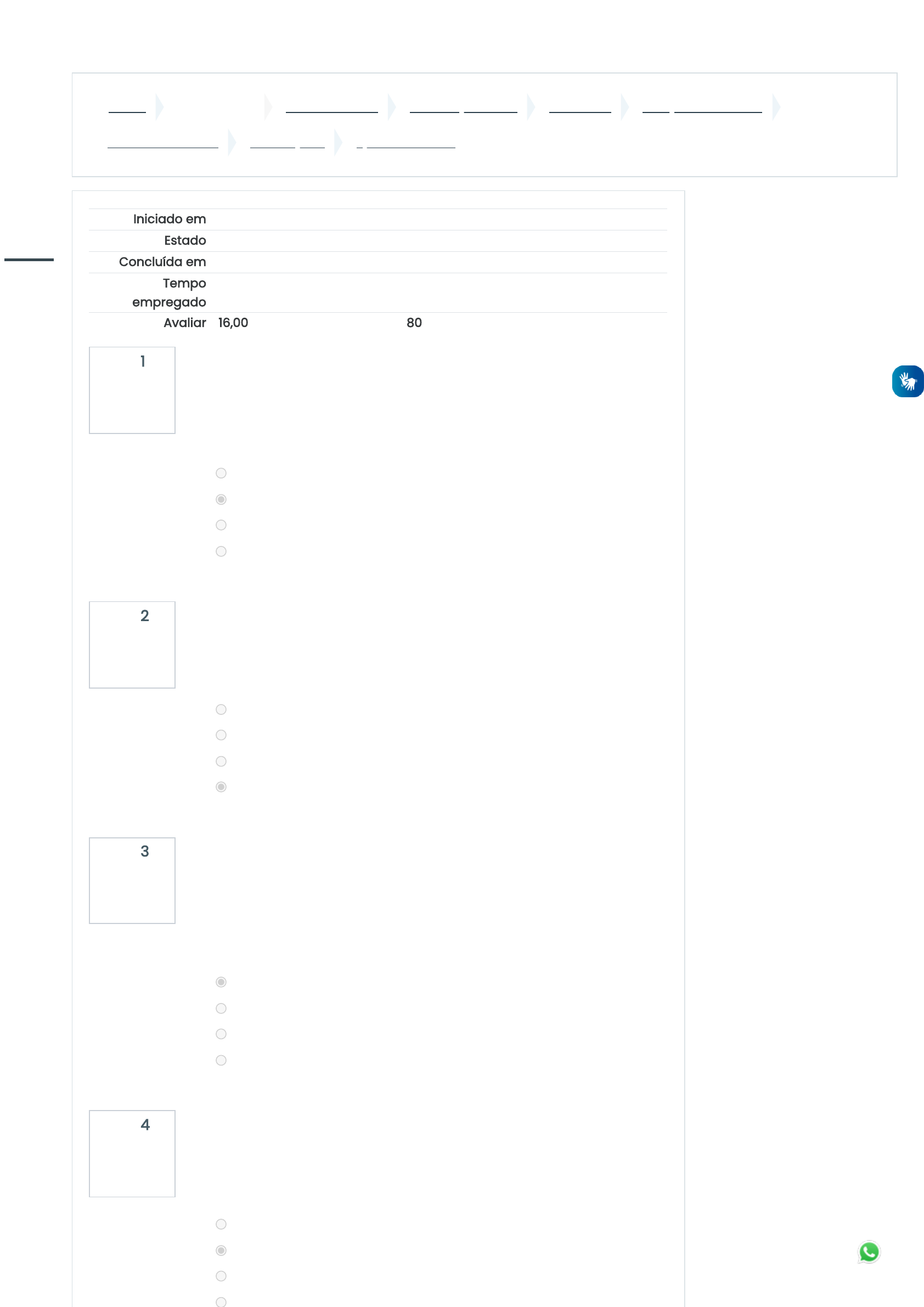 Painel Meus cursos CURSOS FUNEC Graduação - EAD Aluno EAD JUNÇÕES DE TURMA Materiais Elétricos AVALIAÇÕES QUESTIONÁRIO 2 Questão 1 Completo Atingiu 2,00 de 2,00 Questão 2 Completo Atingiu 2,00 de 2,00 Questão 3 Completo Atingiu 2,00 de 2,00 Questão 4 Completo Atingiu 2,00 de 2,00 Iniciado em Tuesday, 31 Jan 2023, 13:39 Estado Finalizada Concluída em Tuesday, 31 Jan 2023, 13:57 Tempo empregado 18 minutos 6 segundos Avaliar 16,00 de um máximo de 20,00(80%) Qual das características abaixo está associada à onda eletromagnética emitida pelo laser? Escolha uma opção: a. Possui frequência variável. b. Tem apenas uma cor. c. Possui várias cores ao mesmo tempo. d. Se dispersa facilmente. As ferrites duras podem ser utilizadas na seguinte aplicação: Escolha uma opção: a. Transformadores. b. Memórias de computadores. c. Fitas Magnéticas. d. Alto-falante Os materiais cujos dipolos magnéticos, quando expostos a um campo magnético, se alinham na direção contrária ao campo externo, são chamados de: Escolha uma opção: a. Antiferromagnéticos. b. Paramagnéticos. c. Ferrimagnéticos. d. Diamagnéticos. As cores vistas pelo olho humano, são classificadas como as cores do espectro visível. Qual o comprimento de onda máximo e mínimo que correspondem as cores vistas pelo ser humano? Escolha uma opção: a. 500nm a 600nm. b. 400nm a 750nm c. 750nm a 1000nm. d. 1nm a 500nm. https://ava.funec.br/my/ https://ava.funec.br/course/index.php?categoryid=10 https://ava.funec.br/course/index.php?categoryid=17 https://ava.funec.br/course/index.php?categoryid=19 https://ava.funec.br/course/index.php?categoryid=77 https://ava.funec.br/course/view.php?id=617 https://ava.funec.br/course/view.php?id=617#section-6 https://ava.funec.br/mod/quiz/view.php?id=13139 javascript:void(0); https://ava.funec.br/user/index.php?id=617 https://ava.funec.br/badges/view.php?type=2&id=617 https://ava.funec.br/admin/tool/lp/coursecompetencies.php?courseid=617 https://ava.funec.br/grade/report/index.php?id=617 https://ava.funec.br/my/ https://ava.funec.br/?redirect=0 https://ava.funec.br/calendar/view.php?view=month&course=617 javascript:void(0); https://ava.funec.br/user/files.php https://ava.funec.br/course/view.php?id=324 https://ava.funec.br/course/view.php?id=757 https://ava.funec.br/course/view.php?id=342 https://ava.funec.br/course/view.php?id=624 https://ava.funec.br/course/view.php?id=819 https://ava.funec.br/course/view.php?id=896 https://ava.funec.br/course/view.php?id=488 https://ava.funec.br/course/view.php?id=621 https://ava.funec.br/course/view.php?id=698 https://ava.funec.br/course/view.php?id=622 https://ava.funec.br/my/ Questão 5 Completo Atingiu 0,00 de 2,00 Questão 6 Completo Atingiu 0,00 de 2,00 Questão 7 Completo Atingiu 2,00 de 2,00 Questão 8 Completo Atingiu 2,00 de 2,00 d. 1nm a 500nm. Um capacitor de placas paralelas cheio de ar entre as placas de área de 2,30 cm² separadas por 1,50mm. I) Determine o valor da capacitância. II) O capacitor é conectado a uma bateria de 12,0V, qual a carga no capacitor? Escolha uma opção: a. 1,36 pF; 16,3 pC b. 1,36 nF; 16,9 mC c. 1,48 µF; 16,9 pC d. 1,36 µF; 16,3 µC Um capacitor de placas paralelas em ar tem espaçamento entre placas de 1,50 cm e área de placa de 25,0 cm². As placas estão carregadas com uma diferença de potencial de 250V e desconectadas da fonte. Depois, o capacitor é imerso em água destilada (água pura 20°C). Supondo que o líquido seja um isolante. Determine: I) a carga nas placas antes e depois da imersão; II) a capacitância após a imersão; III) a diferença de potencial após a imersão. Escolha uma opção: a. 0,369nC; 0,118nF; 312 V. b. 3,69 pC; 118 nF; 312 V. c. 36 µC; 1,18 nF; 3,12 mV. d. 369 pC; 118 pF; 3,12 V. Os materiais que não apresentam temperatura crítica são os: Escolha uma opção: a. Ferrimagnéticos. b. Ferromagnéticos. c. Diamagnéticos. d. Paramagnéticos. Suponha que um fóton tenha uma frequência de 1Hz. A energia deste fóton, aproximadamente, em Joules, é: Escolha uma opção: a. 3,21x10-17 J b. 5,55x1020 J c. 6,63x10-34 J d. 6,60x10-20 J javascript:void(0); https://ava.funec.br/user/index.php?id=617 https://ava.funec.br/badges/view.php?type=2&id=617 https://ava.funec.br/admin/tool/lp/coursecompetencies.php?courseid=617 https://ava.funec.br/grade/report/index.php?id=617 https://ava.funec.br/my/ https://ava.funec.br/?redirect=0 https://ava.funec.br/calendar/view.php?view=month&course=617 javascript:void(0); https://ava.funec.br/user/files.php https://ava.funec.br/course/view.php?id=324 https://ava.funec.br/course/view.php?id=757 https://ava.funec.br/course/view.php?id=342 https://ava.funec.br/course/view.php?id=624 https://ava.funec.br/course/view.php?id=819 https://ava.funec.br/course/view.php?id=896 https://ava.funec.br/course/view.php?id=488 https://ava.funec.br/course/view.php?id=621 https://ava.funec.br/course/view.php?id=698 https://ava.funec.br/course/view.php?id=622 https://ava.funec.br/my/ Questão 9 Completo Atingiu 2,00 de 2,00 Questão 10 Completo Atingiu 2,00 de 2,00 Os materiais magnéticos podem ser classificados em moles e duros. É um exemplo de material magnético duro: Escolha uma opção: a. Alnico. b. Ferro. c. Alumínio. d. Ferro-silício. Um tipo de detectores fotovoltaicos consiste nas chamadas junções p-n. O princípio de funcionamento de dispositivos desta categoria consiste. Escolha uma opção: a. Na mudança do espectro por fótons. b. Na criação (aumento) de elétrons e lacunas na vizinhança da junção, pela absorção de fótons. c. No aumento da energia cinética dos elétrons com absorção dos fótons. d. No aumento da difusividade dos átomos. Manter contato RA (33) 99986-3935 secretariaead@funec.br Obter o aplicativo para dispositivos móveis tel:RA (33) 99986-3935 mailto:secretariaead@funec.br https://www.facebook.com/caratingaunec https://twitter.com/caratingaunec https://download.moodle.org/mobile?version=2019052001.02&lang=pt_br