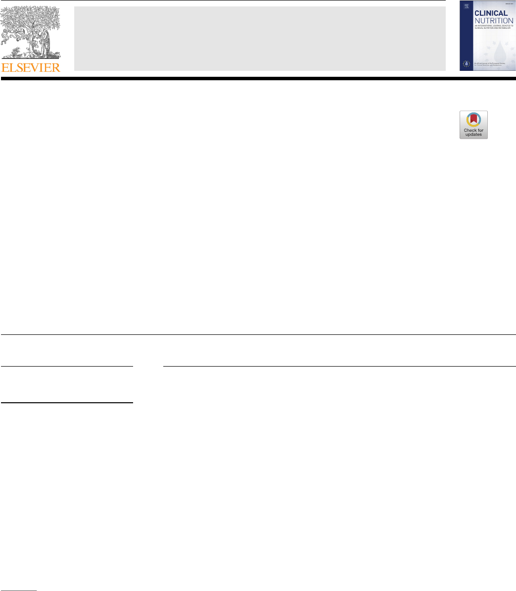 lable at ScienceDirect Clinical Nutrition 41 (2022) 958e989 Contents lists avai Clinical Nutrition journal homepage: http: / /www.elsevier .com/locate/c lnu ESPEN Guideline ESPEN practical guideline: Clinical nutrition and hydration in geriatrics Dorothee Volkert a, *, Anne Marie Beck b, Tommy Cederholm c, d, Alfonso Cruz-Jentoft e, Lee Hooper f, Eva Kiesswetter a, Marcello Maggio g, Agathe Raynaud-Simon h, Cornel Sieber a, i, Lubos Sobotka j, Dieneke van Asselt k, Rainer Wirth l, Stephan C. Bischoff m a Institute for Biomedicine of Aging, Friedrich-Alexander-Universit€at Erlangen-Nürnberg, Nuremberg, Germany b Dietetic and Nutritional Research Unit, Herlev and Gentofte University Hospital, University College Copenhagen, Faculty of Health, Institute of Nutrition and Nursing, Copenhagen, Denmark c Department of Public Health and Caring Sciences, Division of Clinical Nutrition and Metabolism, Uppsala University, Uppsala, Sweden d Theme Inflammation and Aging, Karolinska University Hospital, Stockholm, Sweden e Servicio de Geriatría, Hospital Universitario Ram�on y Cajal (IRYCIS), Madrid, Spain f Norwich Medical School, University of East Anglia, Norwich, UK g Department of Medicine and Surgery, University of Parma, Geriatric-Rehabilitation Department, Parma University Hospital, Parma, Italy h APHP, Department of Geriatrics, Bichat Hospital, University of Paris, Paris, France i Department of Medicine, Kantonsspital Winterthur, Winterthur, Switzerland j Third Department of Medicine, Medical Faculty and Faculty Hospital Hradec Kralove, Charles University, Czech Republic k Department of Geriatric Medicine of the Radboud University Medical Center, Nijmegen, the Netherlands l Marien Hospital Herne, Ruhr-Universit€at Bochum, Herne, Germany m Department for Clinical Nutrition, University of Hohenheim, Stuttgart, Germany a r t i c l e i n f o Article history: Received 26 January 2022 Accepted 26 January 2022 Keywords: Guideline Recommendations Geriatrics Malnutrition Dehydration Obesity Abbreviations: BMI, body mass index; BW, body w nutrition; RCT, randomized controlled trial; REE, rest Based on, ESPEN Guideline on Clinical Nutrition an Raynaud-Simon A, Sieber CC, Sobotka L, van Asselt D, W * Corresponding author. E-mail address: dorothee.volkert@fau.de (D. Volke https://doi.org/10.1016/j.clnu.2022.01.024 0261-5614/© 2022 European Society for Clinical Nutr s u m m a r y Background: Malnutrition and dehydration are widespread in older people, and obesity is an increasing problem. In clinical practice, it is often unclear which strategies are suitable and effective in counter- acting these key health threats. Aim: To provide evidence-based recommendations for clinical nutrition and hydration in older persons in order to prevent and/or treat malnutrition and dehydration. Further, to address whether weight- reducing interventions are appropriate for overweight or obese older persons. Methods: This guideline was developed according to the standard operating procedure for ESPEN guidelines and consensus papers. A systematic literature search for systematic reviews and primary studies was performed based on 33 clinical questions in PICO format. Existing evidence was graded according to the SIGN grading system. Recommendations were developed and agreed in a multistage consensus process. Results: We provide eighty-two evidence-based recommendations for nutritional care in older persons, covering four main topics: Basic questions and general principles, recommendations for older persons with malnutrition or at risk of malnutrition, recommendations for older patients with specific diseases, and recommendations to prevent, identify and treat dehydration. Overall, we recommend that all older persons shall routinely be screened for malnutrition in order to identify an existing risk early. Oral nutrition can be supported by nursing interventions, education, nutritional counselling, food modifica- tion and oral nutritional supplements. Enteral nutrition should be initiated if oral, and parenteral if enteral nutrition is insufficient or impossible and the general prognosis is altogether favorable. Dietary restrictions should generally be avoided, and weight-reducing diets shall only be considered in obese older persons with weight-related health problems and combined with physical exercise. All older eight; EN, enteral nutrition; MNA, Mini Nutritional Assessment; ONS, oral nutritional supplements; PN, parenteral ing energy expenditure; SLR, systematic literature review. d Hydration in Geriatrics: Volkert D, Beck AM, Cederholm T, Cruz-Jentoft A, Goisser S, Hooper L, Kiesswetter E, Maggio M, irth R, Bischoff SC. ESPEN guideline on clinical nutrition and hydration in geriatrics. Clin Nutr. 2019;38:10-47. rt). ition and Metabolism. Published by Elsevier Ltd. All rights reserved. mailto:dorothee.volkert@fau.de http://crossmark.crossref.org/dialog/?doi=10.1016/j.clnu.2022.01.024&domain=pdf www.sciencedirect.com/science/journal/02615614 http://www.elsevier.com/locate/clnu https://doi.org/10.1016/j.clnu.2022.01.024 https://doi.org/10.1016/j.clnu.2022.01.024 https://doi.org/10.1016/j.clnu.2022.01.024 D. Volkert, A.M. Beck, T. Cederholm et al. Clinical Nutrition 41 (2022) 958e989 Fig. 1. Main struc persons should be considered to be at risk of low-intake dehydration and encouraged to consume adequate amounts of drinks. Generally, interventions shall be individualized, comprehensive and part of a multimodal and multidisciplinary team approach. Conclusion: A range of effective interventions is available to support adequate nutrition and hydration in older persons in order to maintain or improve nutritional status and improve clinical course and quality of life. These interventions should be implemented in clinical practice and routinely used. © 2022 European Society for Clinical Nutrition and Metabolism. Published by Elsevier Ltd. All rights reserved. 1. Introduction Older persons, usually defined by an age of 65 yea