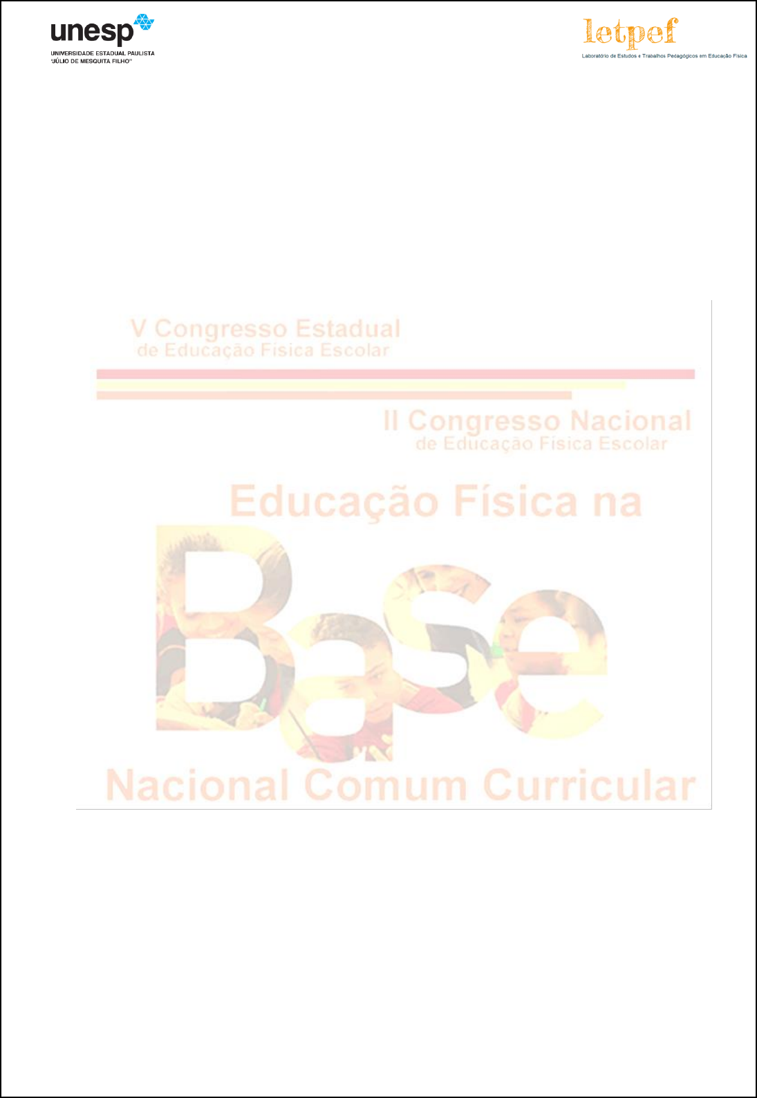 V CONGRESSO ESTADUAL DE EDUCAÇÃO FÍSICA ESCOLAR II CONGRESSO NACIONAL DE EDUCAÇÃO FÍSICA ESCOLAR “Educação Física na Base Nacional Comum Curricular” ANAIS V Congresso Estadual de Educação Física Escolar e II Congresso Nacional de Educação Física Escolar – “EDUCAÇÃO FÍSICA NA BASE NACIONAL COMUM CURRICULAR” DATA: 09, 10 e 11 de Setembro de 2016 LOCAL: Universidade Estadual Paulista “Julio de Mesquita Filho” – UNESP, Câmpus Rio Claro V CONGRESSO ESTADUAL DE EDUCAÇÃO FÍSICA ESCOLAR II CONGRESSO NACIONAL DE EDUCAÇÃO FÍSICA ESCOLAR “Educação Física na Base Nacional Comum Curricular” PROGRAMAÇÃO 09 de setembro de 2016 15h – 16h: Entrega de materiais 16h – 18h15: Minicursos (Bloco A) Esporte – Ensino Fundamental I Ginástica – Ensino Fundamental II Esporte de combate – Ensino Médio Práticas Corporais de Aventura – Ensino Fundamental II 18h30 – 20h00: Abertura do evento e Mesa Redonda – “Os conteúdos da Educação Física escolar na BNCC: Novas perspectivas” Prof. Dr. André Luís Ruggiero Barroso (Esportes) Prof. Dndo. Alexander Klein Tahara (Práticas Corporais de Aventura) Prof. Dndo. Glauber Bedini de Jesus (Lutas) 20h-22h – Confraternização 10 de Setembro de 2016 8h – 9h: Palestra “Educação Física na Base Nacional Comum Curricular” Prof. Dra. Suraya Cristina Darido (UNESP/Rio Claro) 9h – 10h: Apresentações de Pôsteres 10h – 10h15: Coffee Break 10h15 – 12h30: Minicursos (Bloco B) • Esporte – Ensino Fundamental II V CONGRESSO ESTADUAL DE EDUCAÇÃO FÍSICA ESCOLAR II CONGRESSO NACIONAL DE EDUCAÇÃO FÍSICA ESCOLAR “Educação Física na Base Nacional Comum Curricular” • Ginástica – Ensino Fundamental I • Dança – Ensino Médio • Lutas – Ensino Fundamental I 14h – 15h30: Apresentações Orais (Tema livre) 15h30 – 15h45: Coffee Break 15h45 – 18h00: Minicursos (Bloco B) • Esporte – Ensino Fundamental II • Ginástica – Ensino Fundamental I • Dança – Ensino Médio • Lutas – Ensino Fundamental I 18h30 – 20h00: Mesa Redonda – “Os conteúdos da Educação Física escolar na BNCC: Novas perspectivas” Profa. Dnda. Irlla Karla dos Santos (Dança) Profa. Dnda. Aline Fernanda Ferreira (Brincadeiras e Jogos) Prof. Me. Vitor Abdias Cabót Germano (Ginástica) 11 de setembro de 2016 8h – 9h30: Apresentações Orais (Tema livre e Tema livre especial) 9h30 – 9h45: Coffee Break 9h45 – 12h: Minicursos (Bloco A) • Esporte – Ensino Fundamental I • Ginástica – Ensino Fundamental II • Esporte de combate – Ensino Médio • Práticas Corporais de Aventura – Ensino Fundamental II 12h – 12h30: Encerramento e premiação de trabalhos V CONGRESSO ESTADUAL DE EDUCAÇÃO FÍSICA ESCOLAR II CONGRESSO NACIONAL DE EDUCAÇÃO FÍSICA ESCOLAR “Educação Física na Base Nacional Comum Curricular” 1 EDUCAÇÃO FÍSICA NA BASE NACIONAL COMUM CURRICULAR: REFLETINDO SOBRE OS DESAFIOS DIDÁTICOS DE ENSINAR E AVALIAR Daniel Teixeira Maldonado Instituto Federal de Educação, Ciência e Tecnologia - SP danieltmaldonado@yahoo.com.br Ao ler a 2º versão da Base Nacional Comum Curricular (BNCC), publicada no mês de maio de 2016, observamos que foram descritos alguns desafios para que a proposta da organização curricular da Educação Física (EF) se materialize no cotidiano escolar. Os desafios didáticos de elaborar estratégias para ensinar e avaliar, em uma perspectiva coerente aos propósitos da EF, como componente da área das Linguagens, são aqueles que mais despertaram o nosso interesse, principalmente porque entendemos que os docentes desse componente curricular ainda possuem dificuldade de utilizar instrumentos de avaliação que possibilitem compreender o que os alunos estão aprendendo nessas aulas. Nesse sentido, o objetivo desse estudo foi descrever uma experiência pedagógica sobre a utilização de diferentes instrumentos avaliativos que podem ser utilizados para estimular o posicionamento crítico e a produção de conhecimento sobre os temas que envolvem as práticas corporais de alunos da educação básica. Descrevemos um relato de experiência de nossas práticas avaliativas nas aulas de EF com alunos do ensino fundamental e médio de uma escola municipal, uma escola técnica de nível estadual e uma escola técnica de nível federal, localizadas na cidade de São Paulo, entre os anos de 2012 e 2016. Os instrumentos de avaliação utilizados foram: análises de reportagens, produções de textos, análise de filmes, produção de cartas, produção de desenhos e criação de jogos realizados pelos alunos. Concluímos que os docentes desse componente curricular necessitam criar uma nova tradição didática – avaliativa em suas aulas, estimulando o pensamento crítico dos discentes durante o processo avaliativo. Somente dessa forma conseguiremos vivenciar, analisar, refletir e debater sobre os objetivos educacionais relacionados com as manifestações da cultura corporal de movimento propostos pela BNCC. Palavras chave: Educação Física Escolar; Avaliação; Base Nacional Curricular Comum. mailto:danieltmaldonado@yahoo.com.br V CONGRESSO ESTADUAL DE EDUCAÇÃO FÍSICA ESCOLAR II CONGRESSO NACIONAL DE EDUCAÇÃO FÍSICA ESCOLAR “Educação Física na Base Nacional Comum Curricular” 2 AVALIAÇÃO EM EDUCAÇÃO FÍSICA ESCOLAR: O OLHAR DO PROFESSOR Marcela Galvão Dinelli Universidade Estadual de Campinas mgdinelli@hotmail.com Partindo de inquietações acerca do processo de avaliação da aprendizagem da disciplina de Educação Física na escola, este trabalho objetivou compreender o olhar de um professor no dia-a-dia de sua prática avaliativa. Para isso foram observadas 30 horas de aulas de Educação Física de turmas de ciclo I do ensino fundamental em uma escola Estadual da cidade de Campinas, São Paulo. Além disso, foram realizadas duas entrevistas com o docente. As análises do campo e das entrevistas foram possíveis a parti