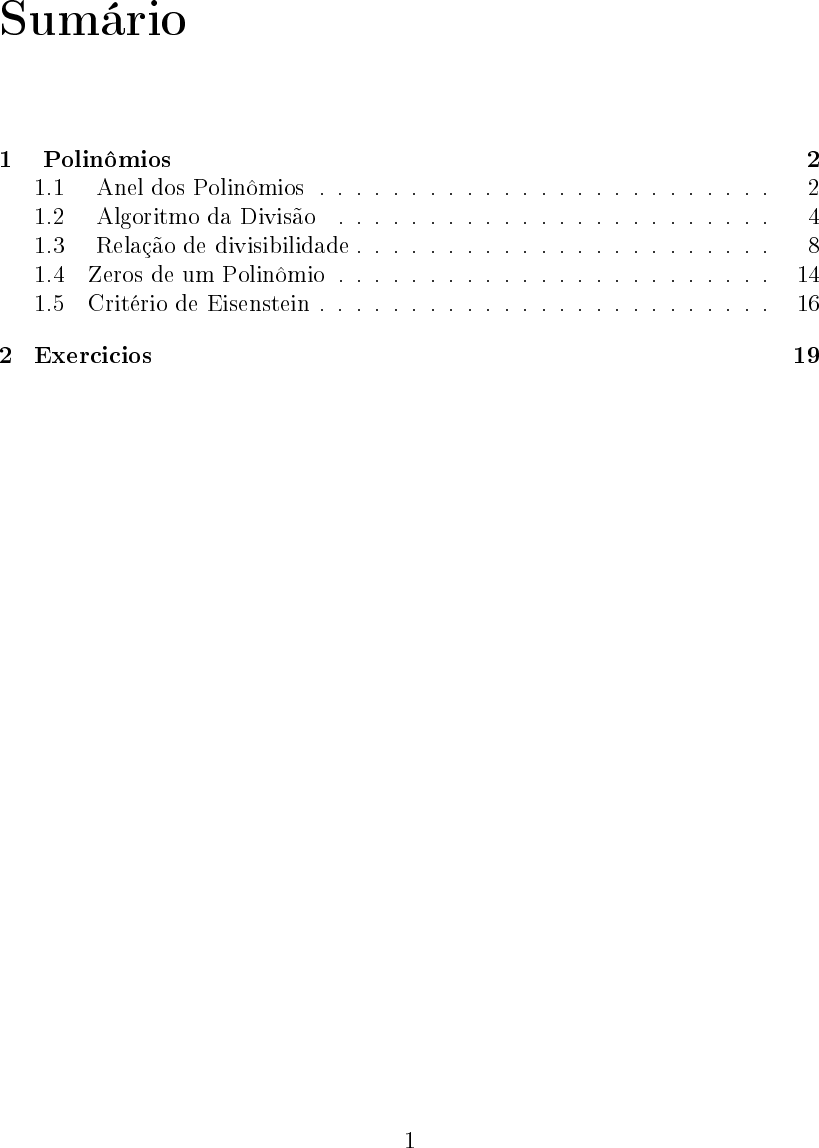 1.1 Anel dos Polinômios . . . . . . . . . . . . . . . . . . . . . . . . . 2