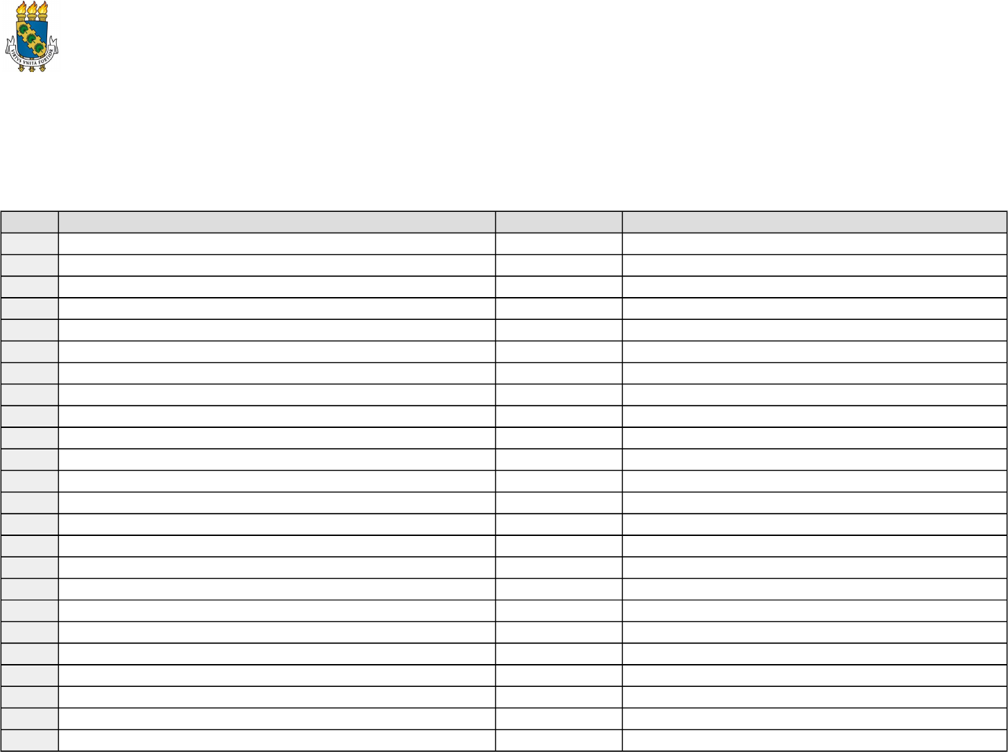 Página 1 de 16 UNIVERSIDADE FEDERAL DO CEARÁ PRÓ-REITORIA DE ASSUNTOS ESTUDANTIS COORDENADORIA DE ASSISTÊNCIA ESTUDANTIL DIVISÃO DE GESTÃO DE BENEFÍCIOS RESULTADO FINAL DO PROCESSO SELETIVO DA BOLSA DE INICIAÇÃO ACADÊMICA CAMPUS FORTALEZA INDEFERIDOS Seq. NOME MATRICULA MOTIVO DO INDEFERIMENTO 1 AARON RODRIGUES DE LIMA FRANKLIN 422735 Não entregou documentação 2 ABRAAO LINCON PINHEIRO BASTOS 399382 Não entregou documentação 3 AIDEE ARAUJO DE OLIVEIRA 408774 Documentação Incompleta 4 ALDAYR DE OLIVEIRA MONTEIRO 382754 Graduado 5 ALEXCYA LOPES ALEXANDRE 359590 Não entregou documentação 6 ALINE MARIA DA SILVA FREITAS 380824 Não entregou documentação 7 ALINE MARIA DA SILVA RODRIGUES 379298 Não entregou documentação 8 ALISSON ANTONIO MENDONCA MORAES 405042 Não entregou documentação 9 ALYNE MARA ARAUJO AMANCIO 421732 Não entregou documentação 10 ALYSON FREITAS DE SOUSA 366212 Não entregou documentação 11 ALYSSON BRUNO DE CASTRO DAVI 373525 Não entregou documentação 12 ALYSSON MORAIS DE QUEIROZ 392253 Não entregou documentação 13 AMANDA DE LIMA AURELIANO 394846 Não entregou documentação 14 ANA ANGELICA AMARO EVANGELISTA 408409 Não entregou documentação 15 ANA BEATRIZ COSTA 403936 Não entregou documentação 16 ANA BEATRIZ FERREIRA DE BRITO 388736 Não entregou documentação 17 ANA CAROLINA SANTOS LUZ 322548 Não entregou documentação 18 ANA CAROLINE CARVALHO DE MELO 403784 Não entregou documentação 19 ANA DAMARIS COSTA RAMOS 415250 Não entregou documentação 20 ANA ELLEN DO NASCIMENTO SANTOS 375636 Não entregou documentação 21 ANA JESSICA COSTA DELFINO 397740 Documentação Incompleta 22 ANA JESSICA DOS SANTOS SOUSA 364387 Não entregou documentação 23 ANA JESSIKA SOUSA BRAGA 320087 Matriculado em menos de 12 créditos 24 ANA KAROLINE DE OLIVEIRA 404013 Não entregou documentação Página 2 de 16 25 ANA LARISSE ARAUJO DE OLIVEIRA 404160 Não entregou documentação 26 ANA LAURICE FERREIRA CHAGAS BOTAO 422629 Documentação Incompleta 27 ANA RACHEL PEREIRA RIBEIRO 416749 Não entregou documentação 28 ANA VANESSA DE ARAUJO SILVA 389788 Não entregou documentação 29 ANALICE DE SOUSA PAULA 405151 Documentação Incompleta 30 ANDERSON VITOR BATISTA DE SOUSA 384545 Documentação Incompleta 31 ANDRE FILIPE GADELHA DE OLIVEIRA 394178 Não entregou documentação 32 ANDRE PENHA AGUIAR 404580 Documentação Incompleta 33 ANDREIA DE ALMEIDA MENDONCA 422008 Não entregou documentação 34 ANDRESSA PINHEIRO DE MENEZES 361021 Não entregou documentação 35 ANDREZA CARDOSO RODRIGUES 408788 Não entregou documentação 36 ANGELICA MACEDO DE FREITAS 408513 Renda formal - trabalho/bolsa/estágio 37 ANNA BEATRYZ ARAUJO DOS SANTOS 405076 Não entregou documentação 38 ANNA CYNARA PEREIRA DO REGO 408369 Não entregou documentação 39 ANTONIA DAYENNE PEREIRA DA ROCHA 406497 Não entregou documentação 40 ANTONIA JULIANA RODRIGUES MARTINS 390072 Não entregou documentação 41 ANTONIA LAIS SILVA COELHO 427348 Não entregou documentação 42 ANTONIO BRENO ALVES BARROS 392611 Documentação Incompleta 43 ANTONIO EMERSON FELICIO DA SILVA 413467 Não entregou documentação 44 ANTONIO FILHO TEIXEIRA VERAS 402181 Documentação Incompleta 45 ANTONIO GABRIEL LIMA COSTA 396103 46 ANTONIO LUCAS DELERINO 402875 Não entregou documentação 47 ANTONIO PATRIK DA SILVA TOTA PINTO 418088 Não entregou documentação 48 ANTONIO VIANA BARBOSA NETO 376644 Não entregou documentação 49 ANTONIO WERBERTON LOPES DA SILVA 418220 Documentação Incompleta 50 ARIANE BRANDAO DE SOUSA PAZ 385029 Não entregou documentação 51 ARIVONALDO RODRIGUES BARROS 398156 Não entregou documentação 52 ARNALDO AGUIAR PORTELA FILHO 422578 Não entregou documentação 53 ARTHUR ANDERSON GUIMARAES LOPES 375136 Não entregou documentação 54 ARTHUR FELIPE LINS DE SOUZA PONTES 418340 Não entregou documentação 55 AUGUSTO DA SILVA CHAVES 385659 56 BEATRIZ FALCAO DE ARAUJO 413025 Não entregou documentação 57 BEATRIZ LOUISE BRAGA DIAS 404279 Não entregou documentação 58 BEATRIZ SANTOS DE SOUZA 386114 Não entregou documentação 59 BENJAMIN ARQUELANO NASCIMENTO SANTOS 379582 Documentação Incompleta 60 BIANCA LARISSA DO NASCIMENTO COSTA 408809 Não entregou documentação Quando bolsista em 2017 não apresentou trabalho nos EU sem justificativa Renda percapita bruta mensal superior ao estabelecido pelo PNAES: até 1 e ½ salário mínimo percapita Página 3 de 16 61 BRENO DA COSTA FIALHO SILVA 403764 62 BRUNA LOURENCO FERREIRA 400263 Não entregou documentação 63 BRUNO GOMES DA SILVA 417232 Não entregou documentação 64 BRUNO LIMA GOIANA 427739 Não entregou documentação 65 BRUNO OLIVEIRA DE LIMA 414815 Não entregou documentação 66 CAIO LEMOS SALES 391683 Não entregou documentação 67 CAIO VICTOR PEREIRA TEOFILO 379150 Não entregou documentação 68 CAMILA DELFINO CHAVES 386679 Matriculado em menos de 12 créditos 69 CAMILA MARIA FERRAZ CAVALCANTI 404200 Não entregou documentação 70 CAMILA MOREIRA COSTA 369757 Documentação Incompleta 71 CARLOS ALBERTO DE MENEZES FILHO 404259 Documentação Incompleta 72 CARLOS ALEXANDRE DE SOUSA TEIXEIRA 364969 Não entregou documentação 73 CARLOS BRENO MOURA GOMES 386051 Não entregou documentação 74 CARLOS CANRRY PAIVA BARBOSA 400283 75 CARLOS EDUARDO LIMA FERNANDES 391595 Não entregou documentação 76 CARLOS RAFHAEL PINHEIRO NERY BARBOSA 378525 Não entregou documentação 77 CARLOS SAVIO VASCONCELOS SILVEIRA 416772 Não entregou documentação 78 CARLYLE VASCONCELOS CAMELO FILHO 396111 Não entregou documentação 79 CAROLINA GOMES SILVA 389659 Não entregou documentação 80 CAROLINA PEQUENO FERREIRA MEDEIROS 402543 Não entregou documentação 81 CAROLINE BARBOSA BRIOSO 397354 82 CASSIA MELO GALDINO 390165 Documentação Incompleta 83 CATARINA DE CASSIA ESTEVAO CARNEIRO 379118 Documentação Incompleta 84 CELSO DOS PASSOS RAMOS FILHO 390387 Não entregou documentação 85 CHARLES MILLER DE SOUSA CARNEIRO 404376 Doc