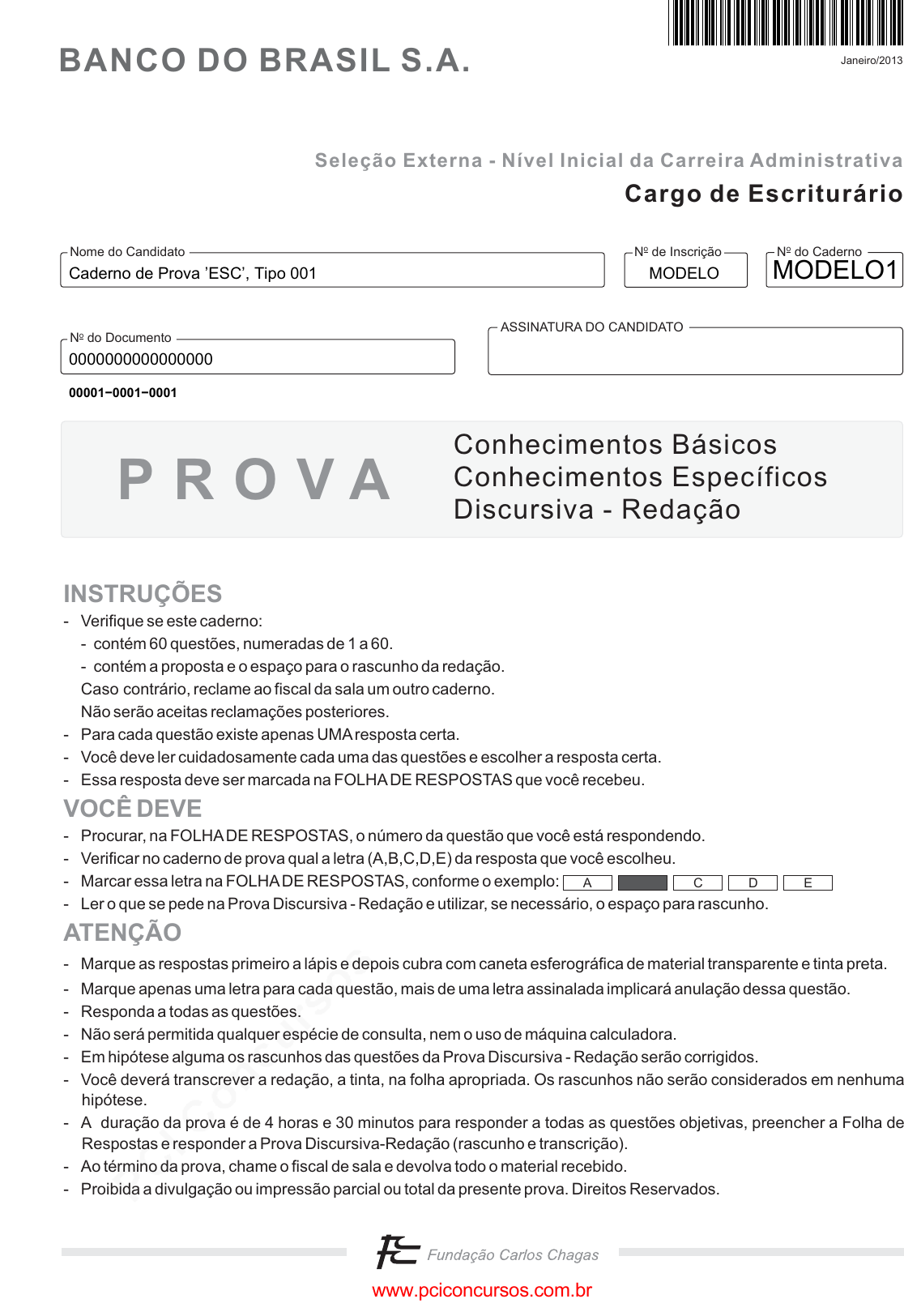 Caderno de Prova ’ESC’, Tipo 001 MODELO
