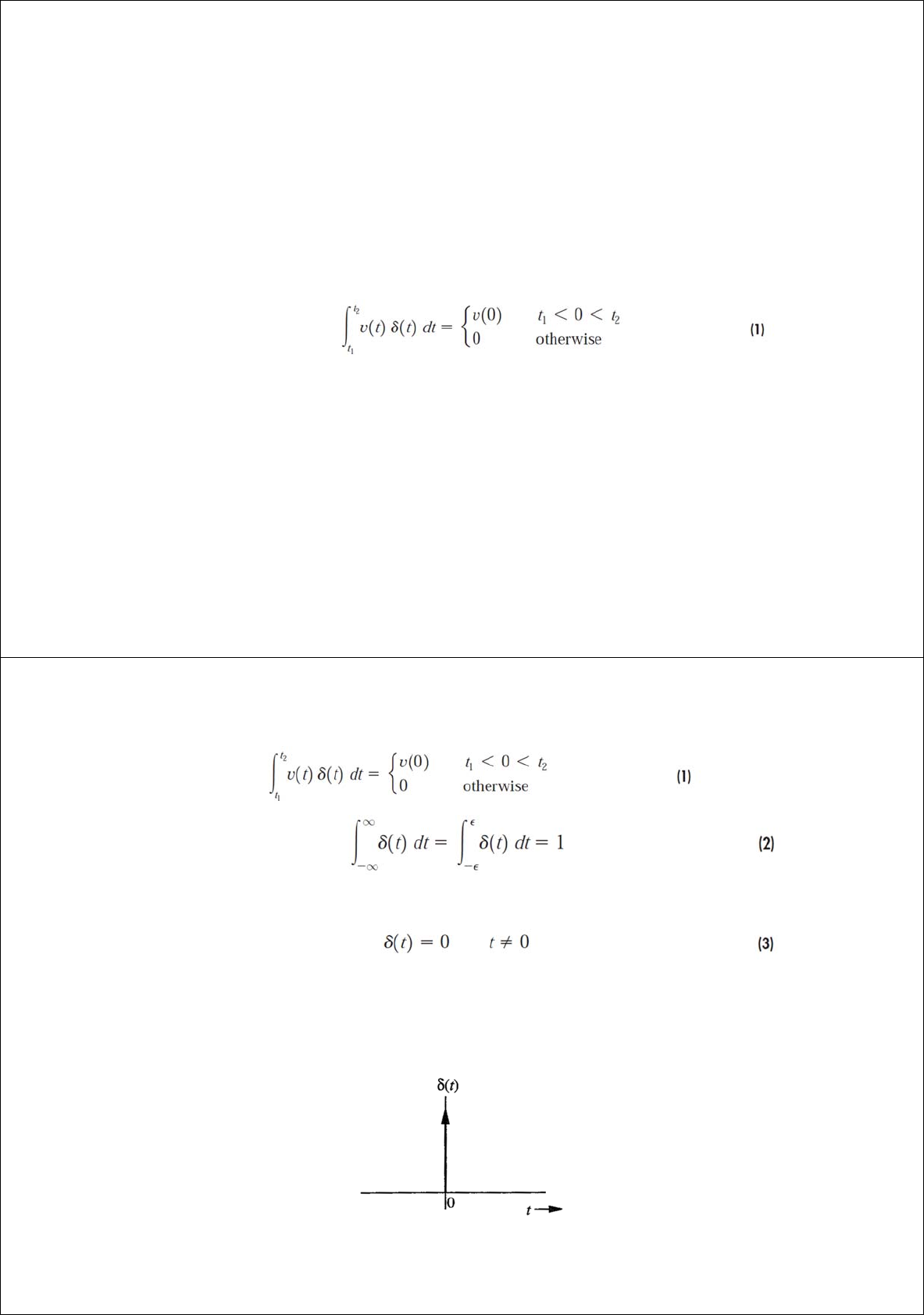 Isto significa que δ(t) tem área unitária, concentrada no ponto discreto t=0, inferindo-se também que: