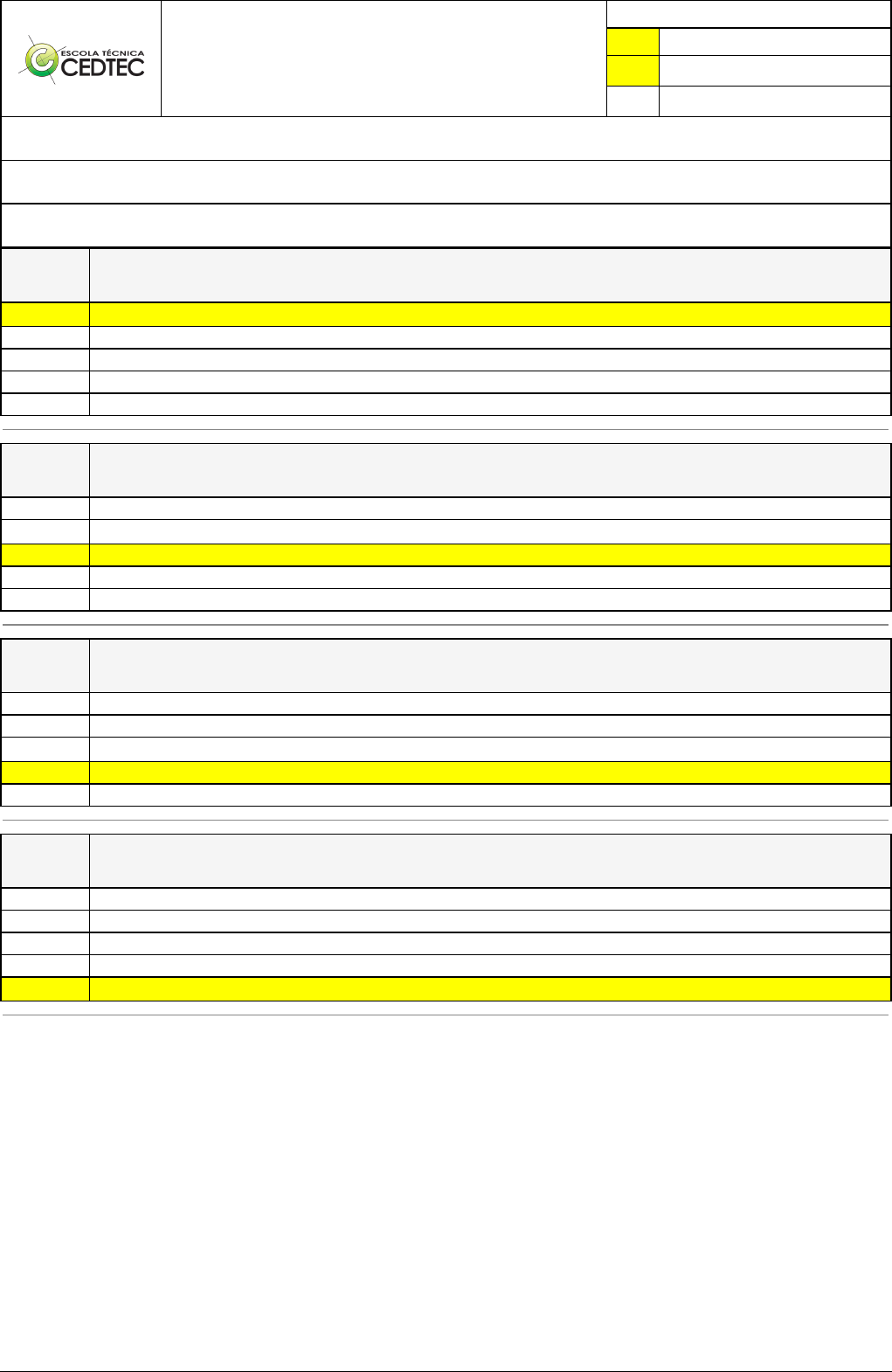 Pincel Atômico - 07/02/2023 09:53:52 1/1 Exercício Caminho do Conhecimento - Etapa 8 (610) Atividade finalizada em 30/01/2023 11:46:33 (551718 / 1) LEGENDA Resposta correta na questão # Resposta correta - Questão Anulada X Resposta selecionada pelo Aluno Disciplina: HIGIENE OCUPACIONAL - RISCOS QUIMICOS [491368] - Avaliação com 4 questões, com o peso total de 13,00 pontos [capítulos - 114] Turma: Curso Técnico: Segurança do Trabalho - Grupo: EAD - AGOSTO/22 - EAD SEG [70647] Aluno(a): 91344987 - KARLA CORDEIRO SIQUEIRA BITURINO - Respondeu 2 questões corretas, obtendo um total de 6,50 pontos como nota [238_65514] Questão 001 Assinale a alternativa que não representa item de avaliação qualitativa: X Meio de transporte Meios de absorção Máquinas Processos Tipo de exposição [564_65513] Questão 002 Assinale a alternativa que representa passos prioritários que se deve realizar em relação ao controle dos a gentes agressivos: Impedir sua trajetória. X Ordem, organização, limpeza, ventilação local, umectação. Substituição do produto, modificação do processo, isolamento, confinamento, manutenções. Treinamento, Isolamento de área. EPI, Aptidão no PCMSO. [564_65516] Questão 003 Assinale a alternativa que não representa uma atuação da fonte para controle de riscos ambientais: Manutenções Substituição do produto X Modificação do processo Ordem, organização, limpeza e umectação Isolamento, confinamento [401_65515] Questão 004 Assinale o item que não representa item de avaliação quantitativa: Dose Pior cenário Jornada de trabalho GHE X EGE
