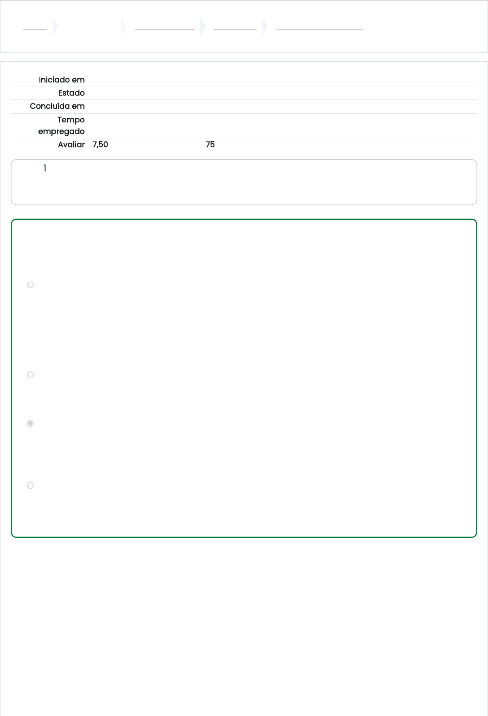 30/01/2023 16:16 Atividade Avaliativa 01: Revisão da tentativa cursos.egp.ce.gov.br/mod/quiz/review.php?attempt=19081&cmid=2438 1/4 Painel Meus cursos EFC_40H_2023 MÓDULO 01 Atividade Avaliativa 01 Iniciado em segunda, 30 jan 2023, 15:43 Estado Finalizada Concluída em segunda, 30 jan 2023, 16:15 Tempo empregado 31 minutos 52 segundos Avaliar 7,50 de um máximo de 10,00(75%) Questão 1 Correto Atingiu 2,50 de 2,50 EDCM1.1001 - Sobre os pensamentos clássicos da sociologia, marque a assertiva verdadeira. a. Os marxistas criticam o atual sistema educacional, pois estaria voltado exclusivamente para a formação de mão de obra para a reprodução e consolidação do sistema socialista. Os marxistas criticam o atual sistema educacional, pois estaria voltado exclusivamente para a formação de mão de obra para a reprodução e consolidação do sistema socialista. Os marxistas criticam o atual sistema educacional, pois estaria voltado exclusivamente para a formação de mão de obra para a reprodução e consolidação do sistema socialista. b. Durkheim fundamentava suas ideias na tradição liberal da sua época, isto é, a ênfase da análise social é dada ao indivíduo, o grande responsável por tudo o que existe, obtido em função de seus méritos e fragilidades. c. O materialismo histórico é uma abordagem metodológica ao estudo da sociedade e da economia elaborada por Marx e Engels. Tal abordagem procura identificar as causas da evolução da sociedade humana nos meios pelos quais os seres humanos produzem coletivamente e distribuem os bens de consumo. d. Para Weber, a educação é um fato social e não pode ser tomada como responsabilidade privada, mas sim de âmbito coletivo. Nesse sentido, ela é coercitiva, sendo imposta às pessoas, independente de sua vontade, por serem incapazes de reagir diante da ação educativa. A resposta correta é: O materialismo histórico é uma abordagem metodológica ao estudo da sociedade e da economia elaborada por Marx e Engels. Tal abordagem procura identificar as causas da evolução da sociedade humana nos meios pelos quais os seres humanos produzem coletivamente e distribuem os bens de consumo. http://cursos.egp.ce.gov.br/my/ http://cursos.egp.ce.gov.br/course/view.php?id=454 http://cursos.egp.ce.gov.br/course/view.php?id=454§ion=1 http://cursos.egp.ce.gov.br/mod/quiz/view.php?id=2438 30/01/2023 16:16 Atividade Avaliativa 01: Revisão da tentativa cursos.egp.ce.gov.br/mod/quiz/review.php?attempt=19081&cmid=2438 2/4 Questão 2 Correto Atingiu 2,50 de 2,50 EFCM1.1003 - Em relação ao Programa de Educação Fiscal do Estado do Ceará (PEF/CE), assinale a assertiva FALSA. a. O Programa de Educação Fiscal do Ceará foi criado em 1998, com a denominação inicial de Programa de Educação Tributária (PET), por meio do Decreto estadual nº 25.326/1998. b. O objetivo estratégico do PEF/CE é sensibilizar o cidadão para a função socioeconômica do tributo e sua responsabilidade pelo acompanhamento da aplicação dos recursos públicos por meio do exercício do controle social e do conhecimento sobre administração pública. c. Reconhecendo a importância da Educação Fiscal para o bom exercício das atividades da administração fiscal, a Secretaria da Fazenda do Estado do Ceará criou, em 2007, a Célula de Educação Fiscal, que passou a compor a estrutura organizacional da Sefaz. d. O PEF/CE não obedece às diretrizes e aos princípios do Programa Nacional de Educação Fiscal, seguindo uma metodologia específica. A resposta correta é: O PEF/CE não obedece às diretrizes e aos princípios do Programa Nacional de Educação Fiscal, seguindo uma metodologia específica. 30/01/2023 16:16 Atividade Avaliativa 01: Revisão da tentativa cursos.egp.ce.gov.br/mod/quiz/review.php?attempt=19081&cmid=2438 3/4 Questão 3 Correto Atingiu 2,50 de 2,50 Questão 4 Incorreto Atingiu 0,00 de 2,50 EFCM1.1004 - Acerca da relação entre educação fiscal e serviço público, assinale a alternativa correspondente aos itens corretos. I. Não se faz um Estado justo e desenvolvido sem um servidor inquieto e participativo, que compreenda o funcionamento das engrenagens públicas, não apenas como espectador e mero aplicador de legalidade, mas como agente de transformação. II. O desafio do serviço público perpassa pela necessidade de uma nova cultura pessoal e institucional, na medida em que o servidor contribui para o resgate da importância da coisa pública e da sua legitimação perante a sociedade. III. Não é o servidor que faz o cotidiano da Administração Pública; cargos políticos e funções comissionadas são ocupados por pessoas de modo permanente, não tendo o servidor público nenhuma importância. IV. Desenvolver a Educação Fiscal é um pacto permanente com a cidadania, prática necessária a toda gestão e agente público que tenha verdadeiro compromisso com os interesses pessoais e privados. a. I e III. b. I e II. c. III e IV. d. II e IV. A resposta correta é: I e II. EFCM1.1002 - NÃO é objetivo estratégico do Programa Nacional de Educação Fiscal (PNEF). a. Aumentar a arrecadação dos cofres públicos. b. Estadualizar e municipalizar o Programa de Educação Fiscal. c. Aferir o grau de percepção da gestão fiscal pela sociedade. d. Implementar a Educação Fiscal não formal. A resposta correta é: Aumentar a arrecadação dos cofres públicos. Atividade anterior 30/01/2023 16:16 Atividade Avaliativa 01: Revisão da tentativa cursos.egp.ce.gov.br/mod/quiz/review.php?attempt=19081&cmid=2438 4/4 ◄ Apostila - Módulo 01 Seguir para... Próxima atividade Aula Web - Módulo 02 ► http://cursos.egp.ce.gov.br/mod/resource/view.php?id=2373&forceview=1 http://cursos.egp.ce.gov.br/mod/url/view.php?id=2374&forceview=1